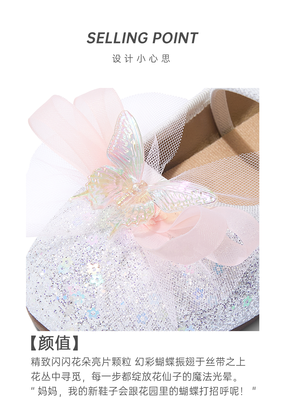 littletime女童鞋2025春新款儿童洋气时尚蝴蝶结公主鞋水晶鞋