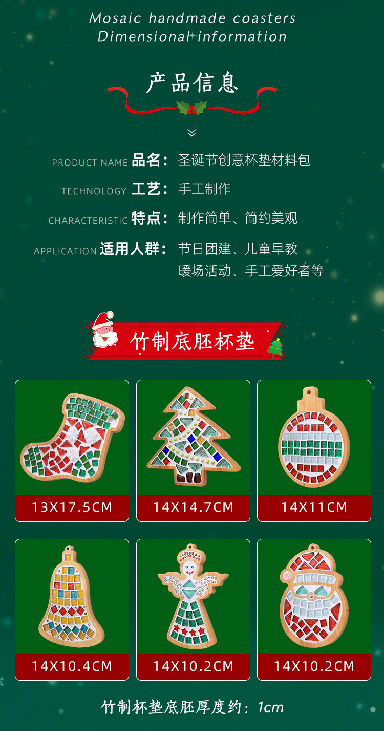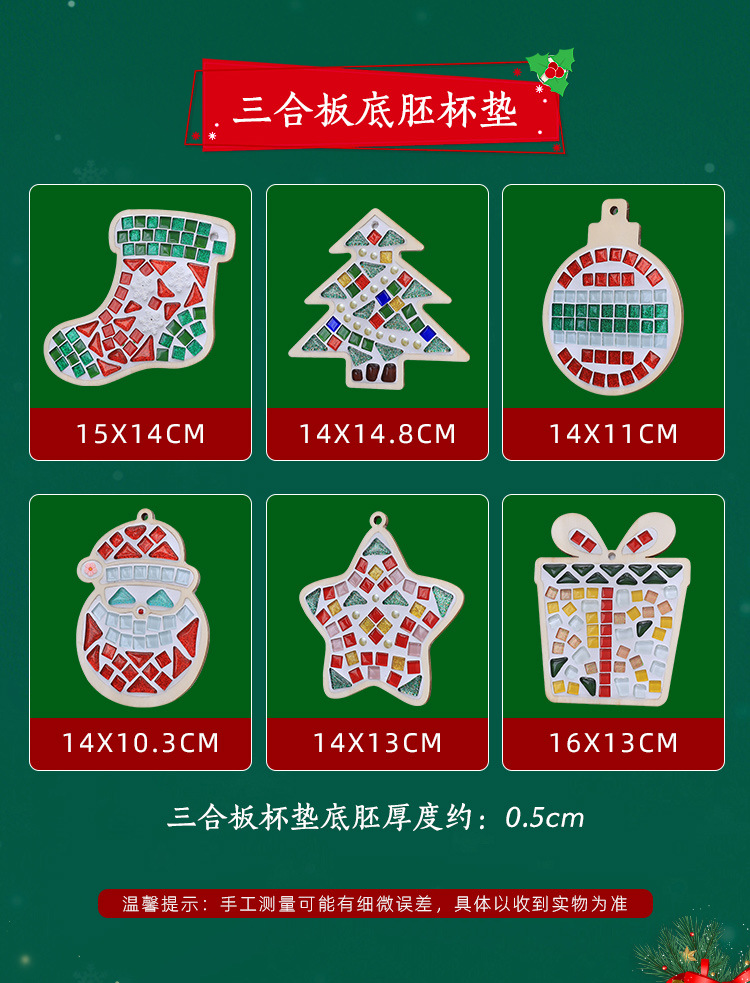 【DIY马赛克手工杯垫】圣诞马赛克手工材料杯垫 儿童手工手工礼物实用摆件派对布置装饰品