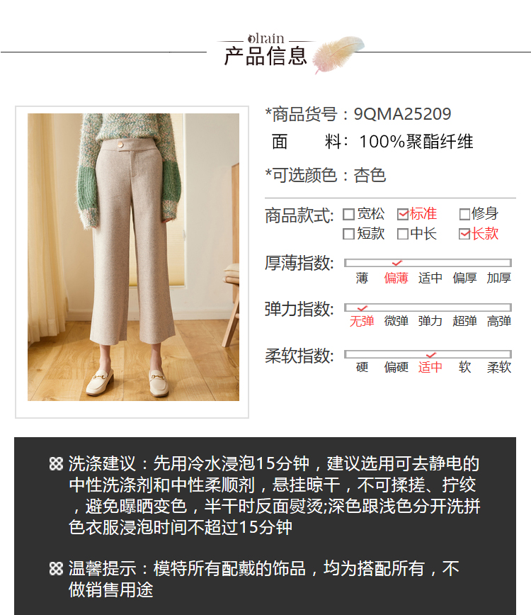 欧芮儿2019秋冬新品预售宽松显瘦阔腿裤