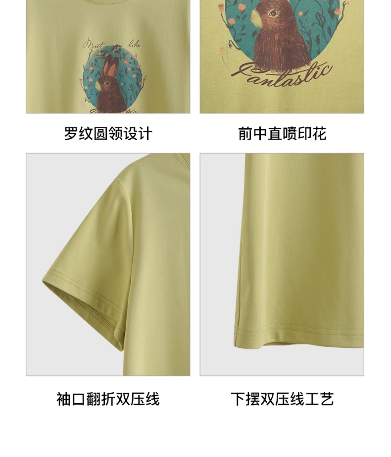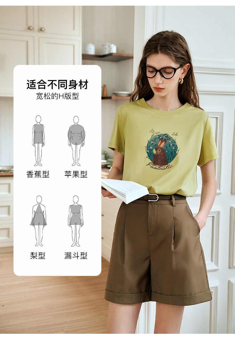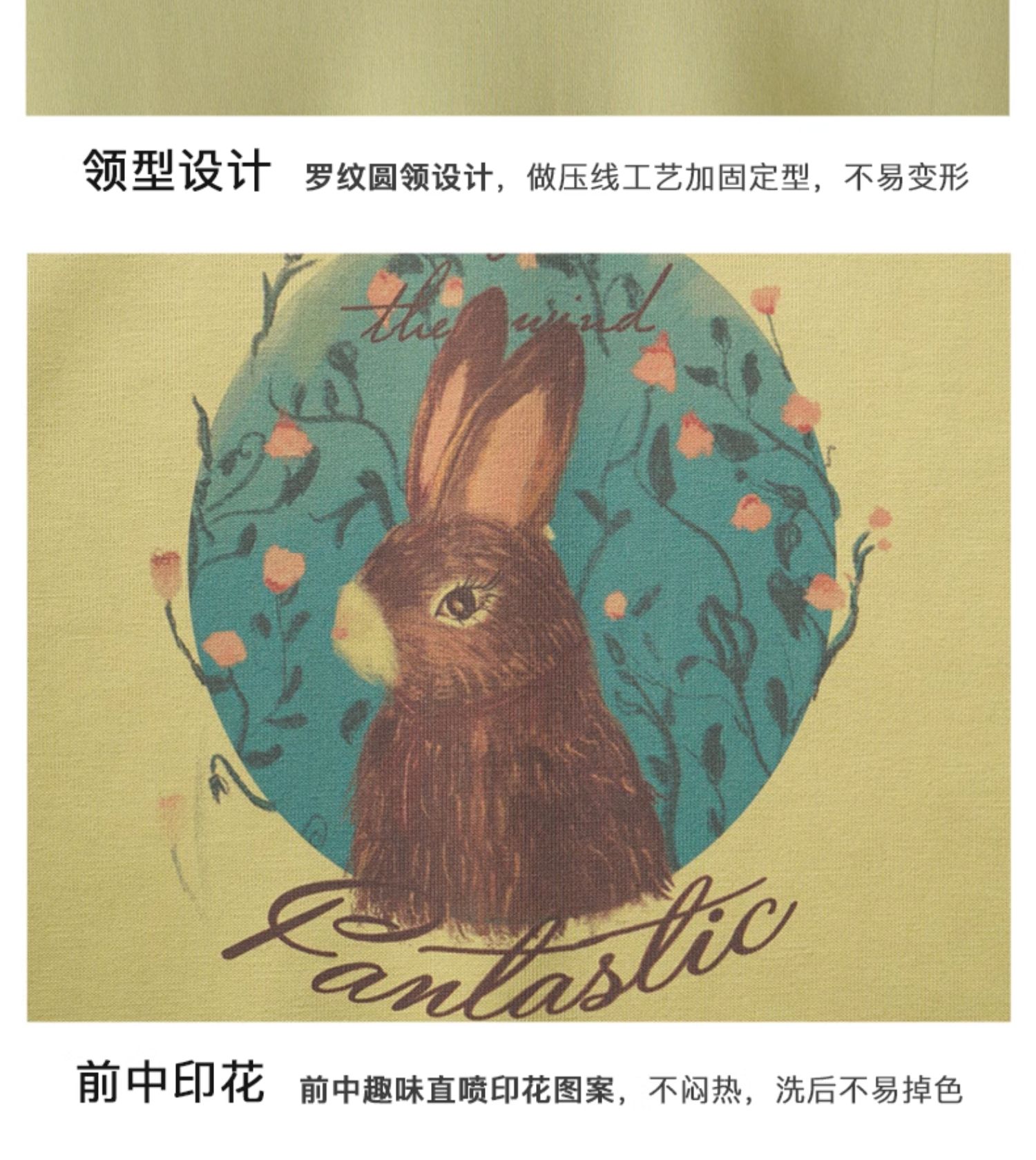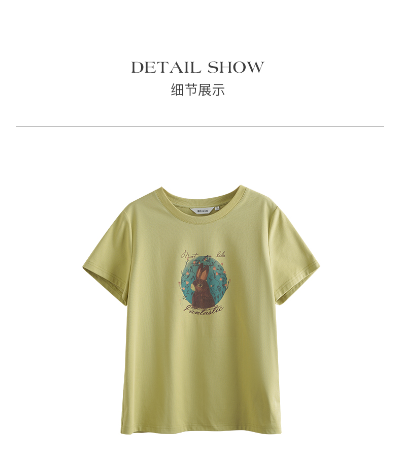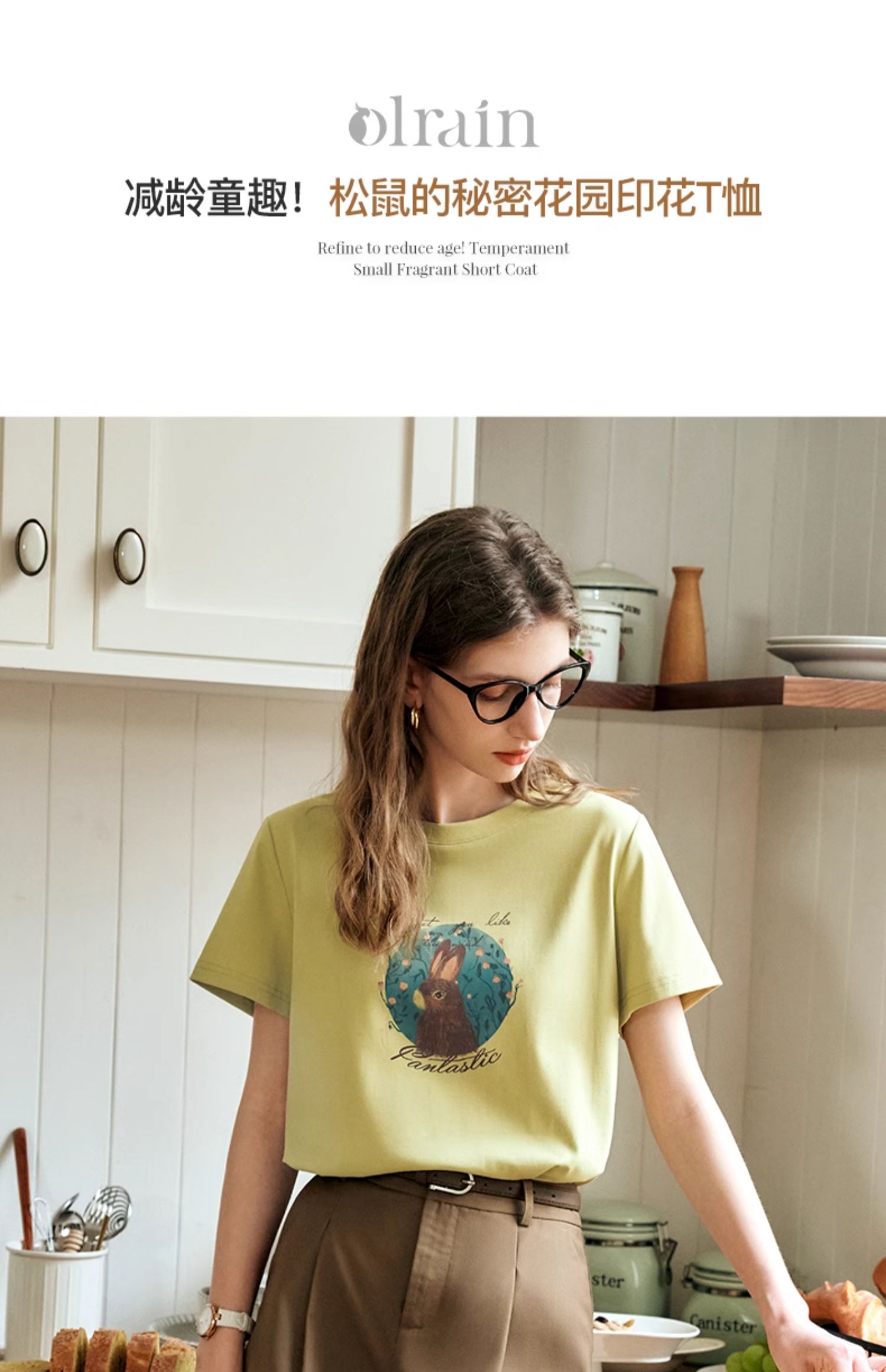 OLrain欧芮儿浅黄色短袖T恤女夏季2024新款简约百搭松鼠印花上衣