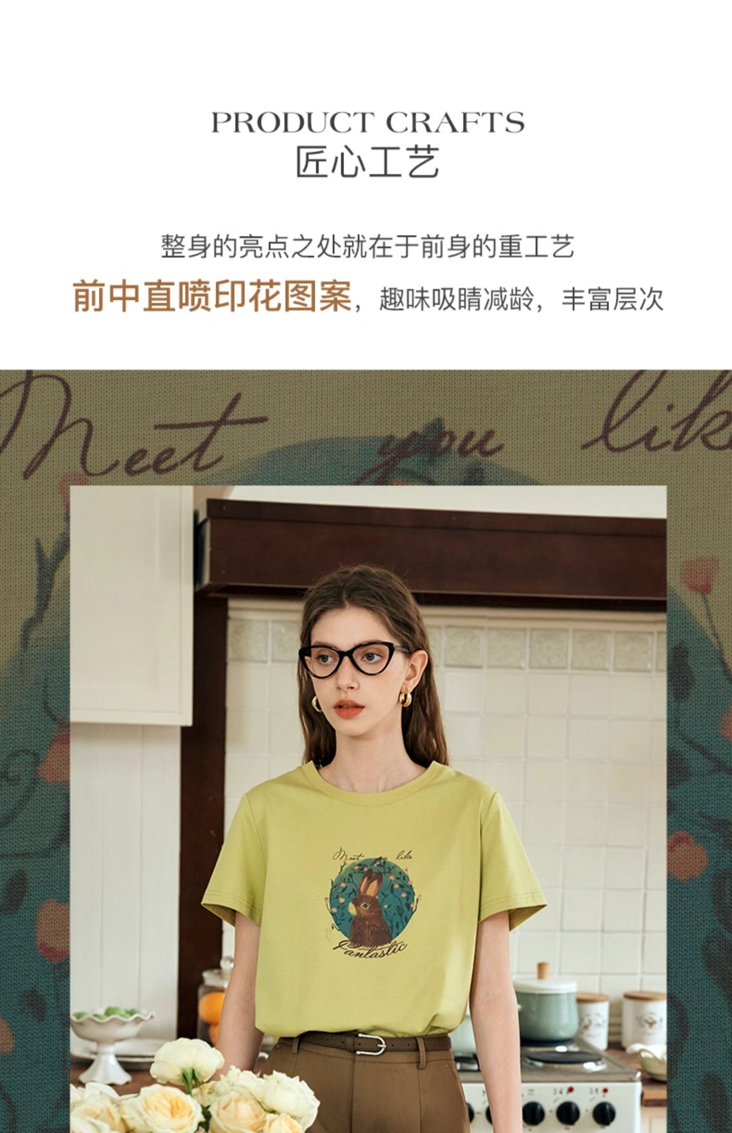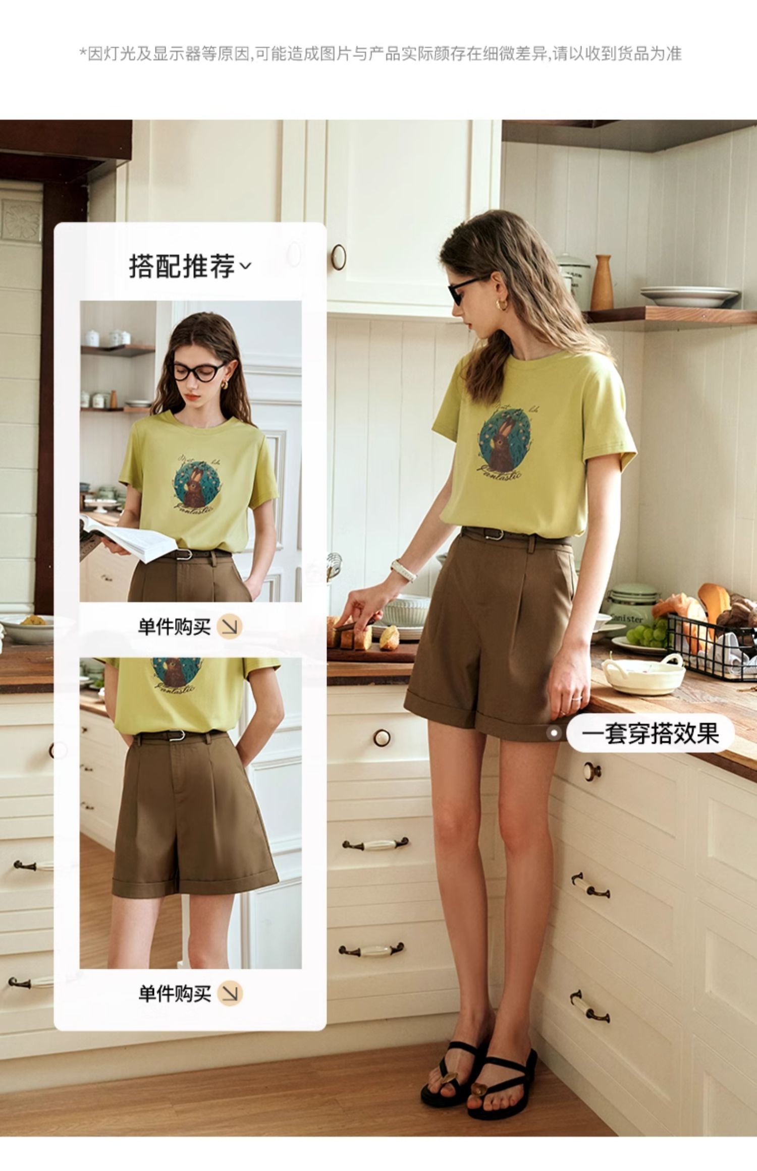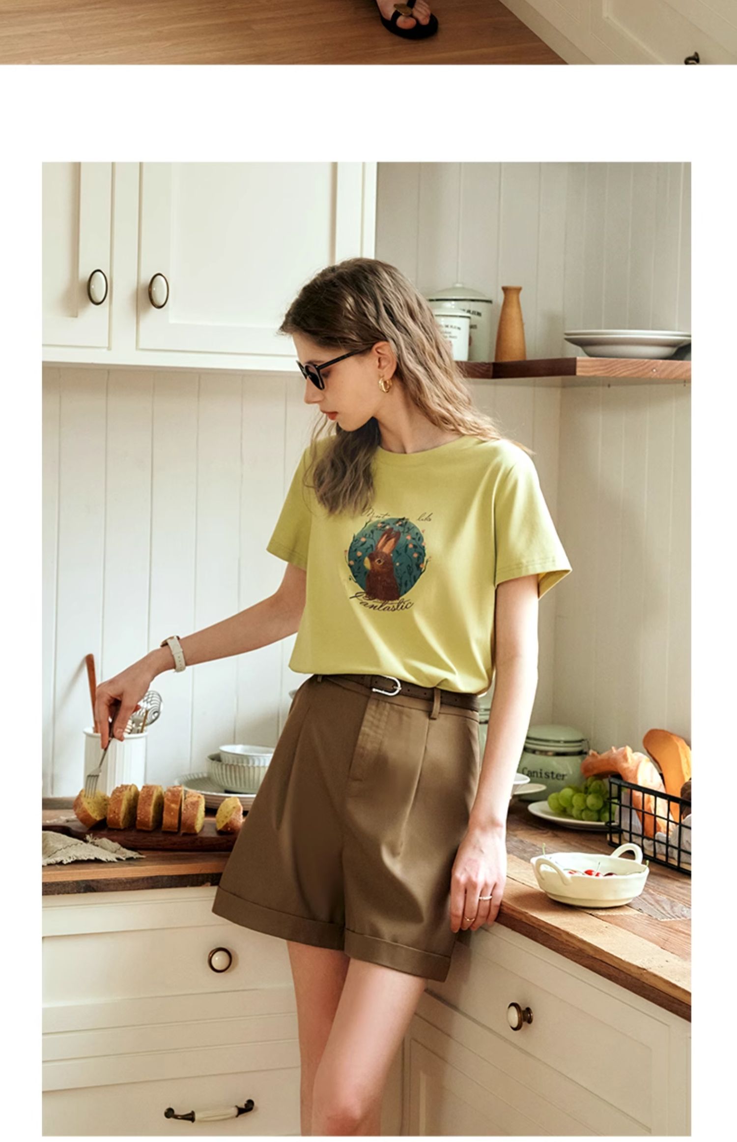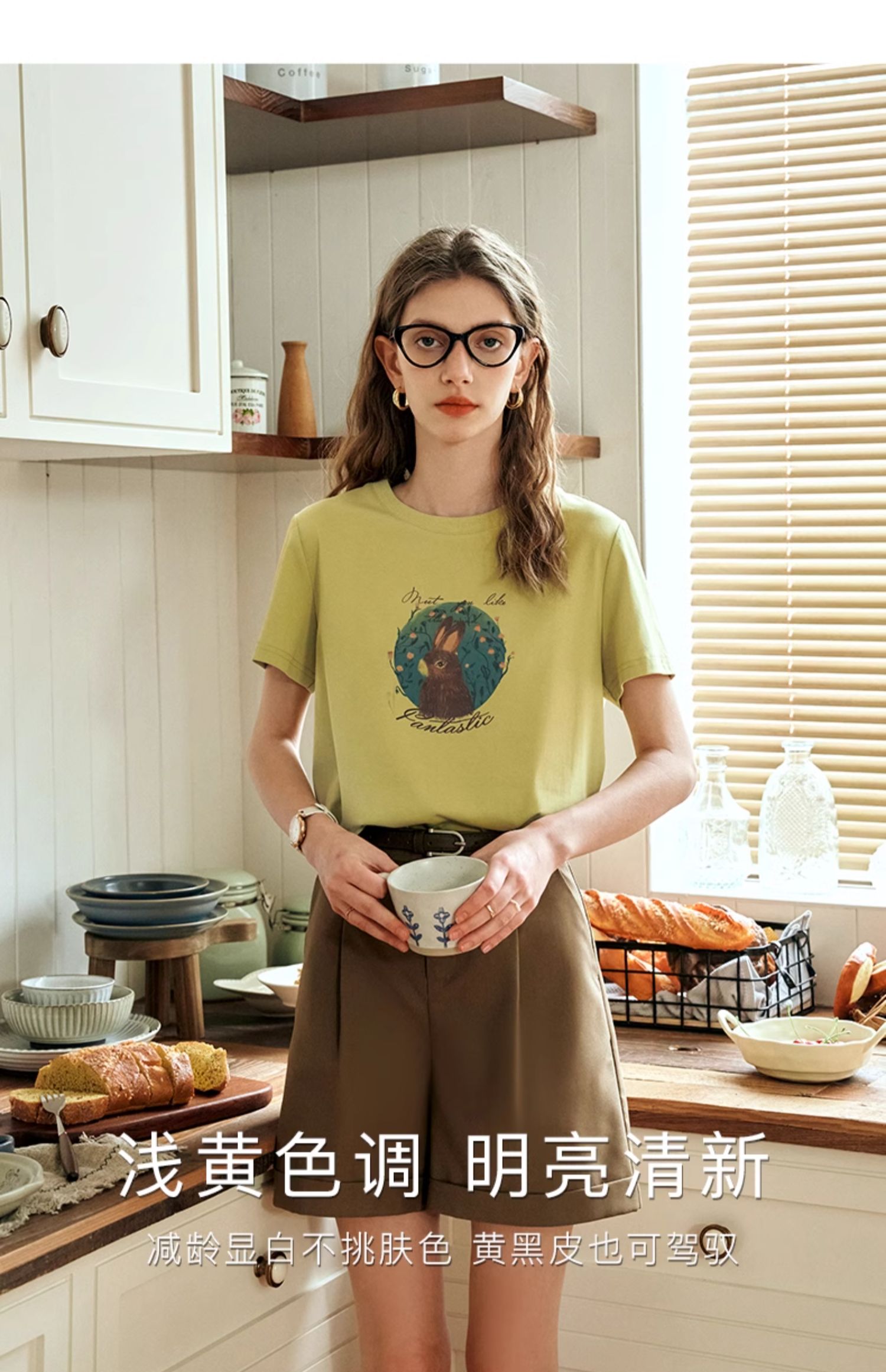 OLrain欧芮儿浅黄色短袖T恤女夏季2024新款简约百搭松鼠印花上衣