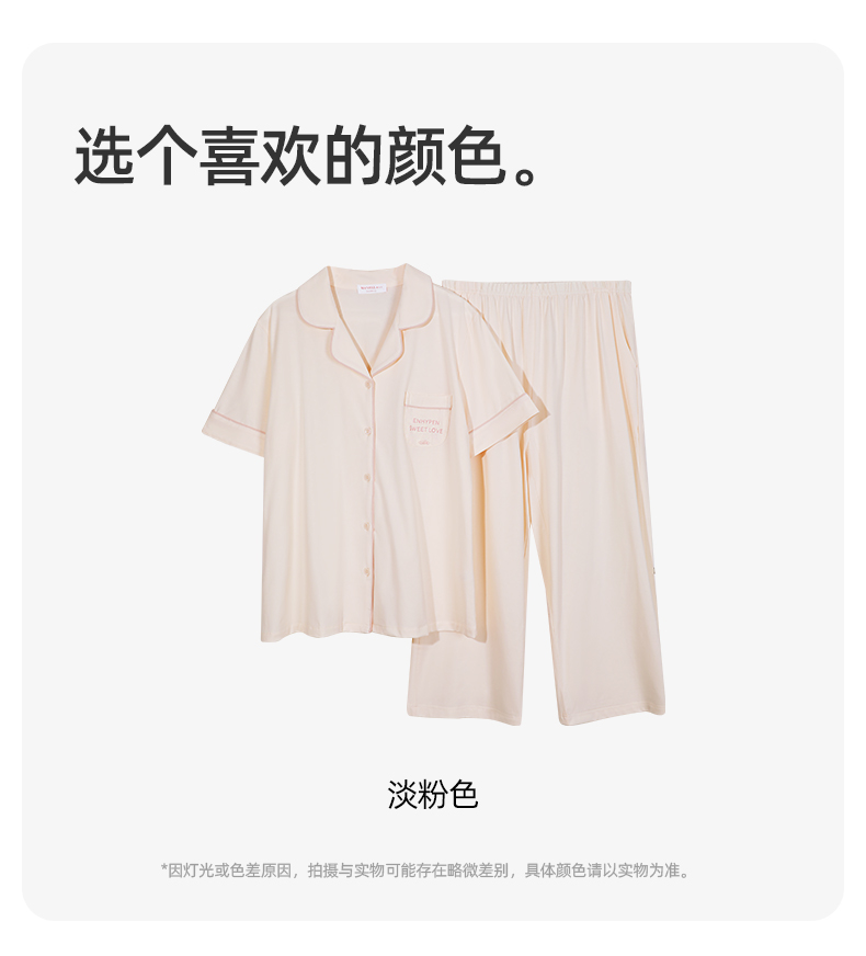 【商场同款】熳洁儿 短袖七分裤家居服春夏开衫套装95棉25203222