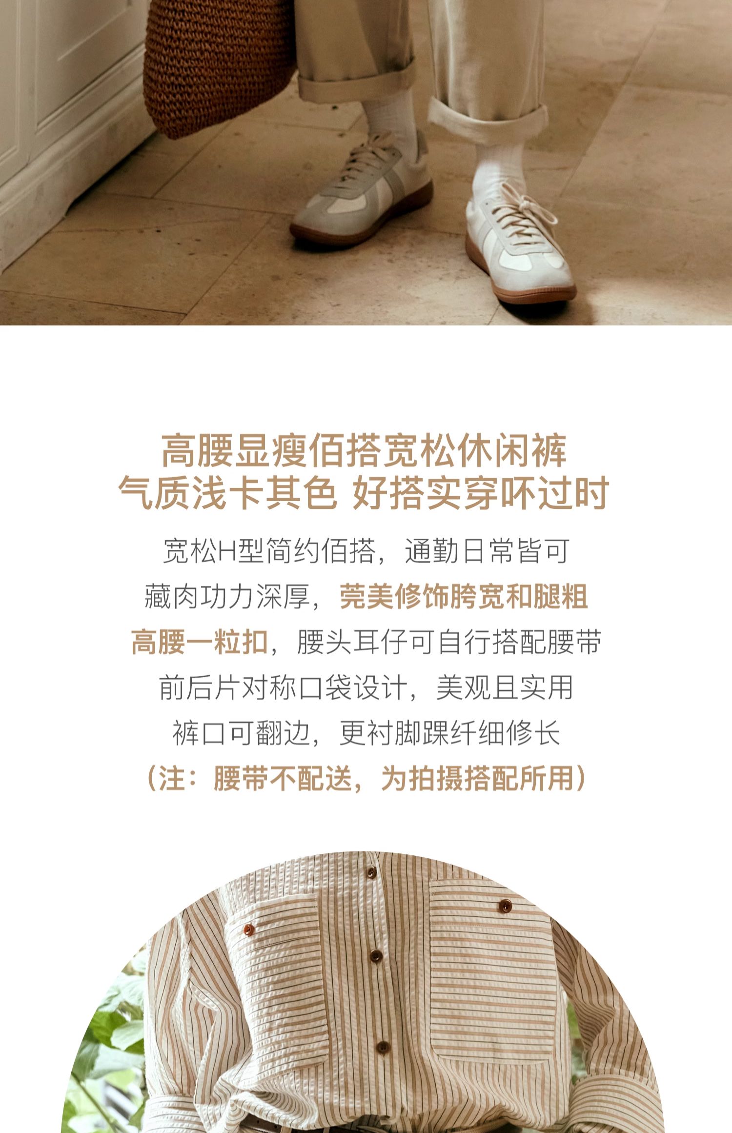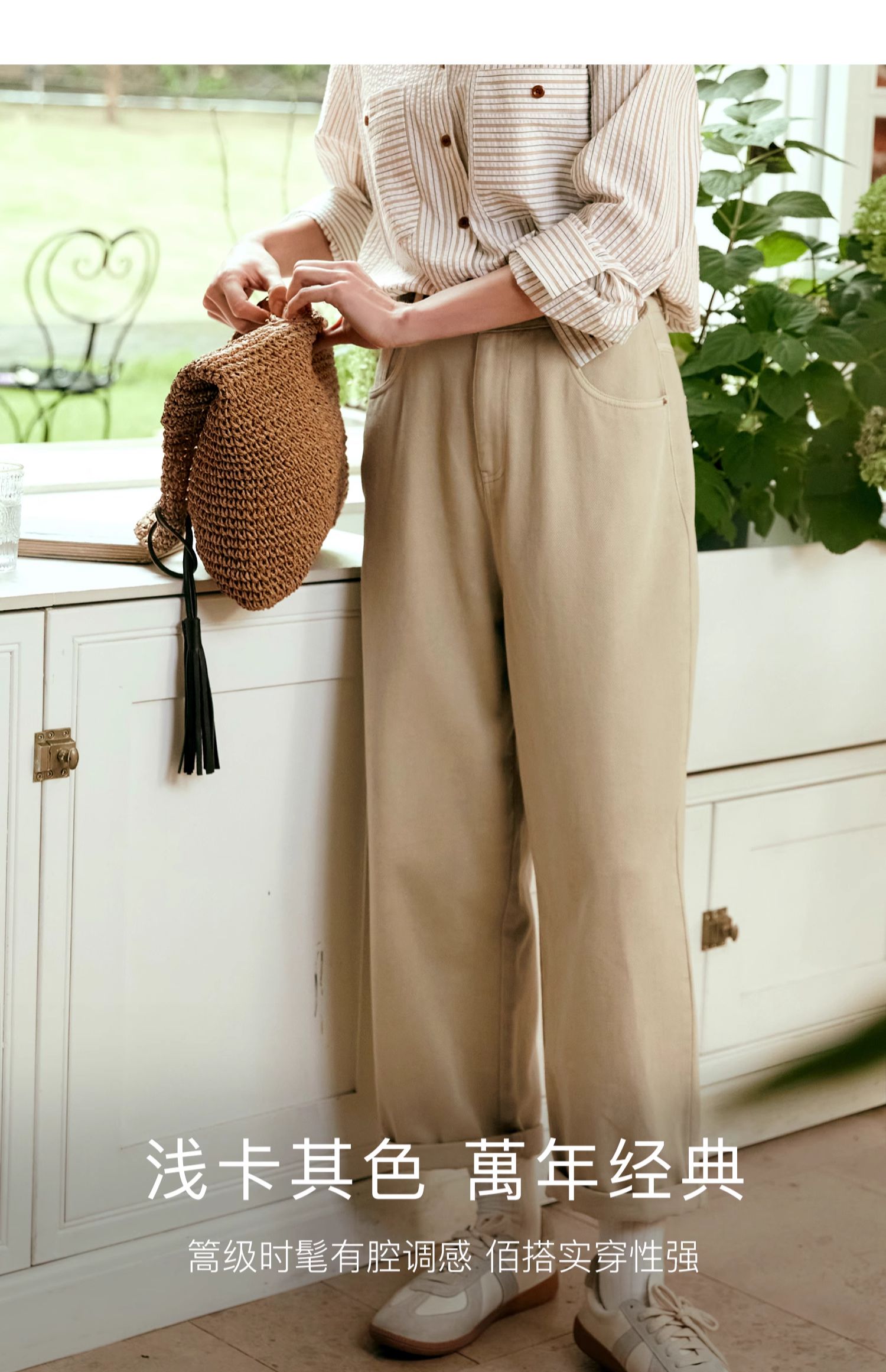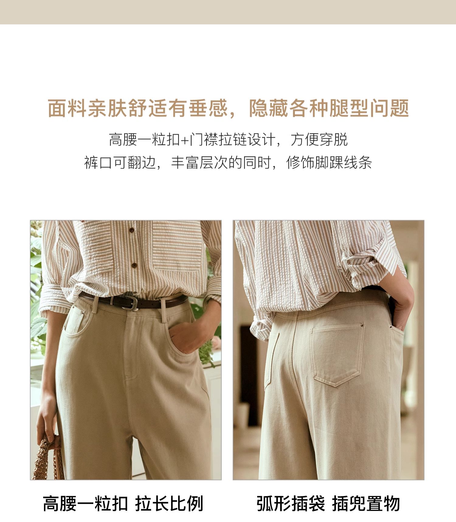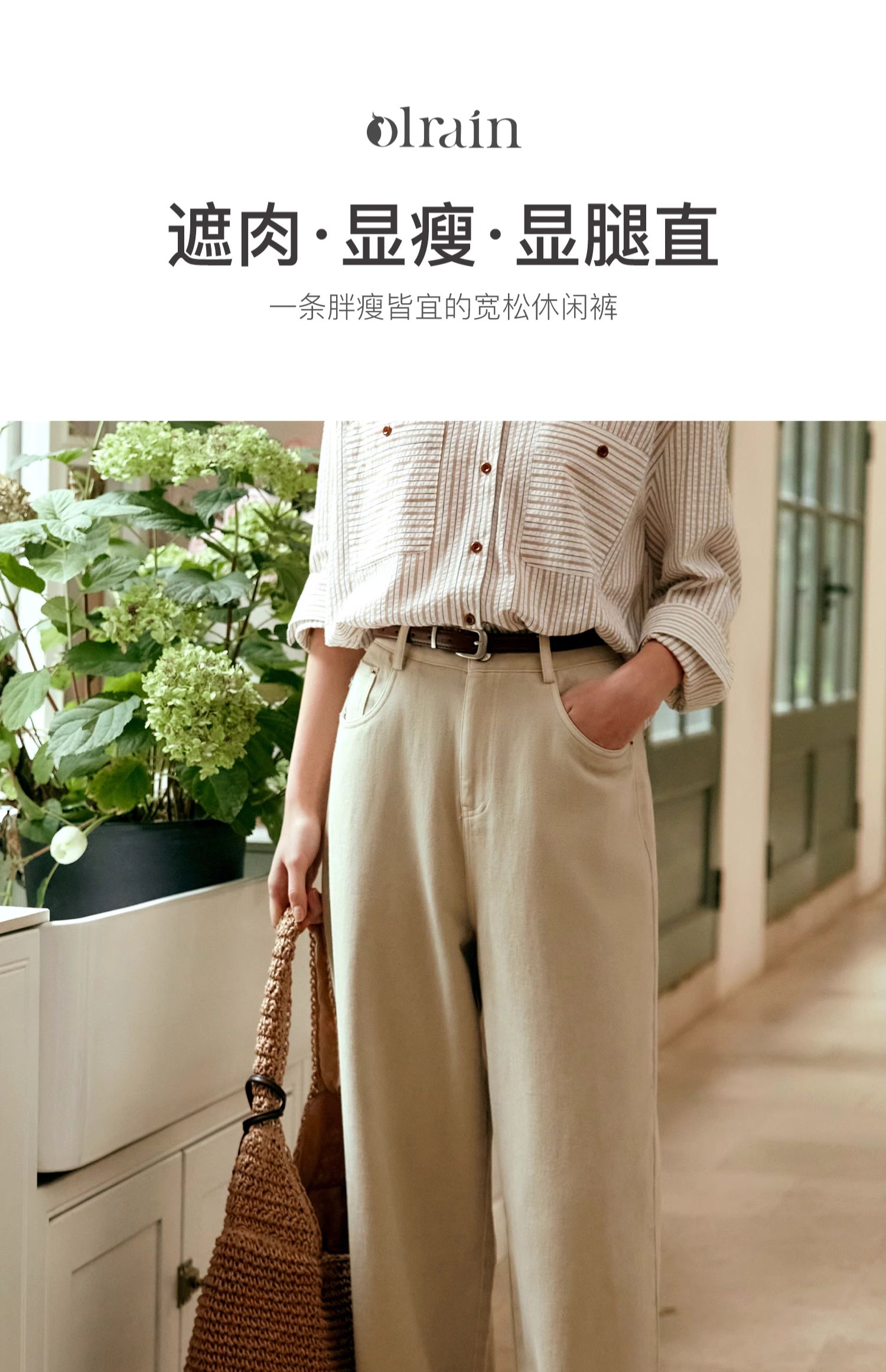 OLrain欧芮儿浅卡其色休闲裤女长裤早秋2024新款高腰显瘦通勤裤子