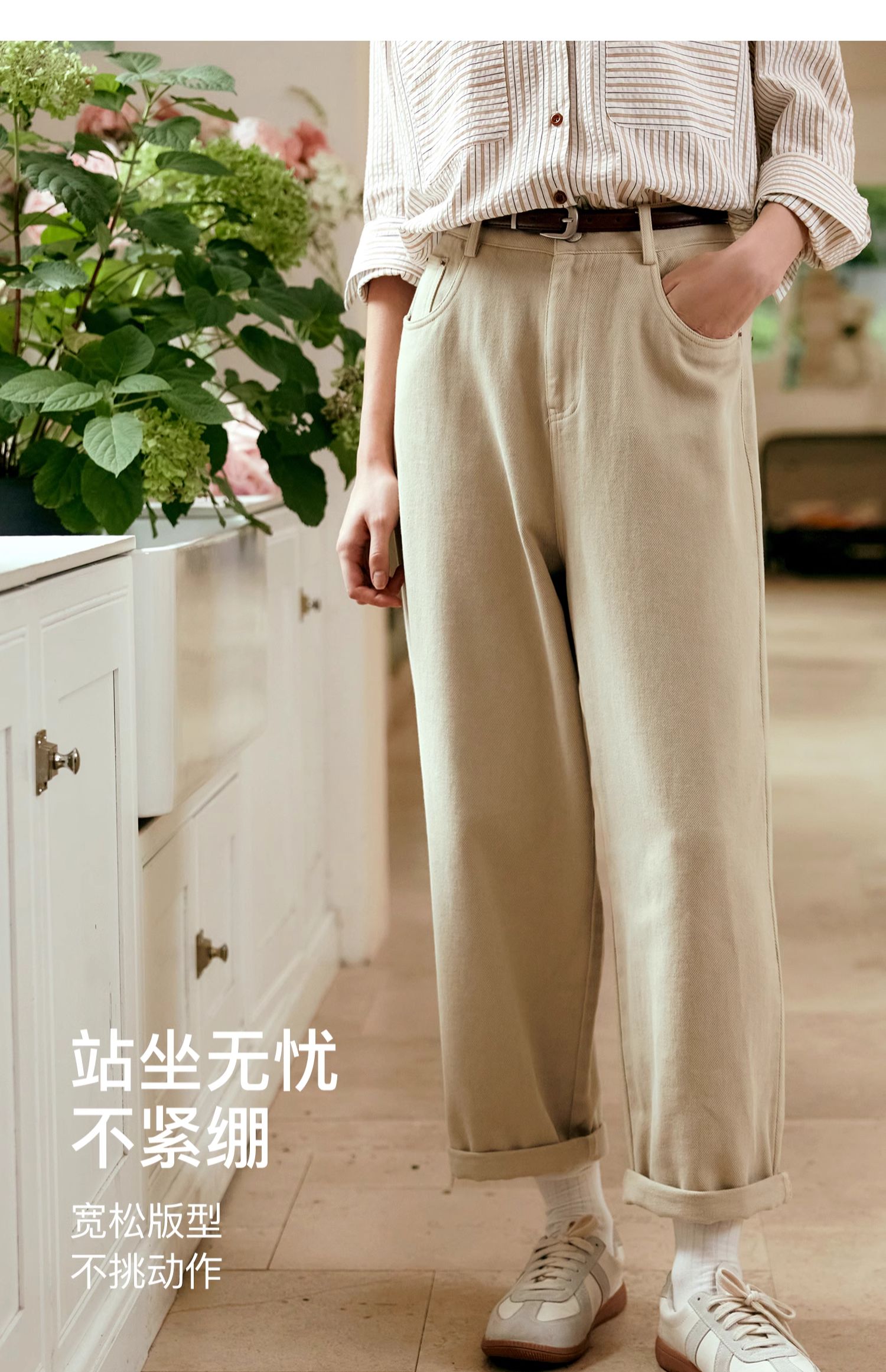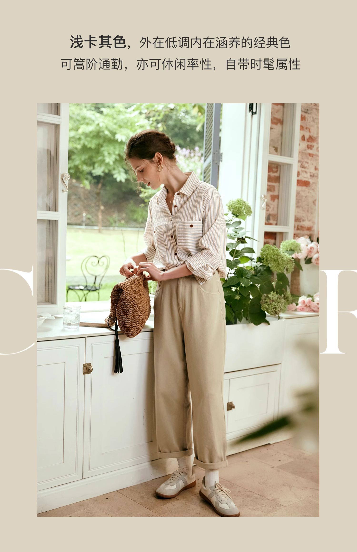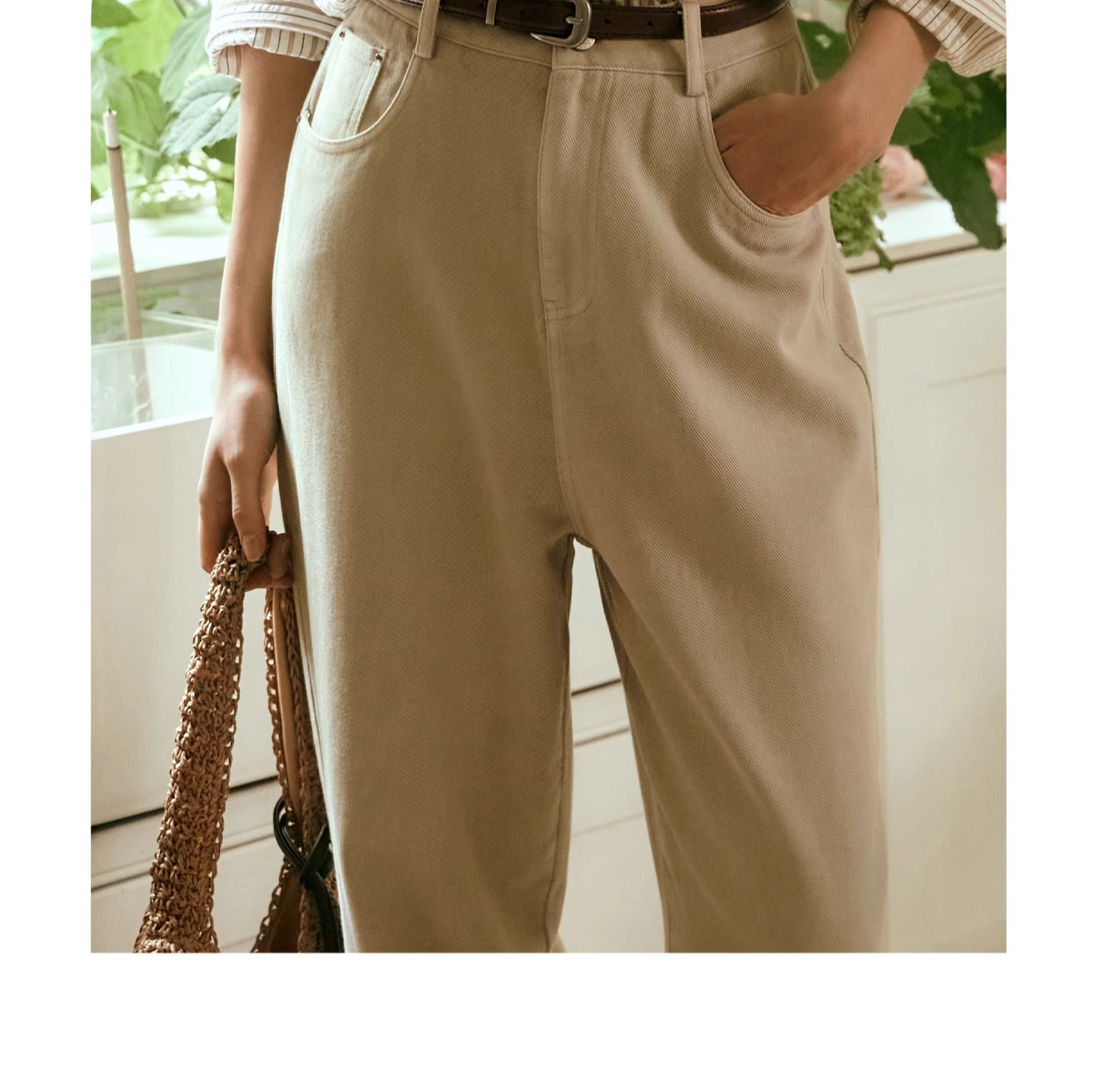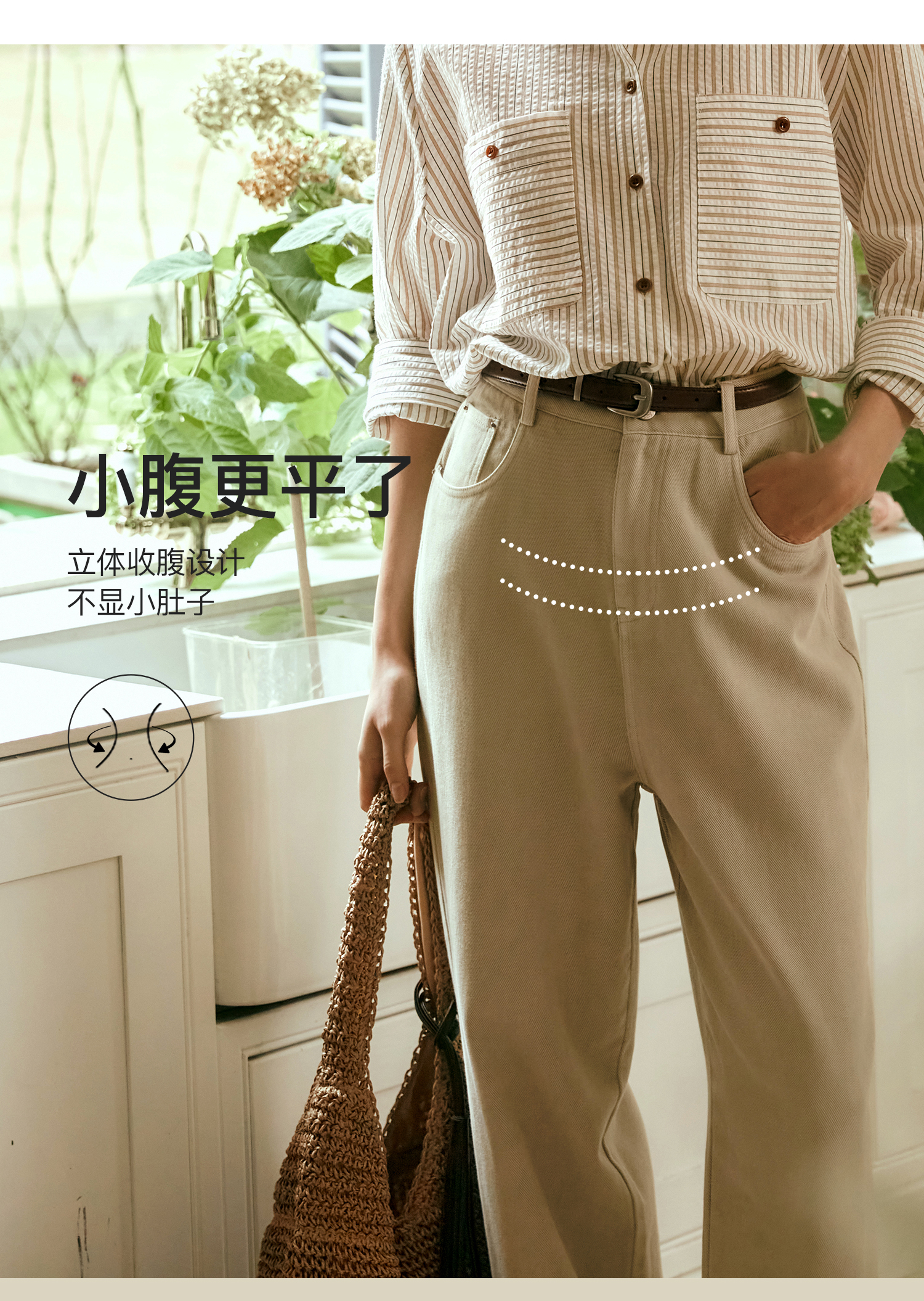 OLrain欧芮儿浅卡其色休闲裤女长裤早秋2024新款高腰显瘦通勤裤子