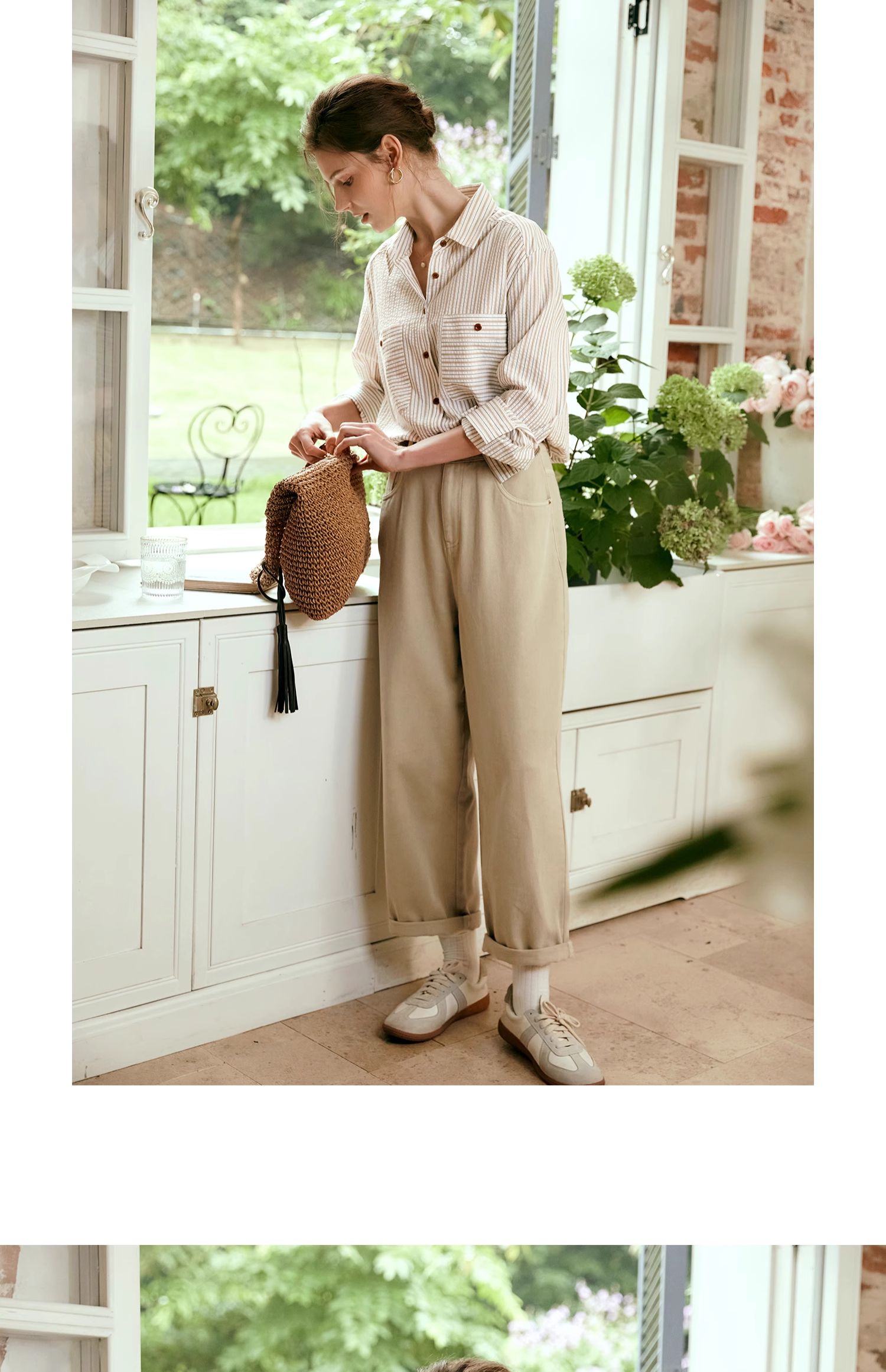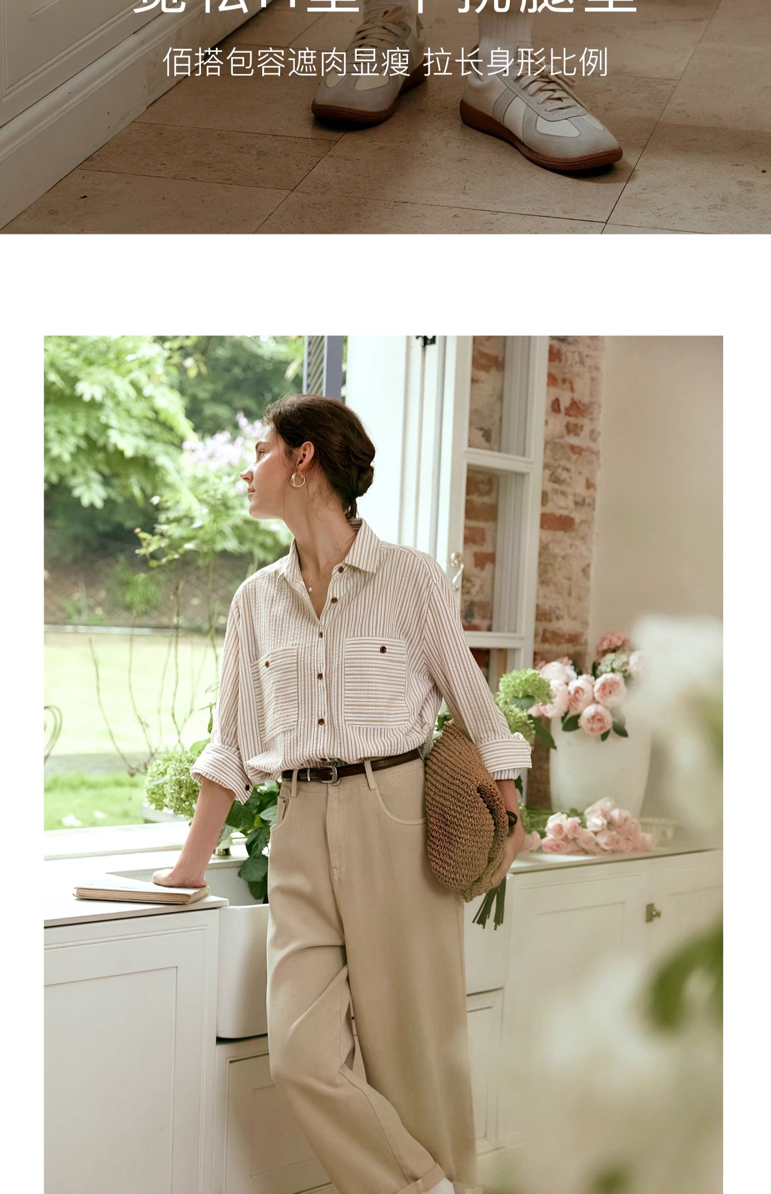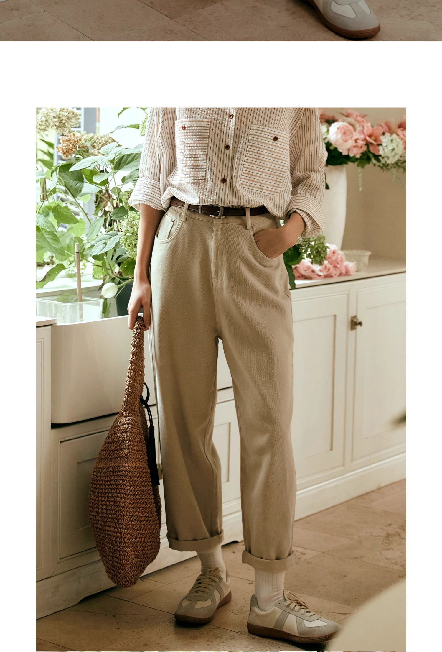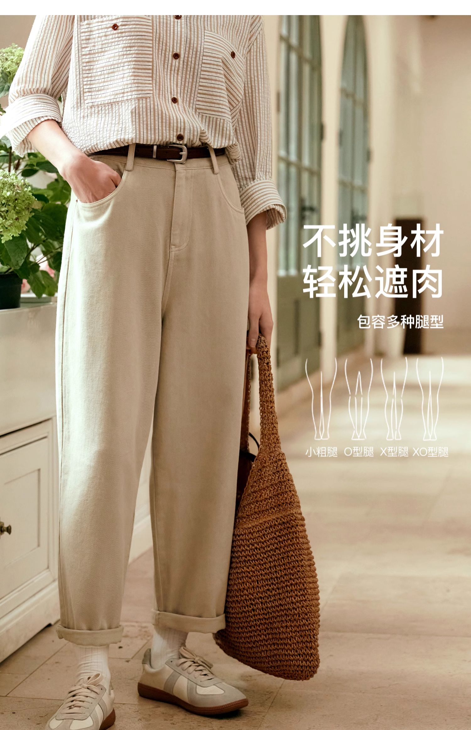 OLrain欧芮儿浅卡其色休闲裤女长裤早秋2024新款高腰显瘦通勤裤子