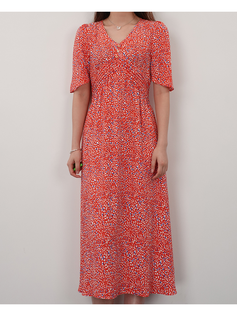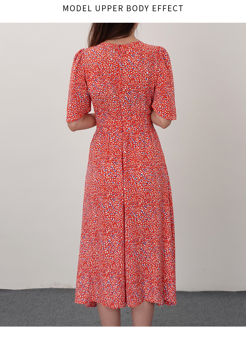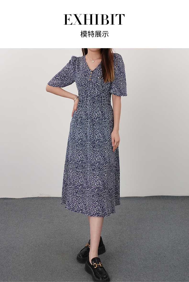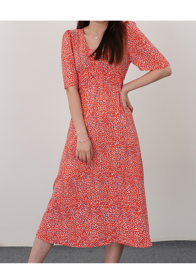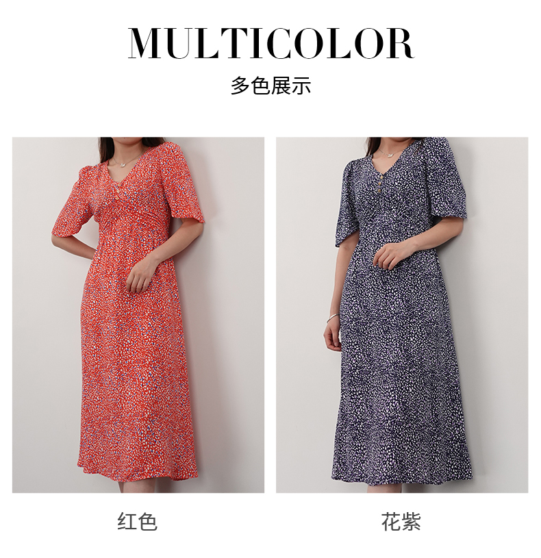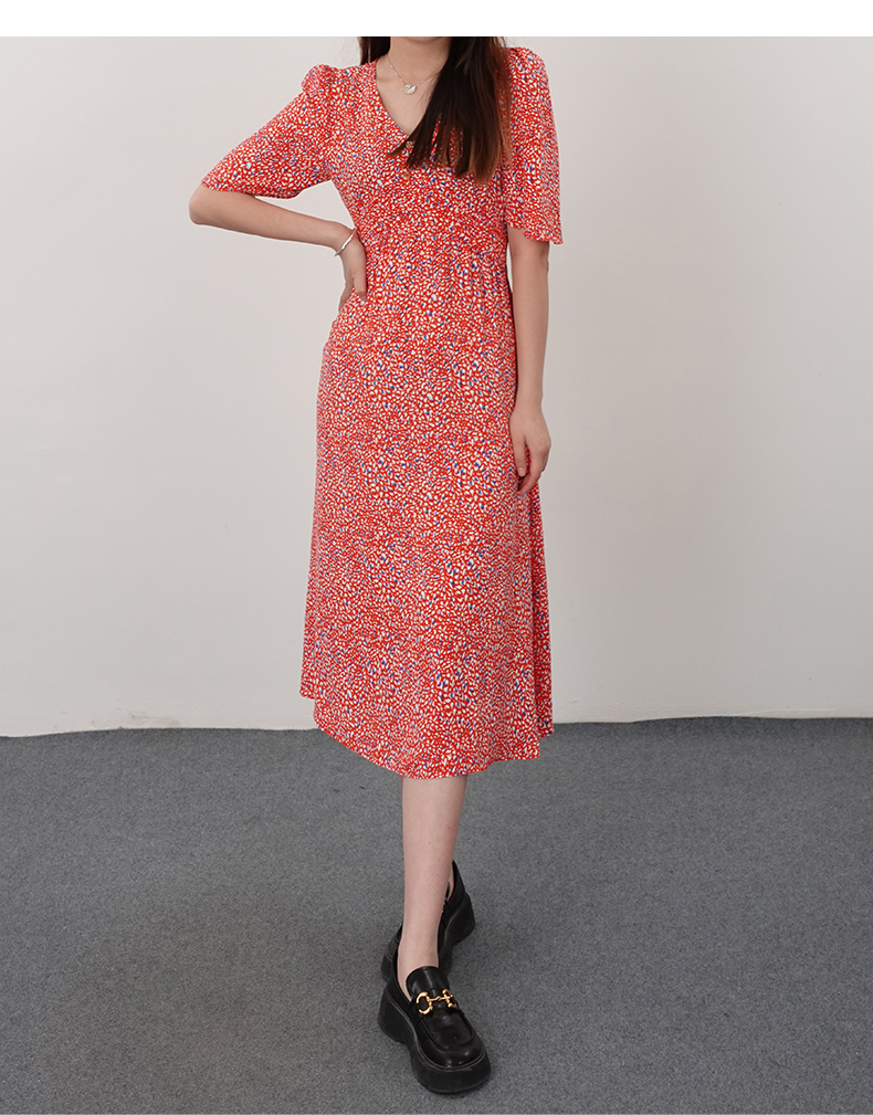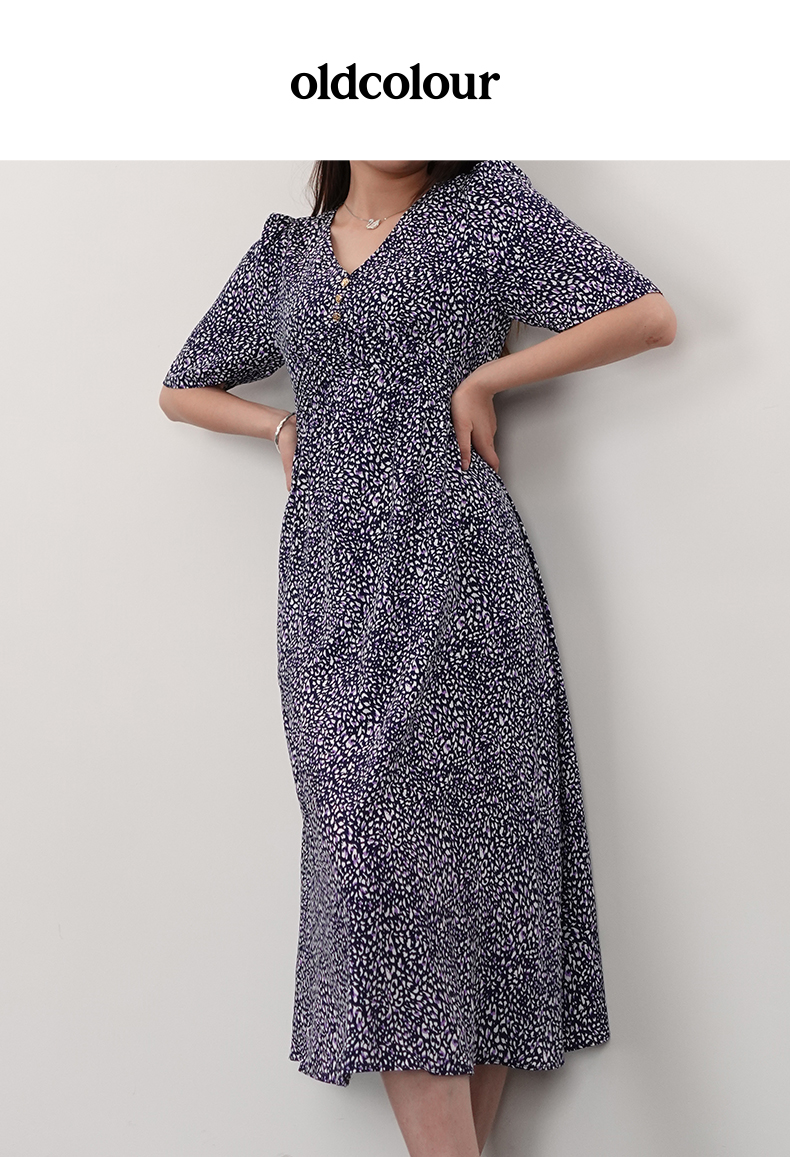oldcolour21夏V领气质收腰显瘦碎花连衣裙N21101159