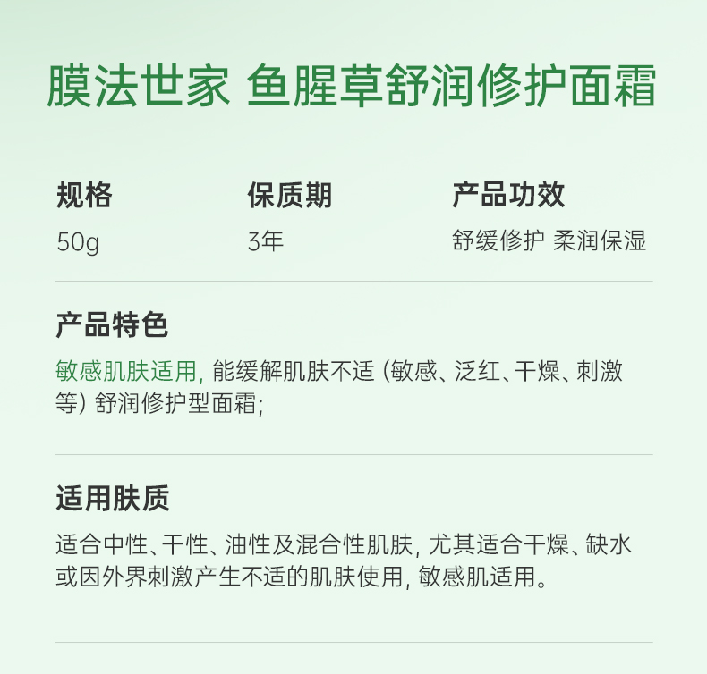 【¥𝟓𝟗任选𝟑件】膜法世家鱼腥草舒润修护面霜50g