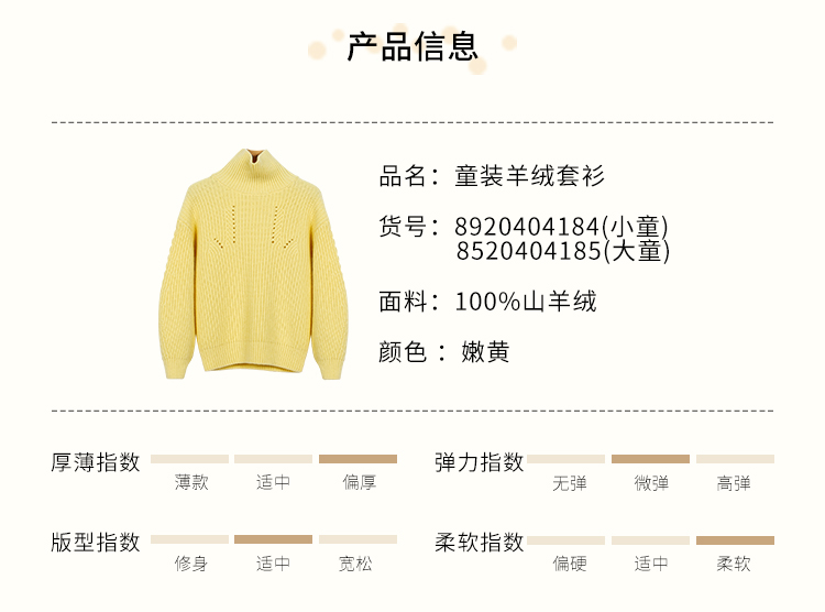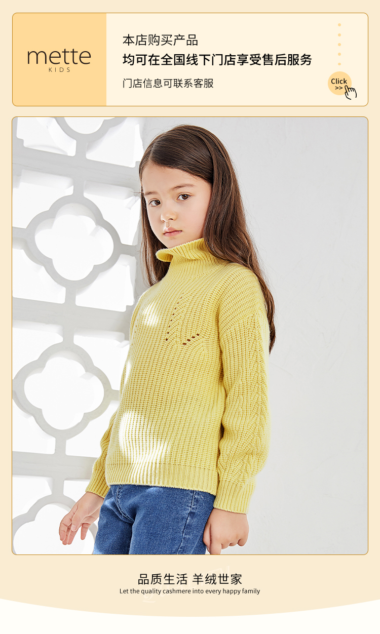 METTE羊绒世家童装高领100%衫羊绒衫2020冬中大童女加厚保暖毛衣