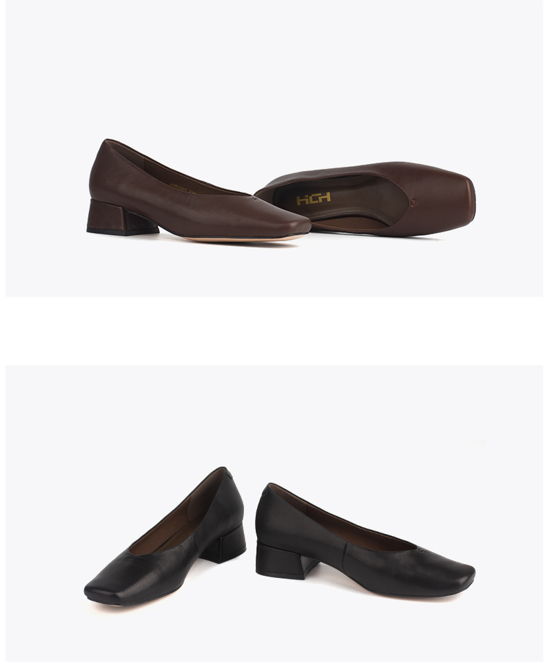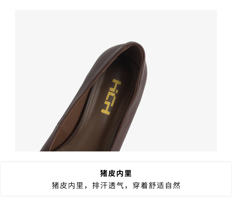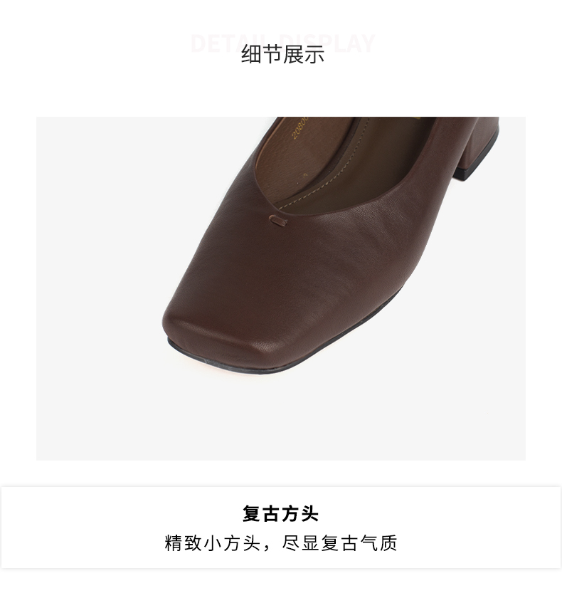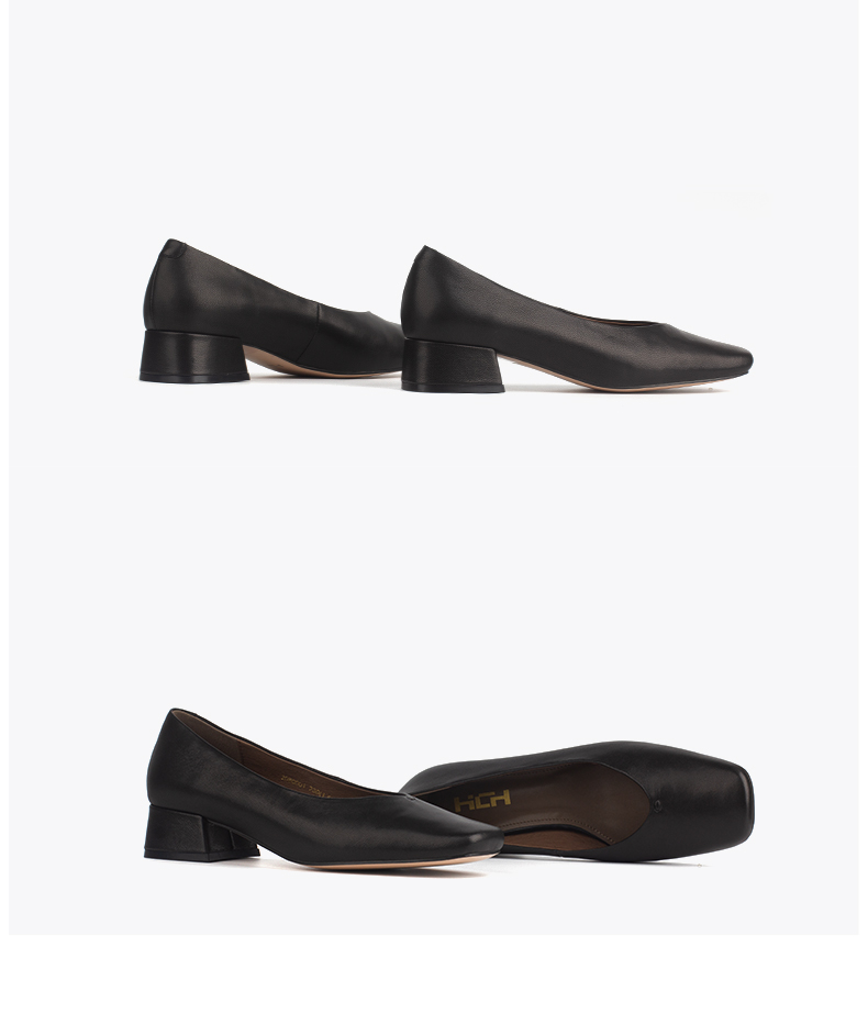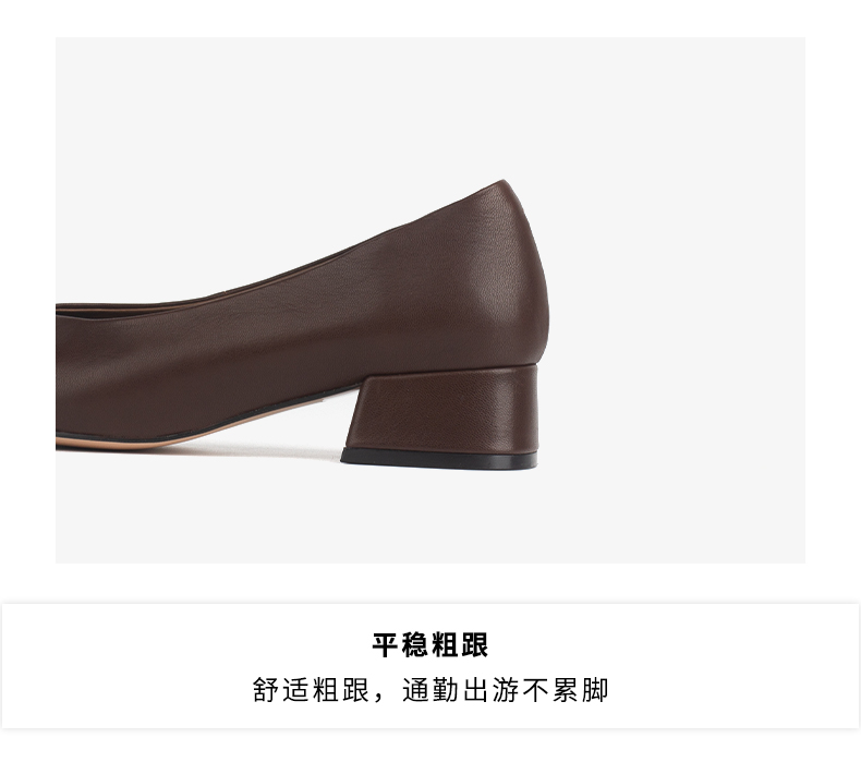 和诚行 2024秋冬新款法式气质方头浅口单鞋女百搭中跟单鞋2080001