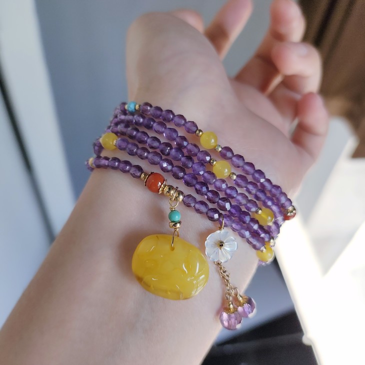 蜜蜡紫水晶手串