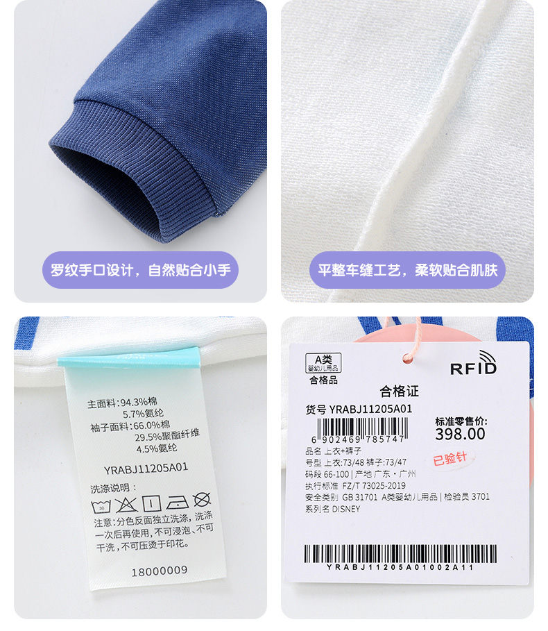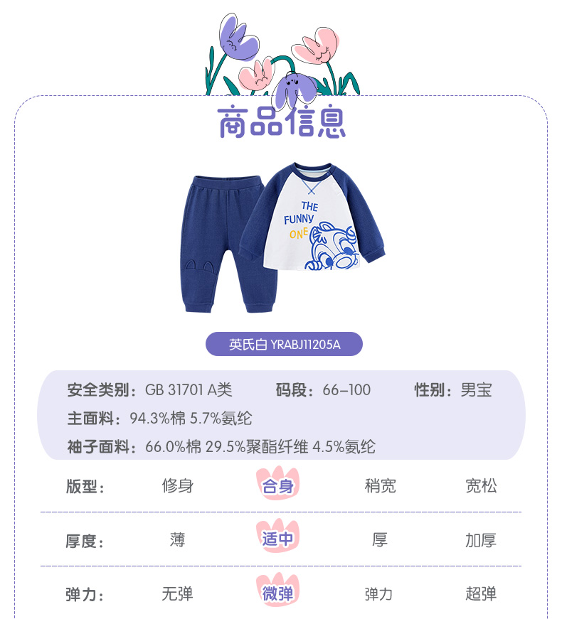 英氏-童衣类(春)E1迪针外着衣裤套英氏白100CM