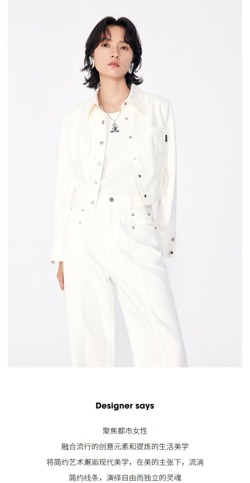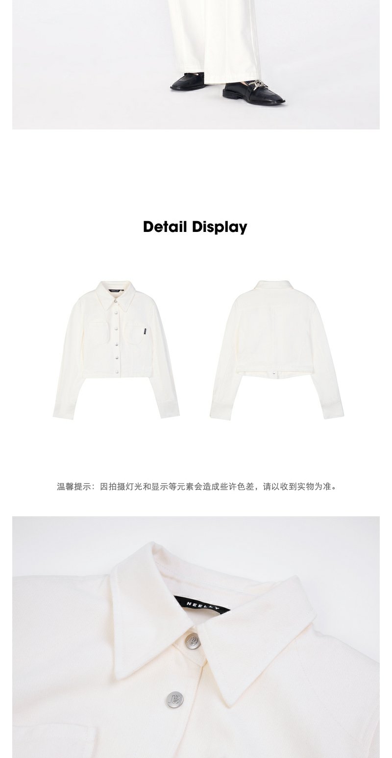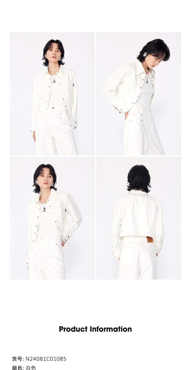 NEELLY纳俪商场同款秋季新款白色简约牛仔短外套女正肩显瘦上衣N24081C01085