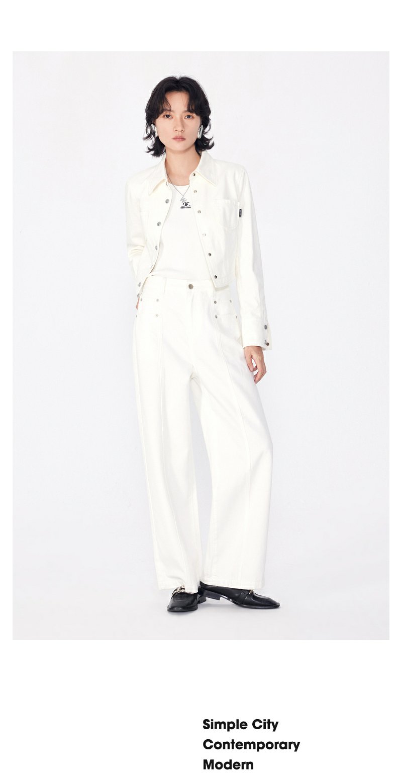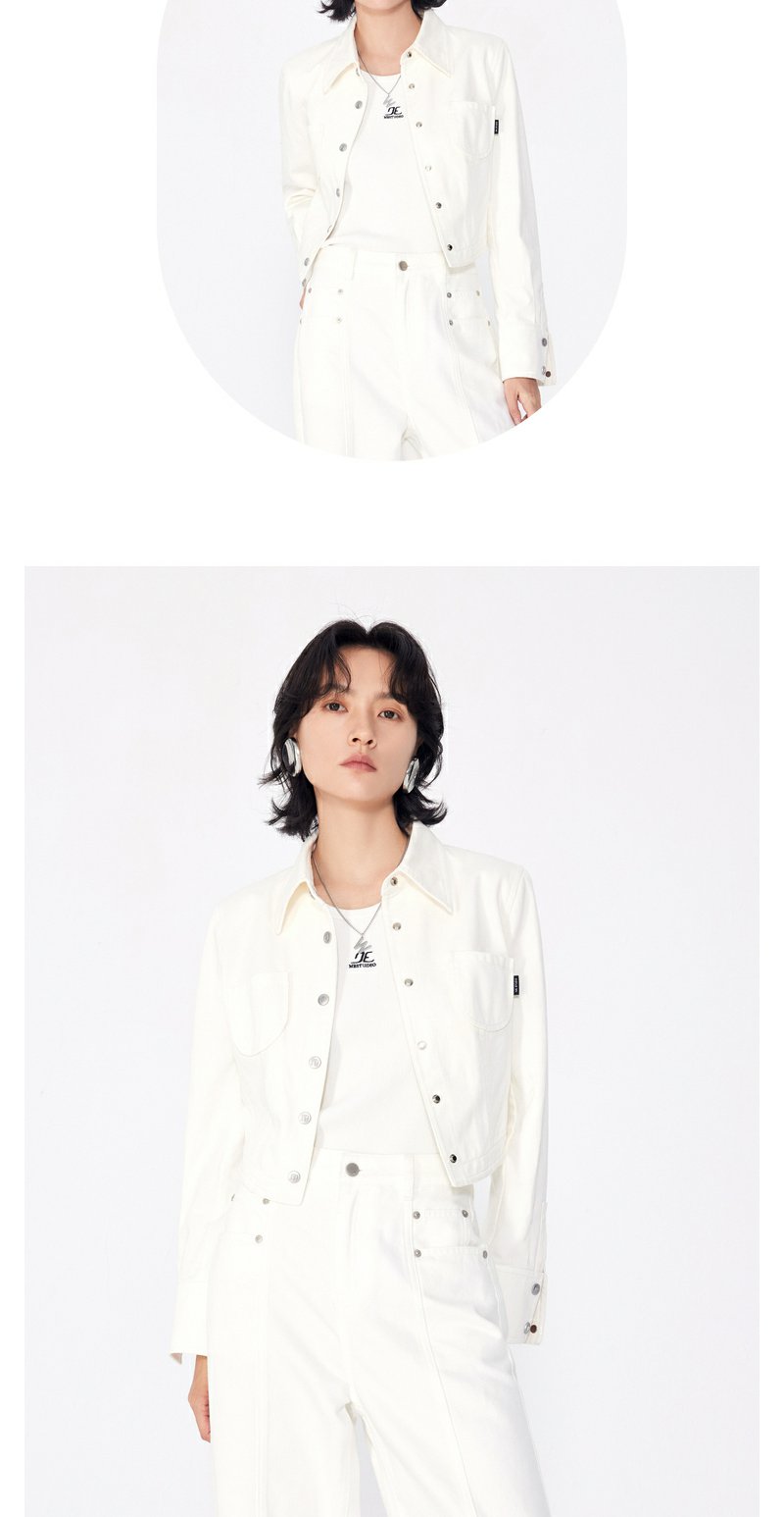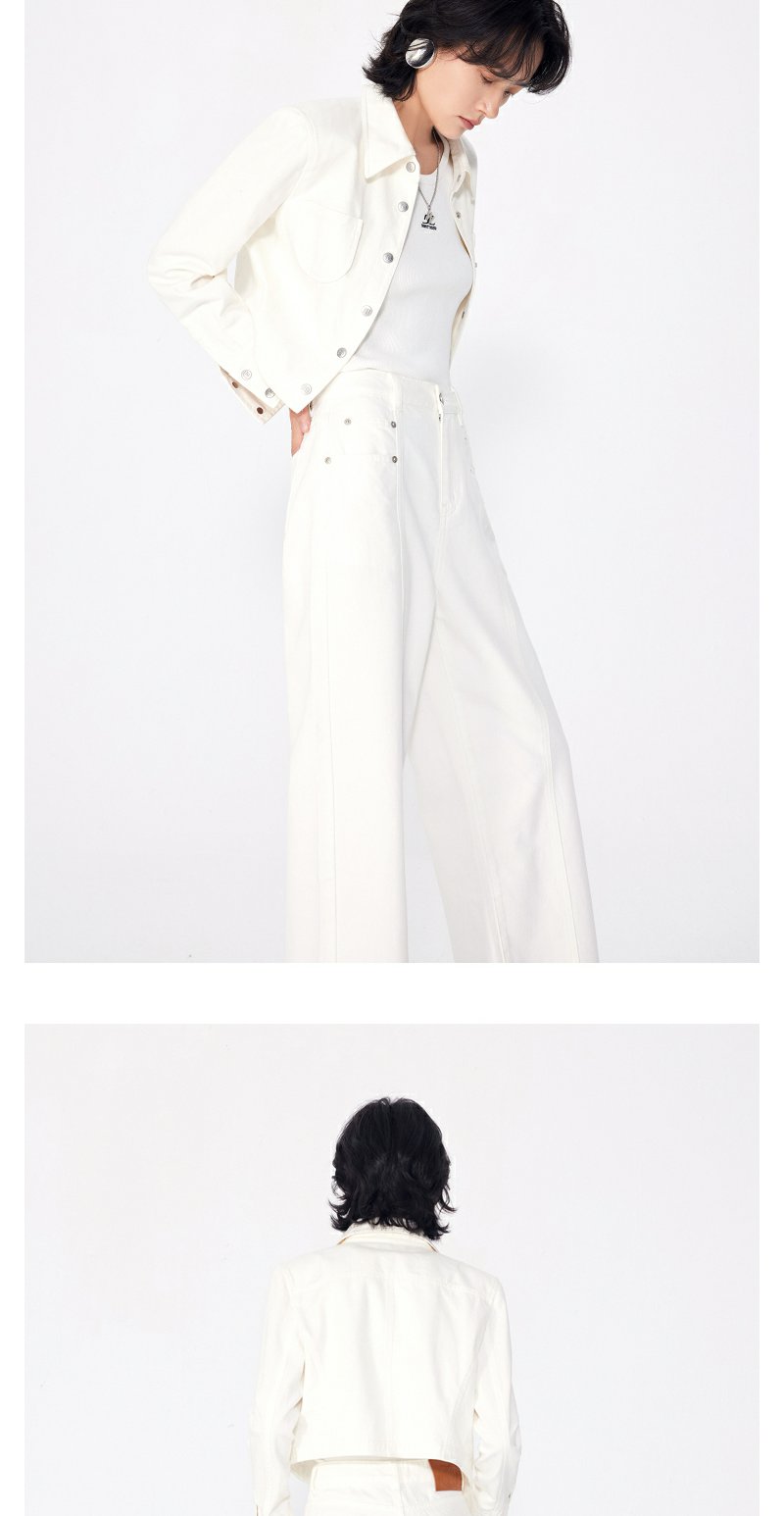 NEELLY纳俪商场同款秋季新款白色简约牛仔短外套女正肩显瘦上衣N24081C01085