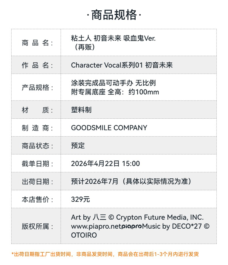 【GSC预售定金】粘土人 初音未来 吸血鬼Ver. 附官方限定特典