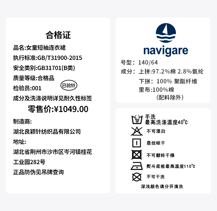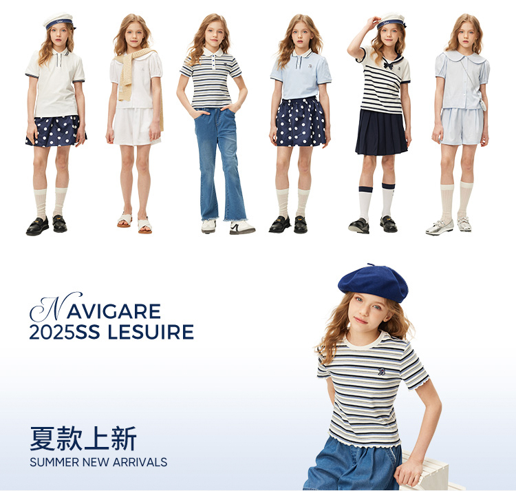 【纳维凯尔】【120-165】Navigare意大利小帆船女童POLO裙