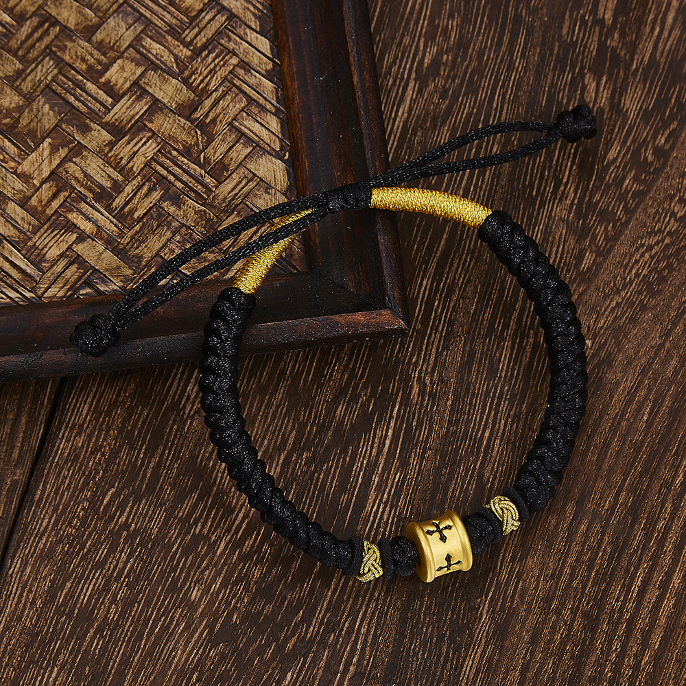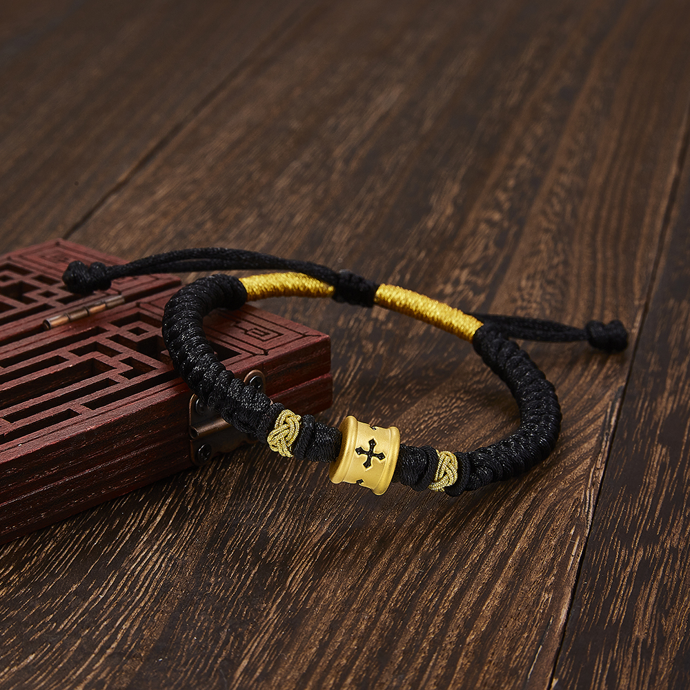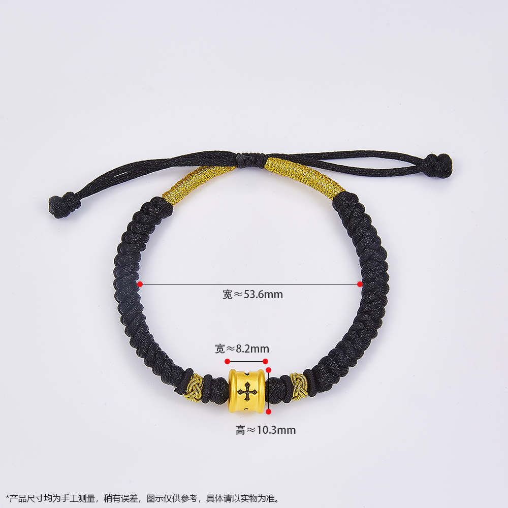 【限时7.5折】【定价黄金】足金 3D硬金黑烤漆十字转运珠黑绳调节成品手串(AA3DSC00091)(预售产品下单后不退款不退货不换货不补差