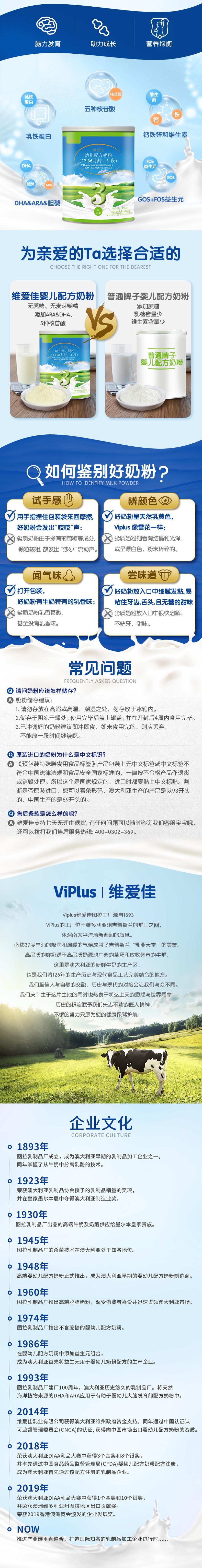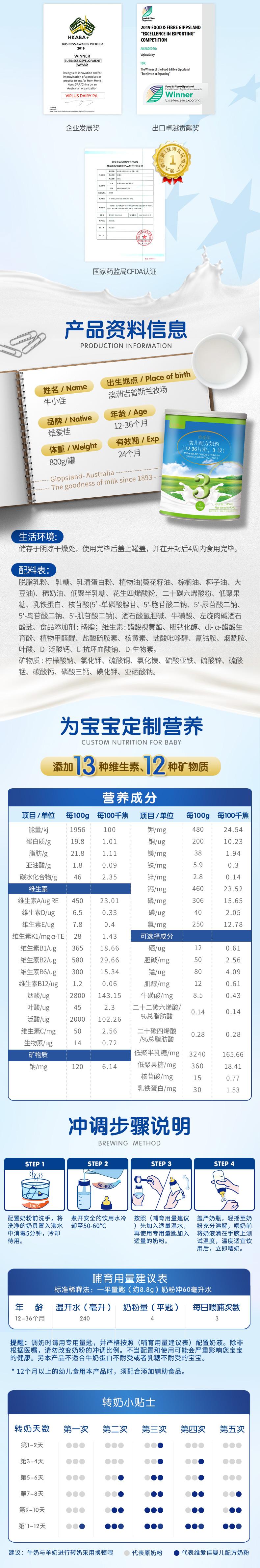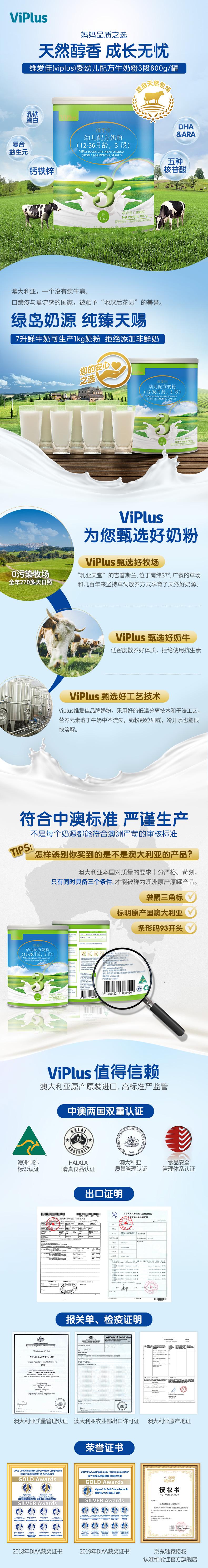 澳洲进 维爱佳Viplus婴儿配方奶粉3段 钙铁锌多维 12-36月 800g罐【维爱佳】