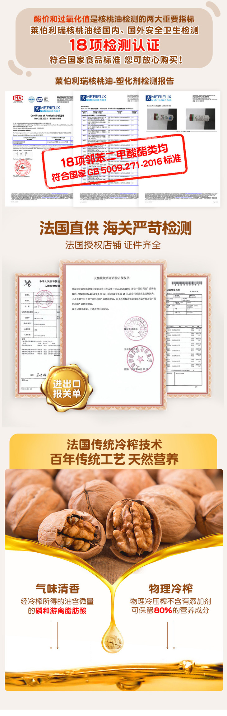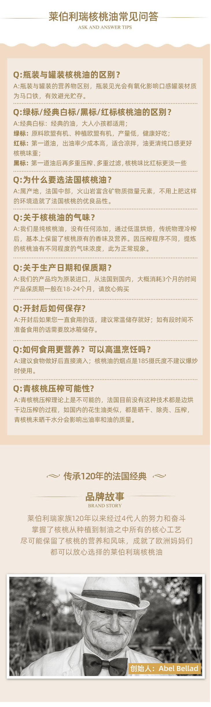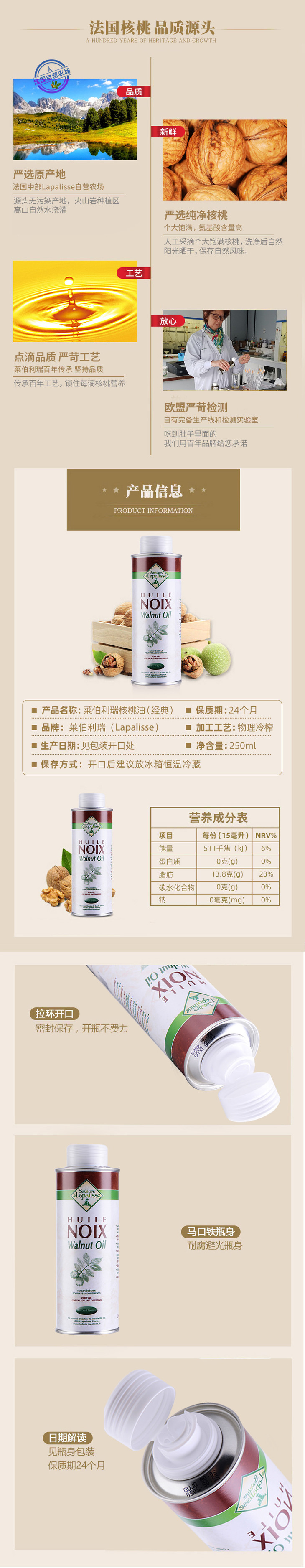 法国莱伯利瑞经典冷榨核桃油250ml(白标)