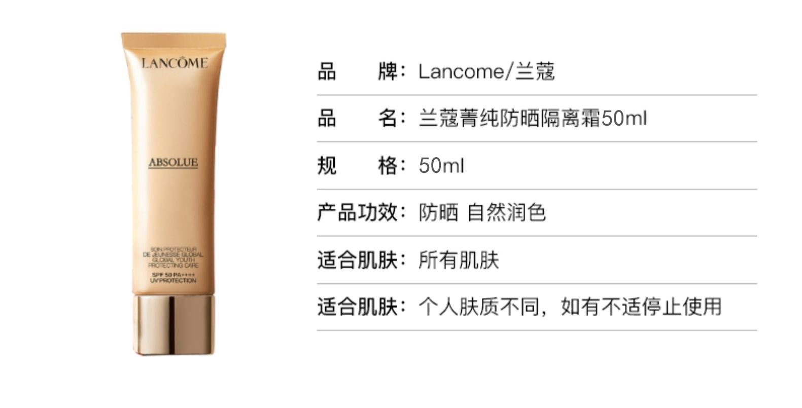 【保税仓直发】Lancome 兰蔻菁纯臻颜防晒隔离乳[买一送一] 高倍防晒50ml