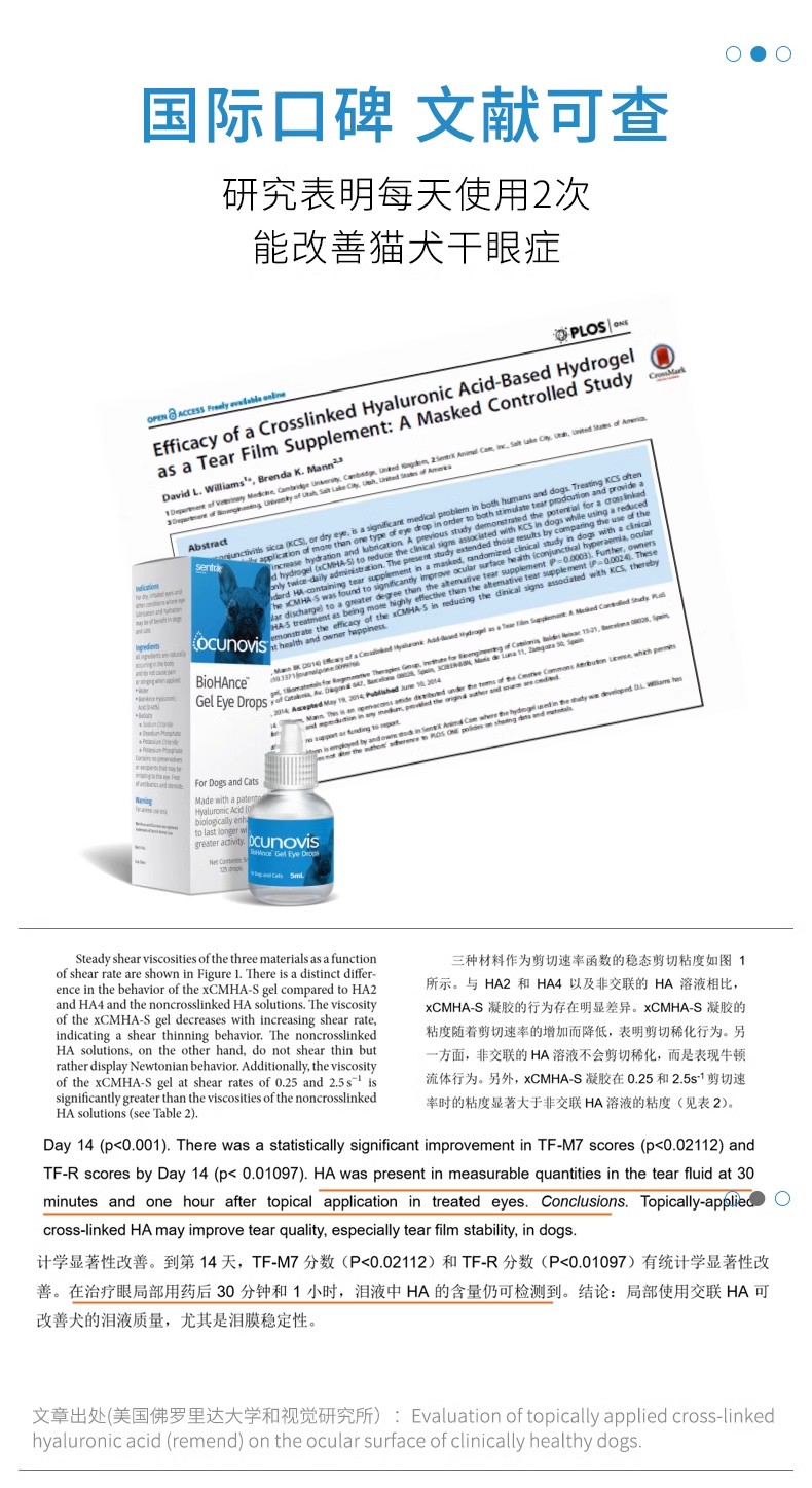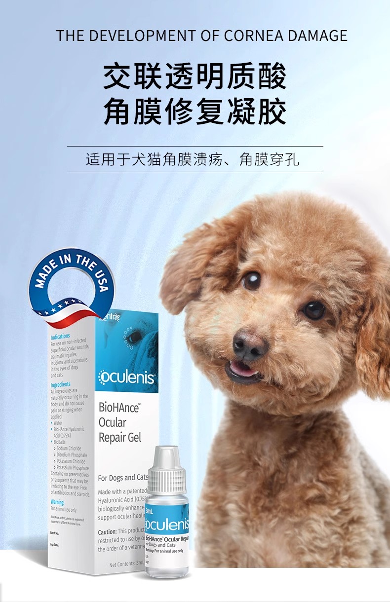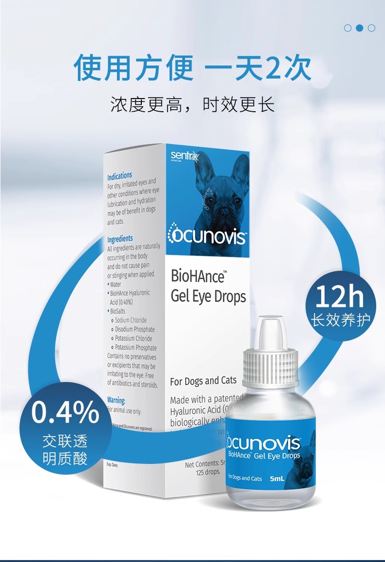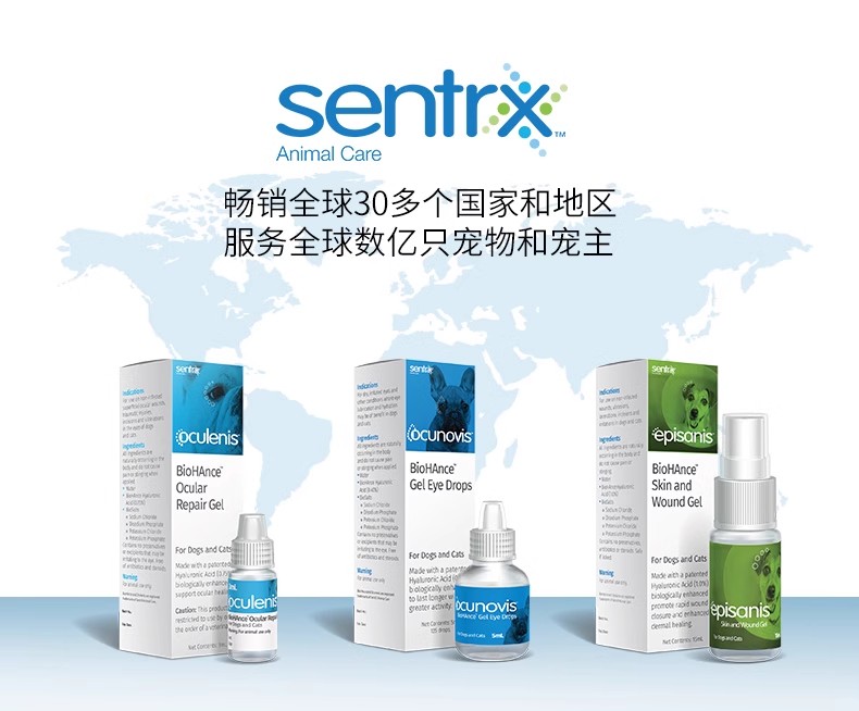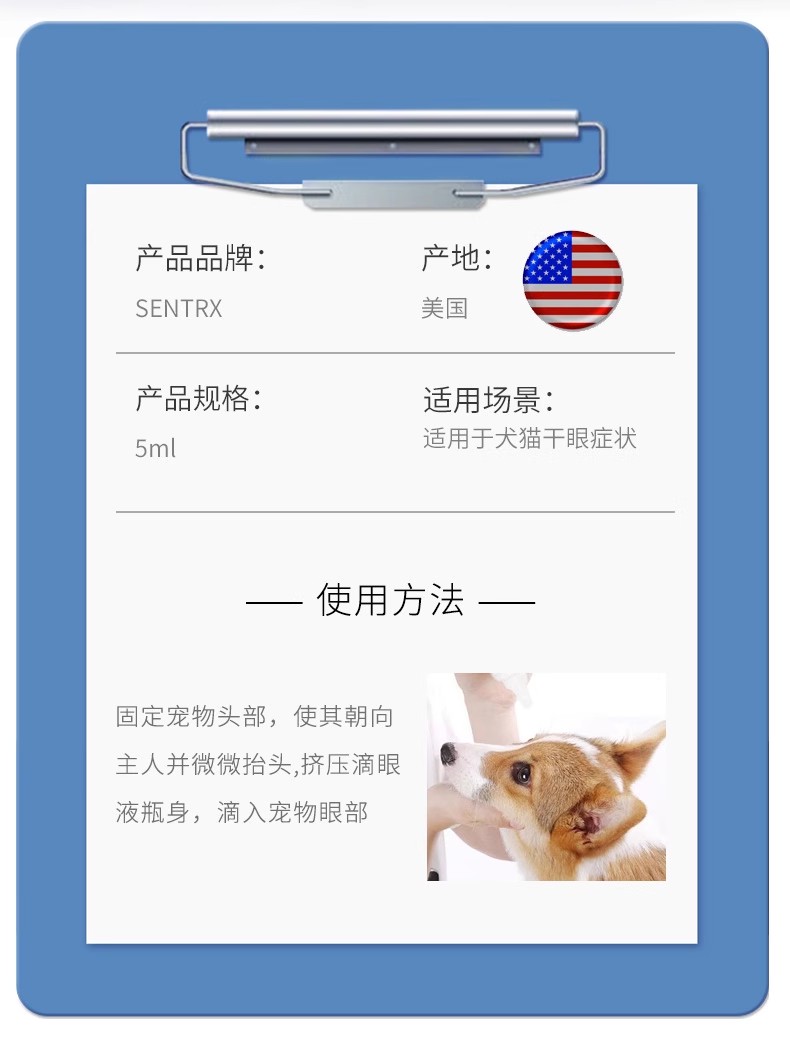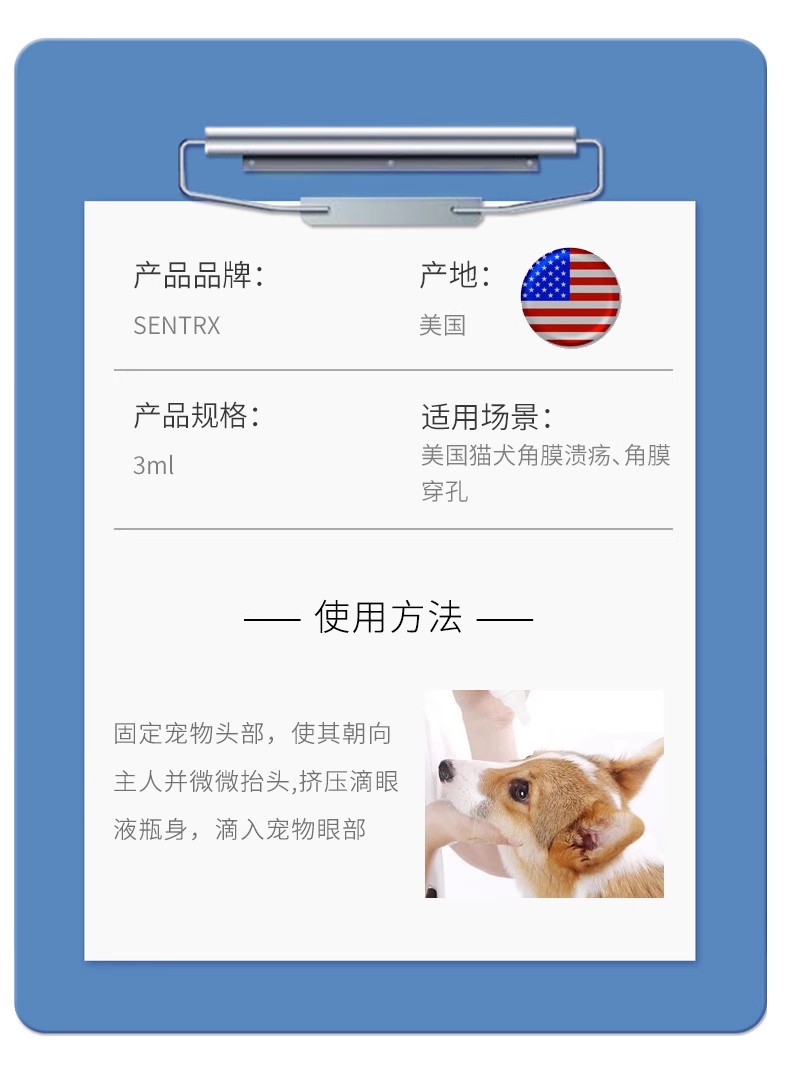 美国闪粹sentrx修复凝胶滴眼液缓和宠物猫狗角膜腐骨溃疡干眼症人造泪滴眼液(保健品类非药)