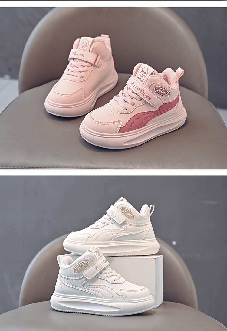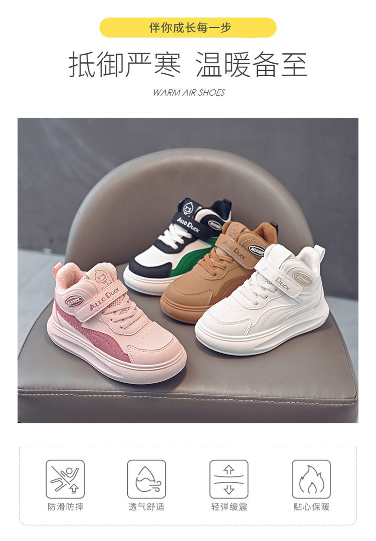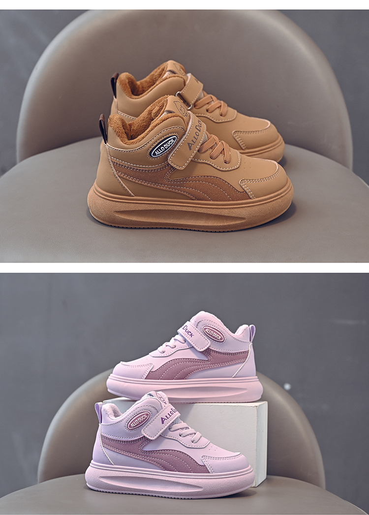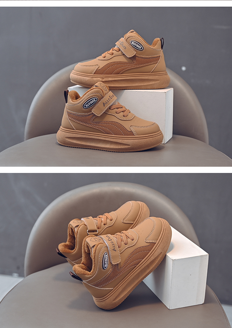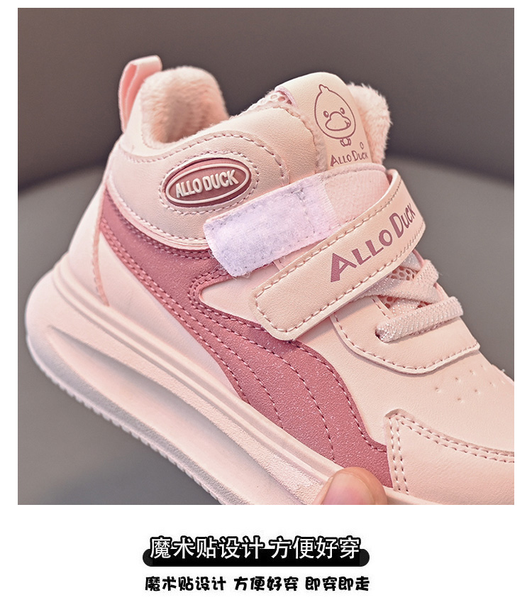 小黄鸭儿童冬季新款皮面男女童高帮二棉板鞋保暖防滑加绒耐磨运动鞋22-39