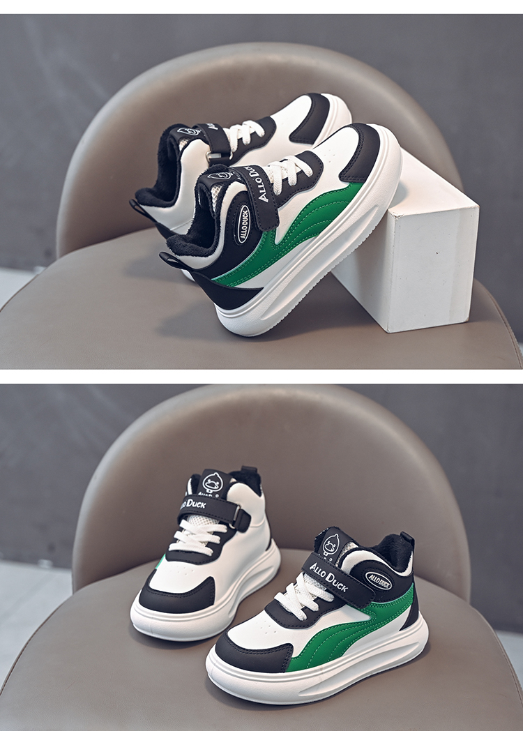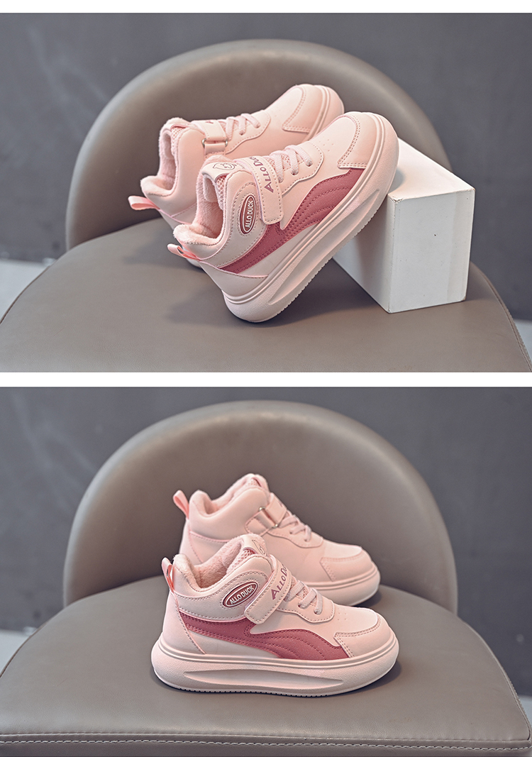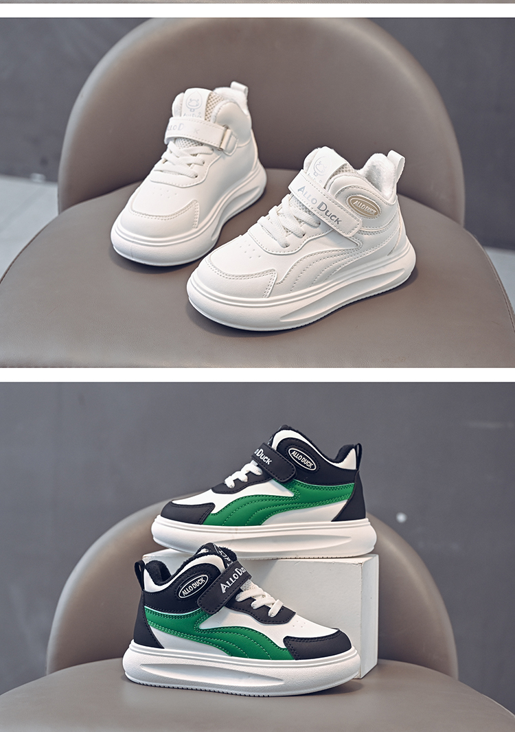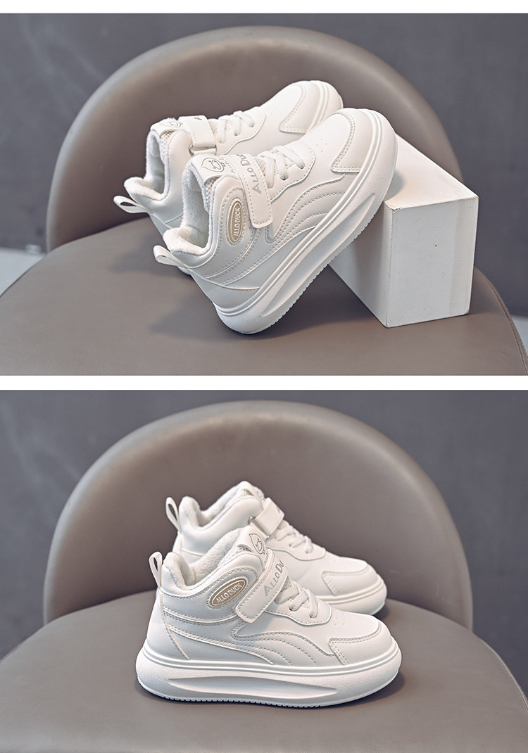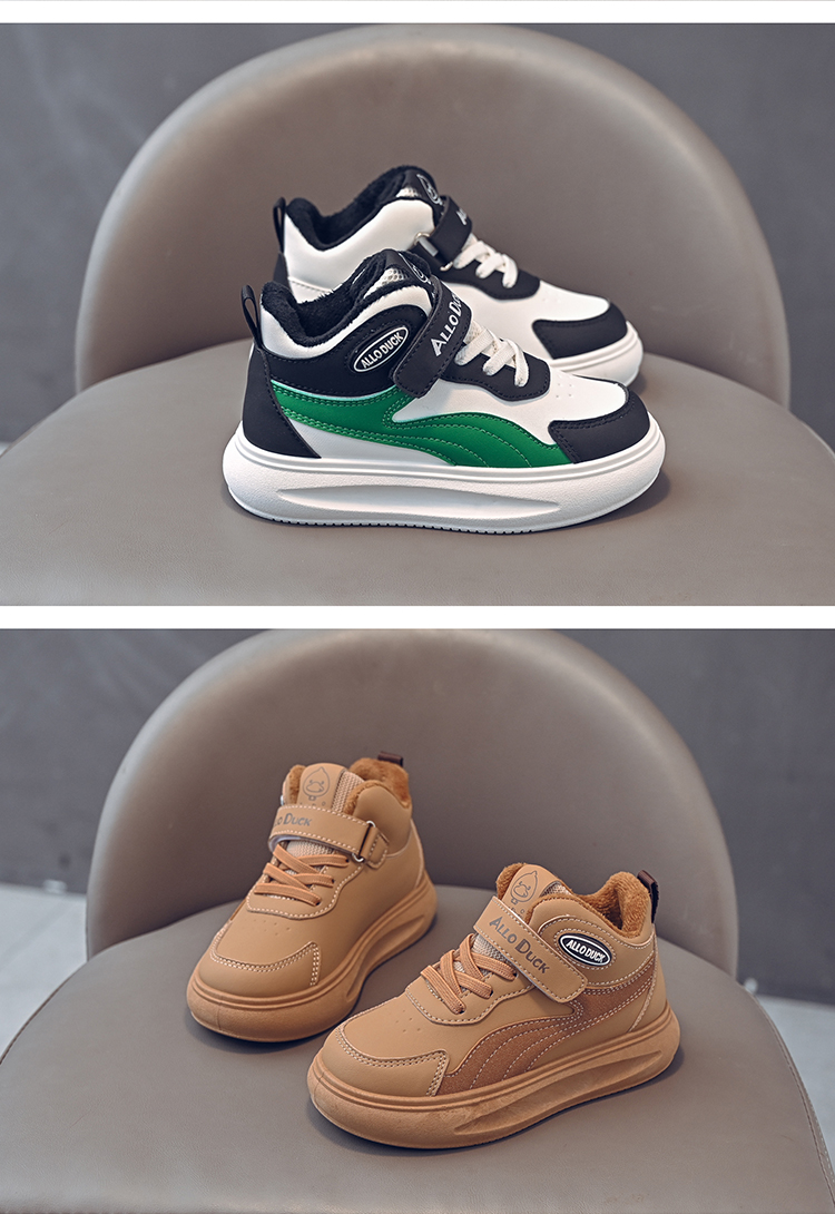 小黄鸭儿童冬季新款皮面男女童高帮二棉板鞋保暖防滑加绒耐磨运动鞋22-39