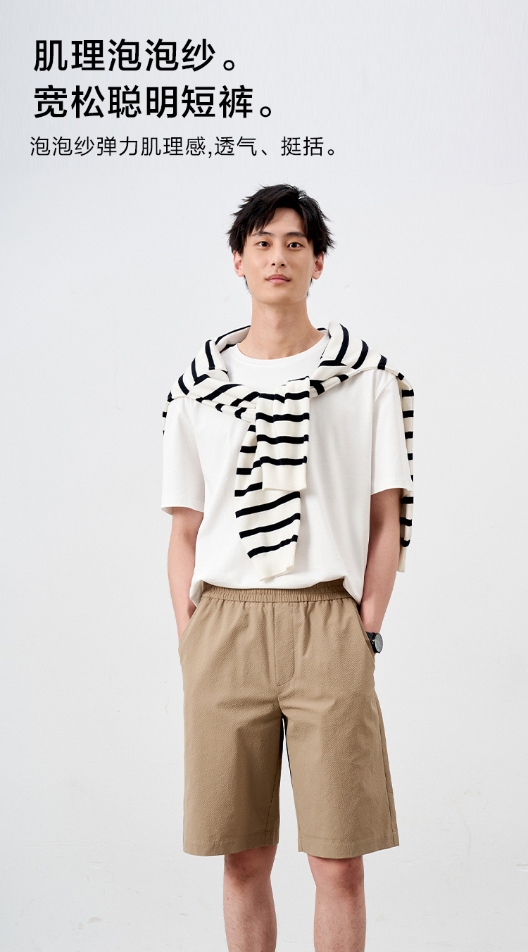 333818075棉先生泡泡纱凉感速干休闲短裤男夏季薄款宽松松紧腰五分中裤