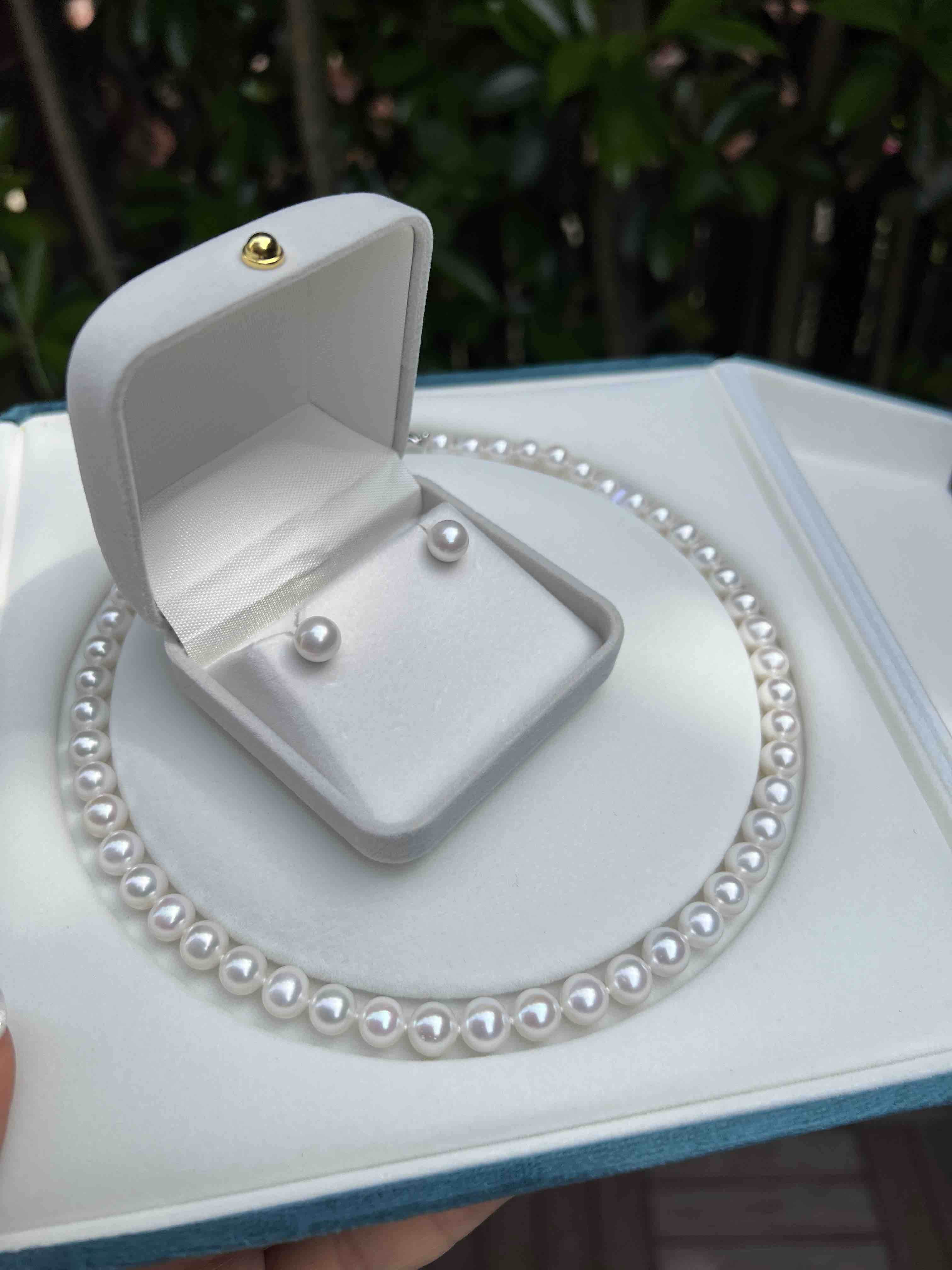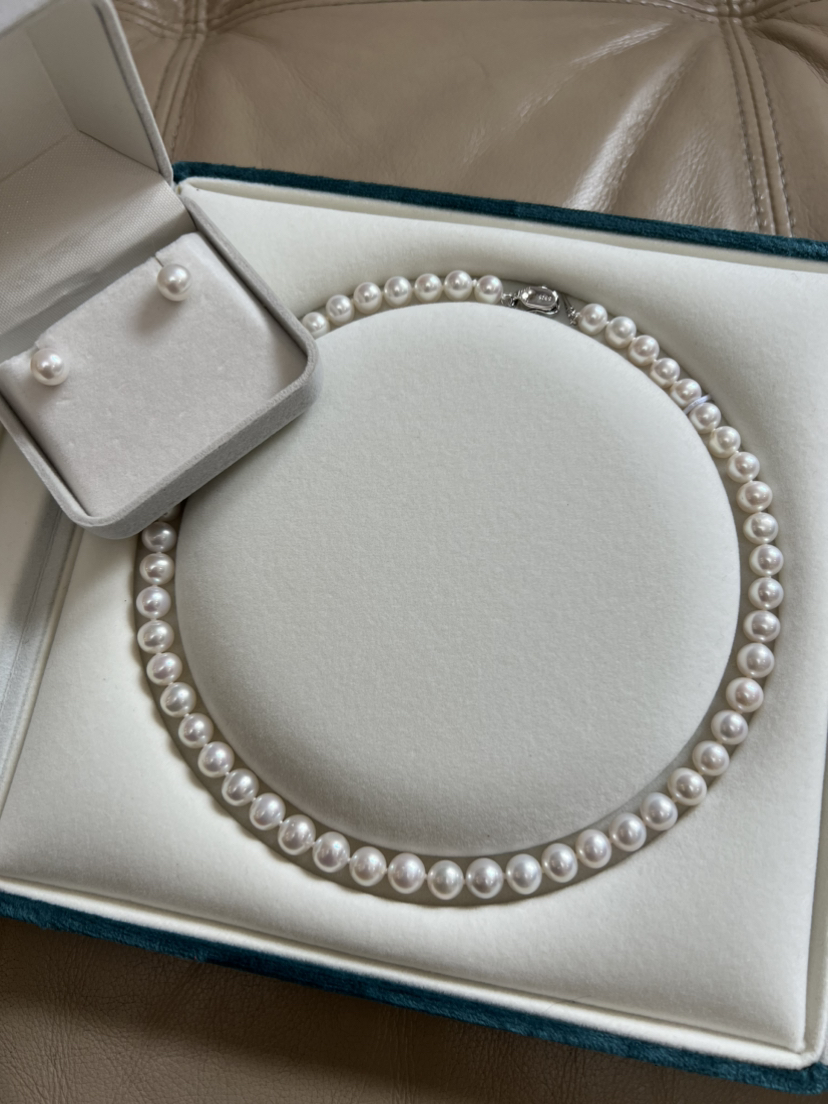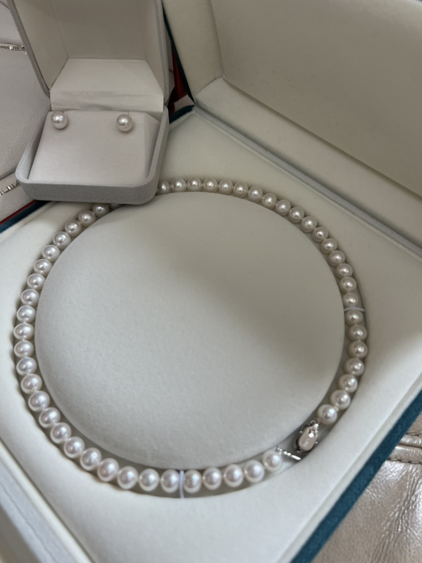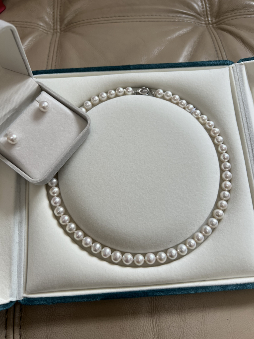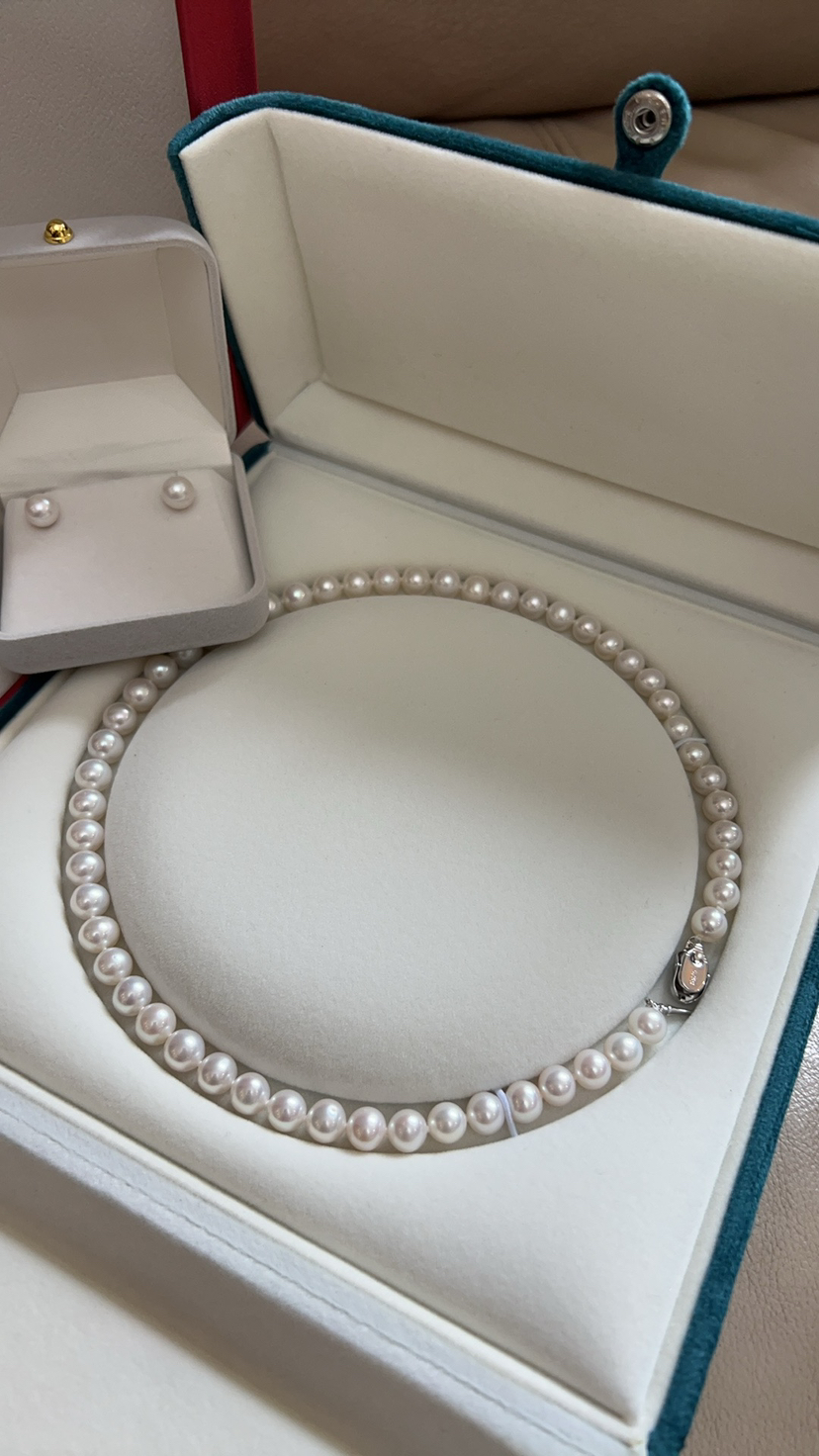 打开就是海水珍珠的既视感,这类顶配的珠子我是敢囤货的,因为无论过多少年,都是一样的璀璨,一样的迷人,一样的夺目。丝绸光泽,7.5-8mm,极光正圆几乎无瑕。高品质的无核淡水珠子,我给了个惊悚价格