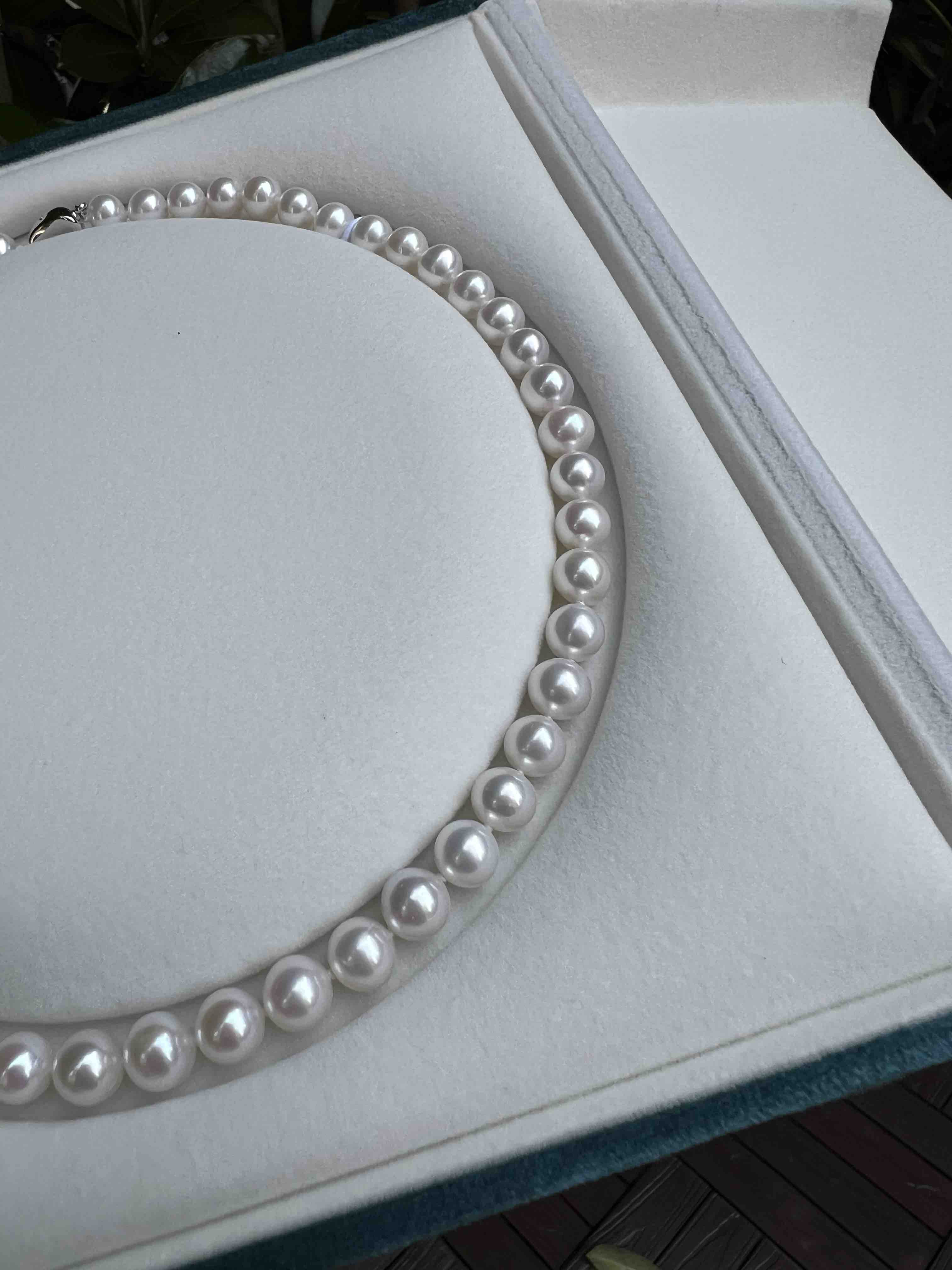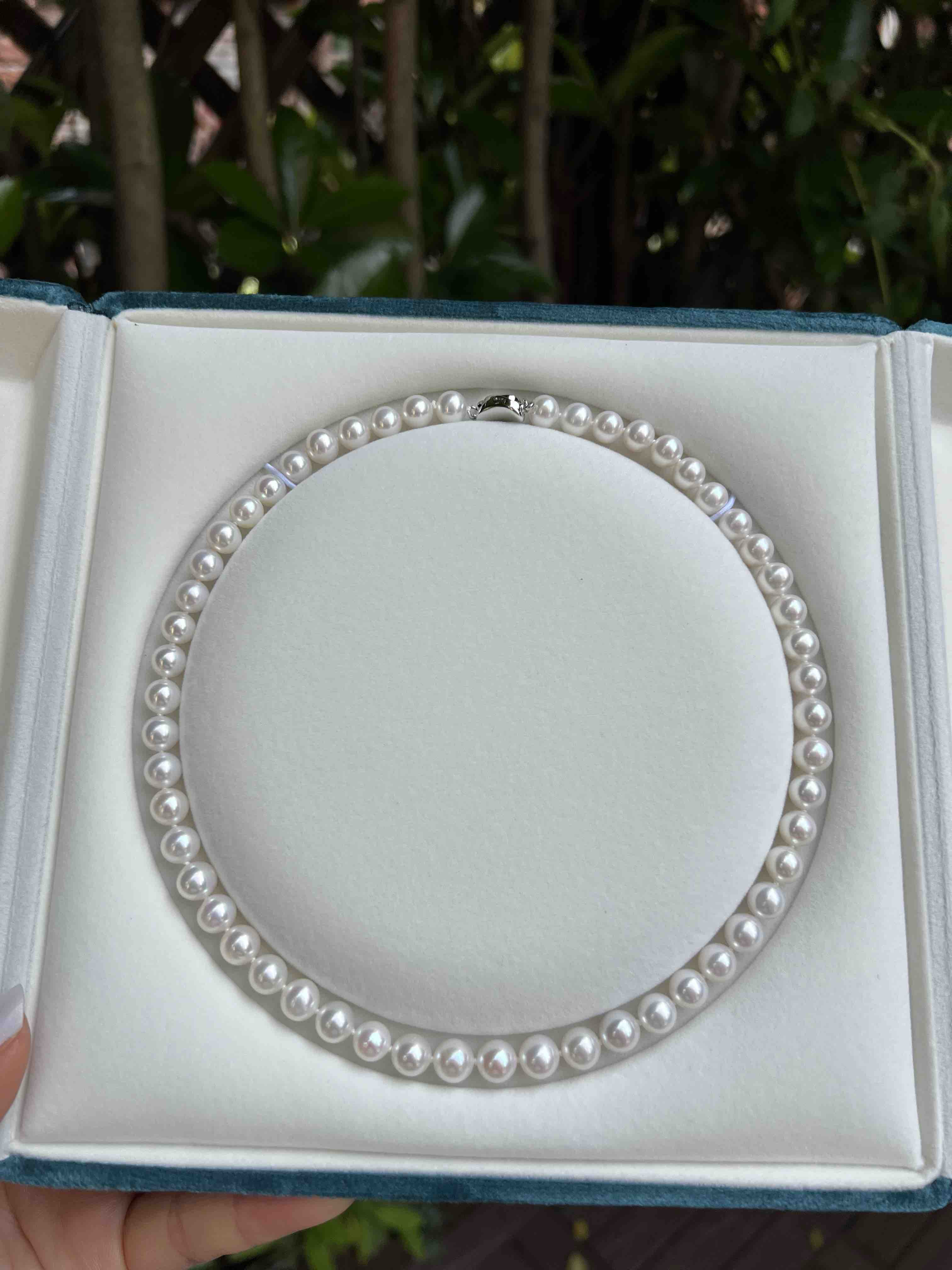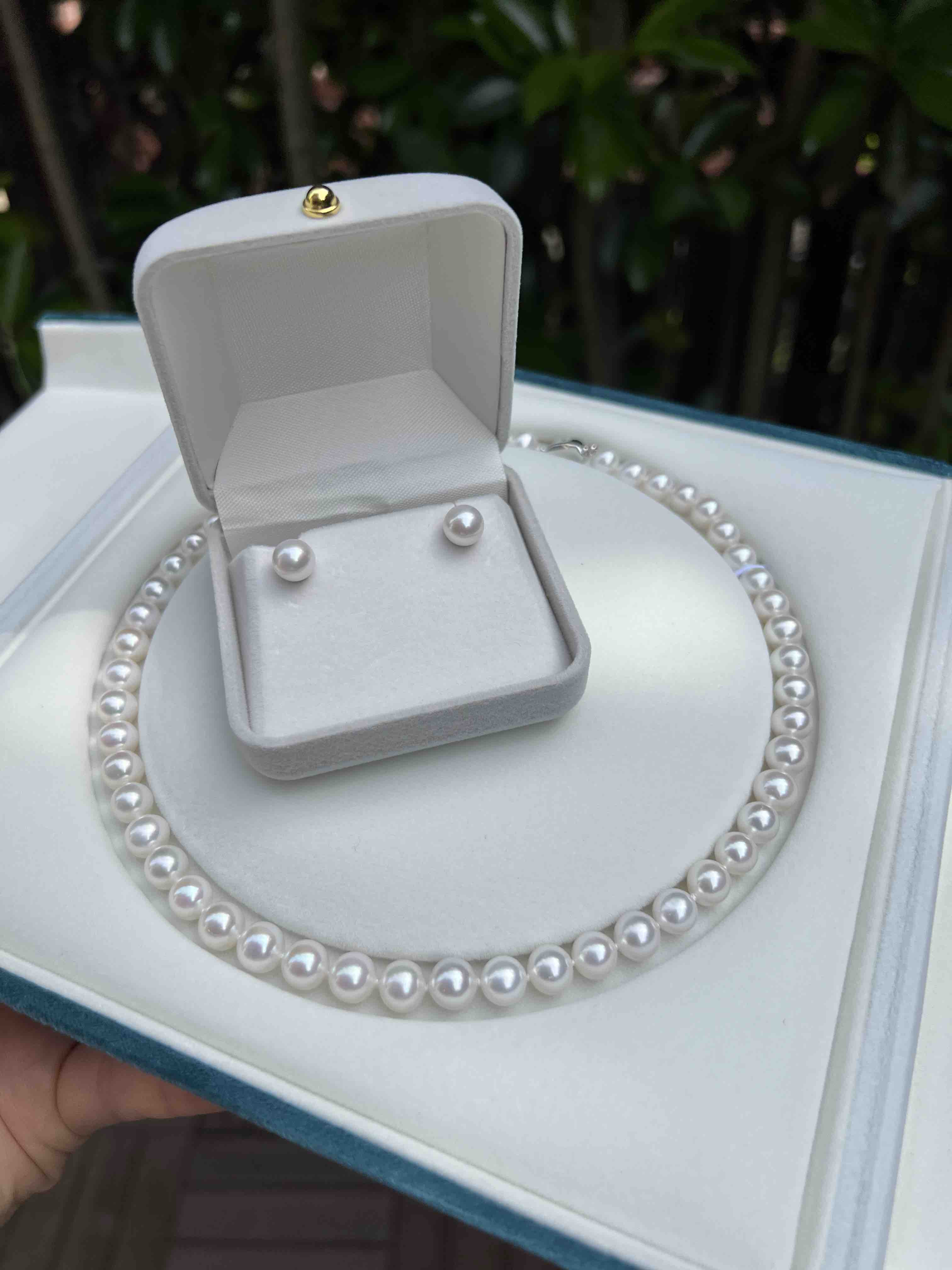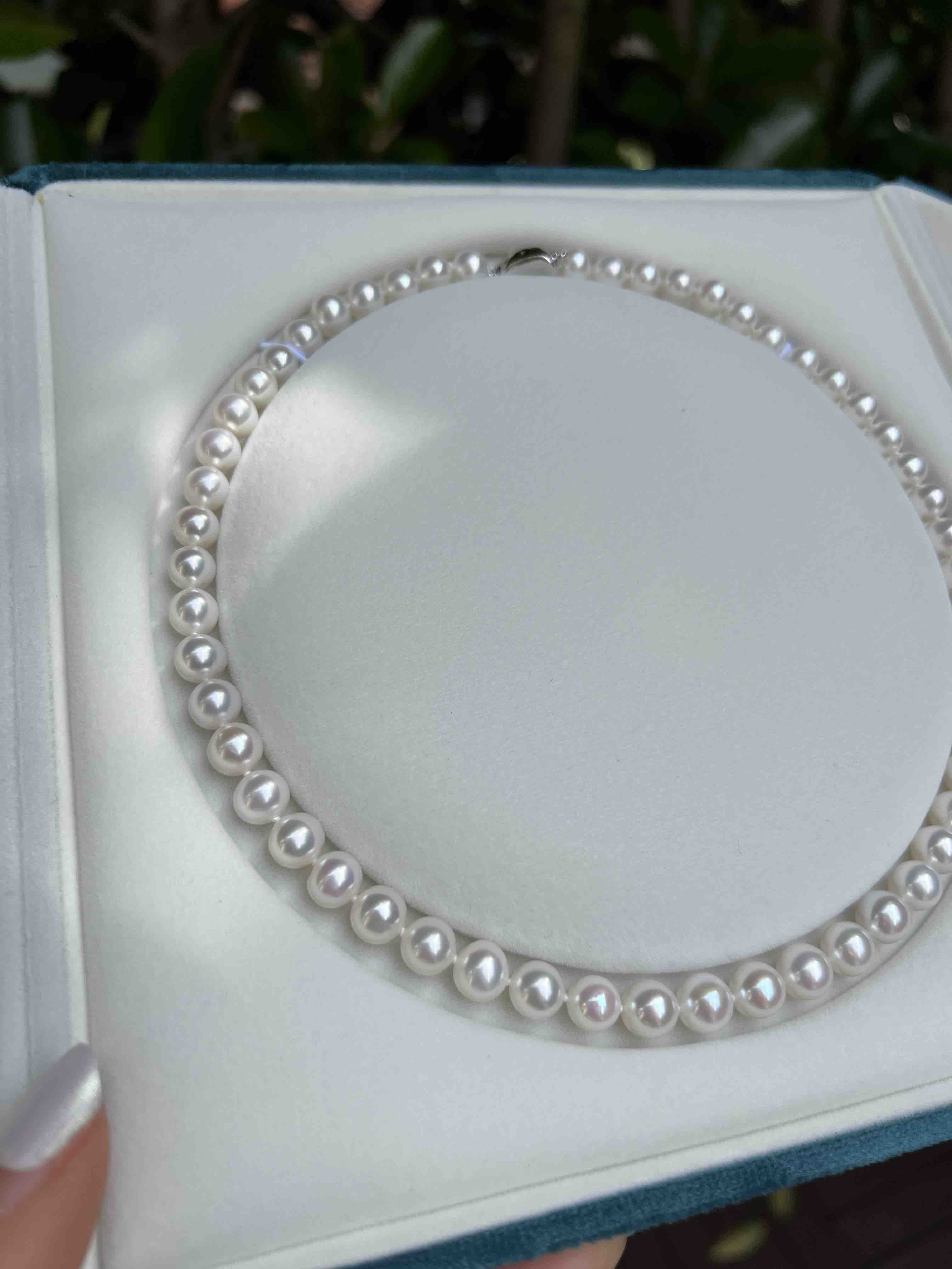 打开就是海水珍珠的既视感,这类顶配的珠子我是敢囤货的,因为无论过多少年,都是一样的璀璨,一样的迷人,一样的夺目。丝绸光泽,7.5-8mm,极光正圆几乎无瑕。高品质的无核淡水珠子,我给了个惊悚价格
