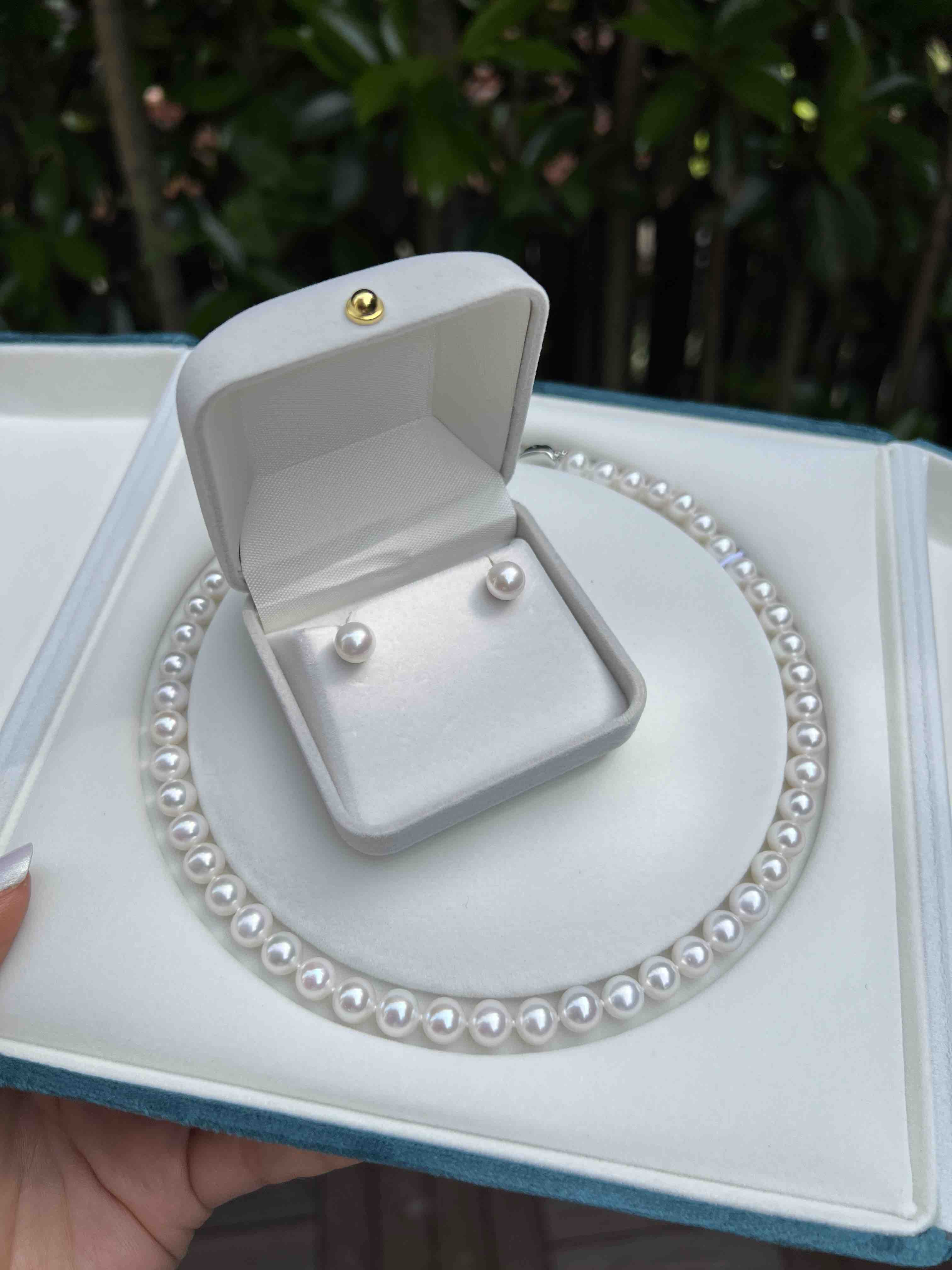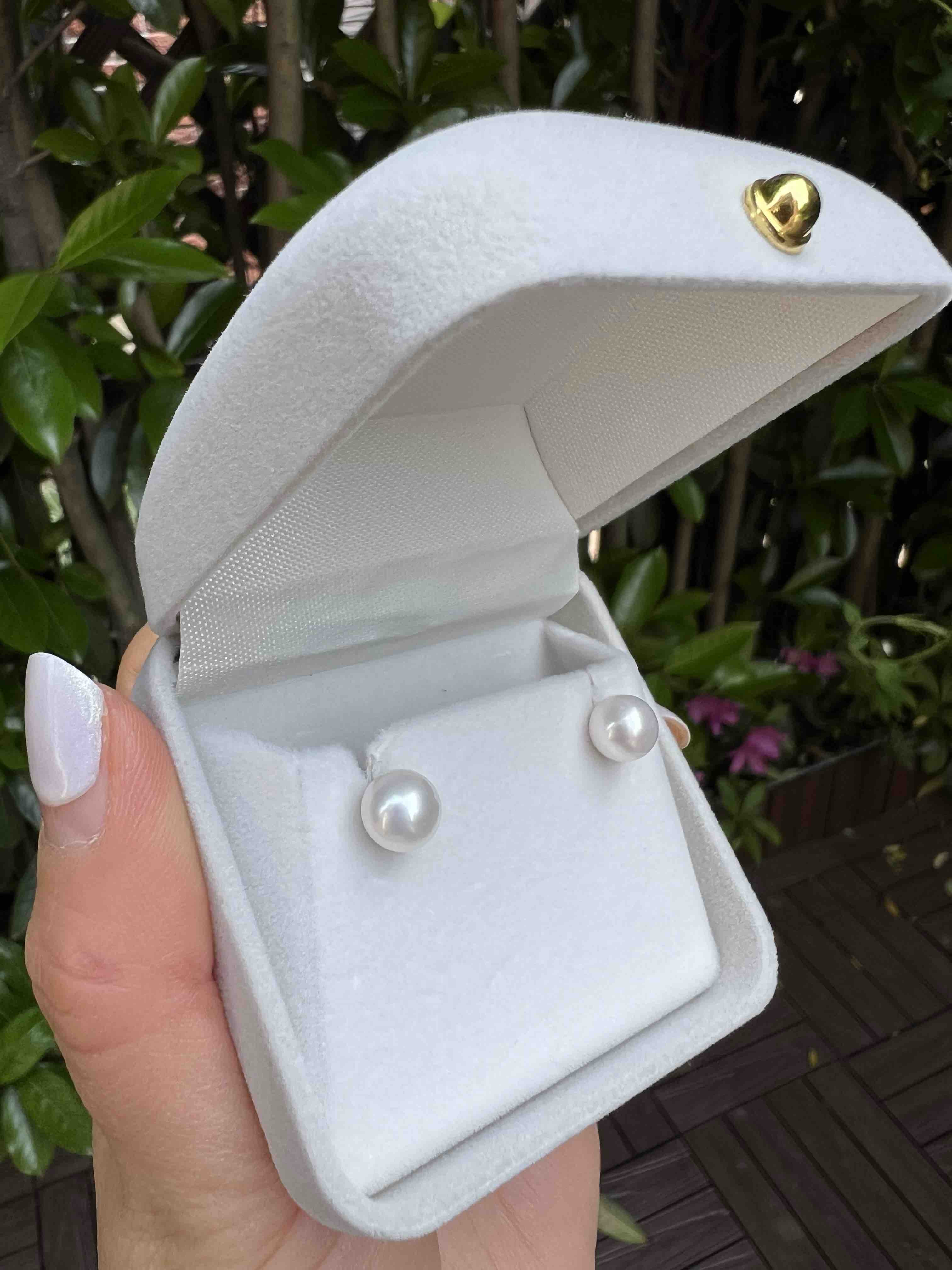 配置的耳钉是7-7.5mm淡水无核正圆极光耳钉,也是淡水中天花板级别的,这个配套都给你整好了