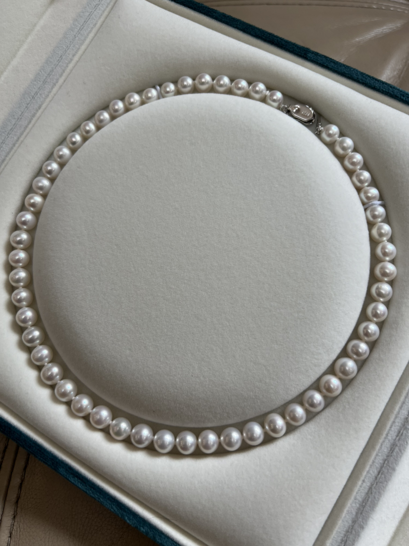 56-2顶配 淡水无核珍珠 7.5-8.5mm高品质串珠 带证书 媲美花珠 更干净