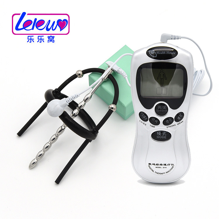 BDSM情趣男用自慰电击高潮器阴茎环尿道堵插棒