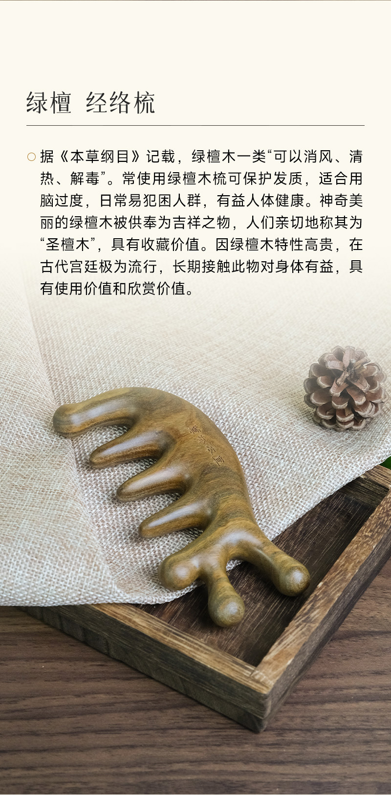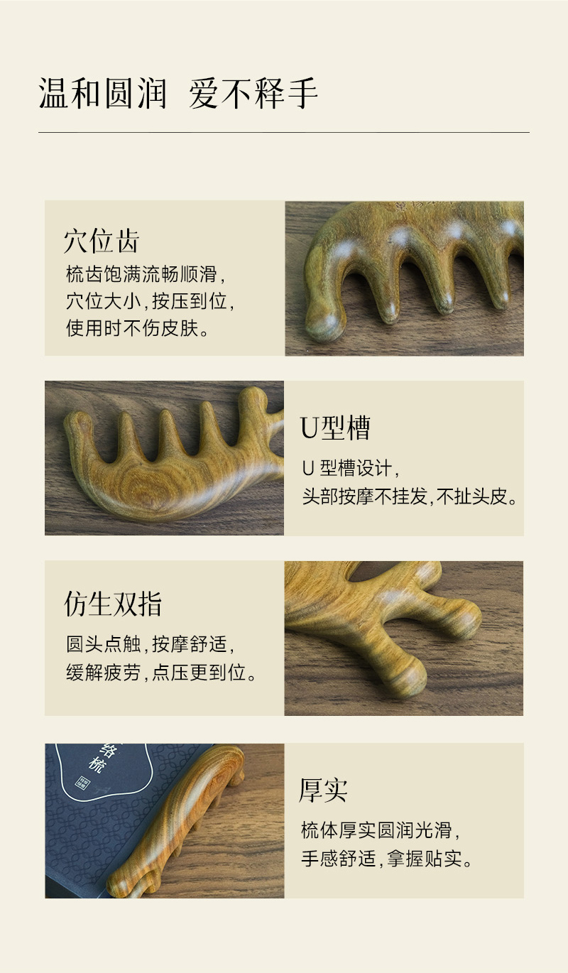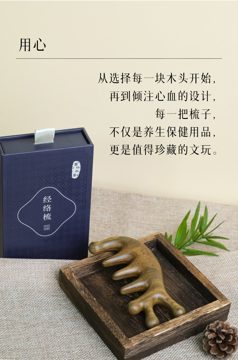 【升级加厚版】万物本草绿檀经络梳 头疗按摩男女刮痧头皮疏通宽齿 仿生手指按摩齿