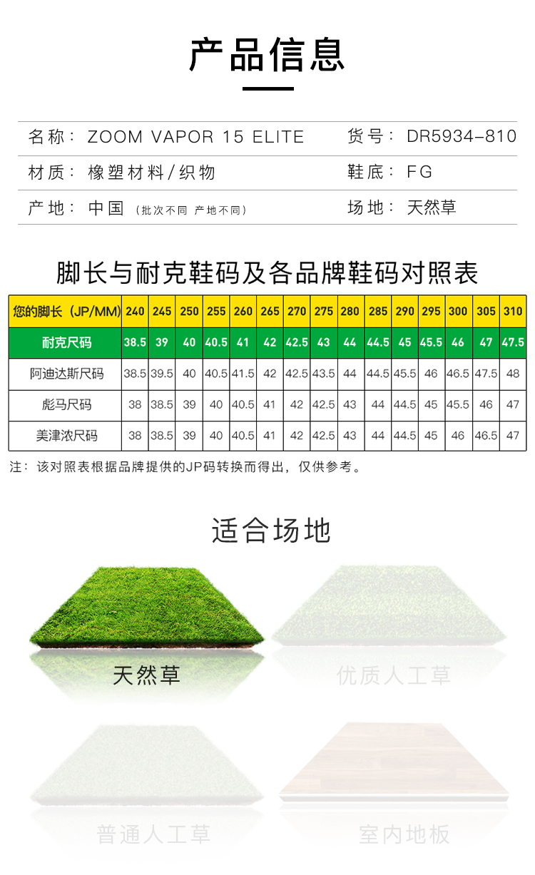 NIKE/耐克 ZOOM VAPOR 15 ELITE FG 刺客15 低帮高端FG足球鞋