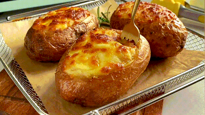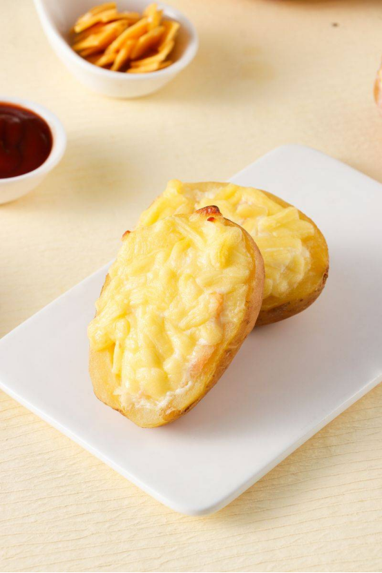 ❤️谁能不爱醇厚浓香的芝士烤土豆啊!!! 土豆的软糯遇上芝士的香浓, 一口让人流连忘返~ 先说说土豆🥔 土豆的营养丰富,除淀粉含量高, 还富含蛋白质、氨基酸、多种维生素和矿物质, 维生素含量是所有粮食中最全的, 其中碳水化合物和蛋白质比例完美, 可使人们在满足自身热量同时摄入充足蛋白质。