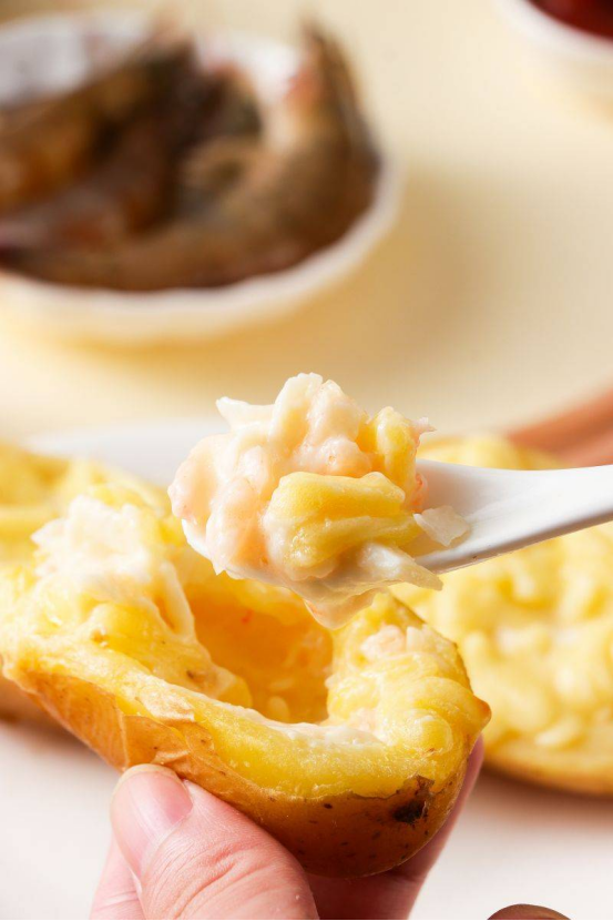 平时去餐厅真的必点! 但为了吃个芝士烤土豆🥔 🥱天天下馆子荷包也顶不住啊! 我开始尝试自己动手做 网上的教程真的是一看就会,一动手就废! 但功夫不负有心人! 还是让我这种手残党找到了! 福康伯海鲜薯碗芝士🧀! 足不出户!在家轻松尝到美味的芝士烤土豆!