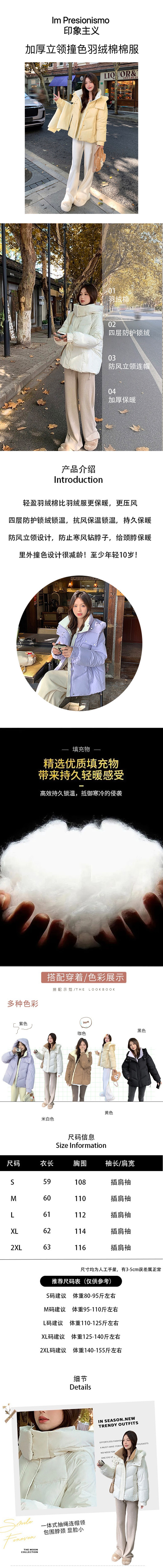 Im Presionismo加厚立领撞色羽绒棉棉服