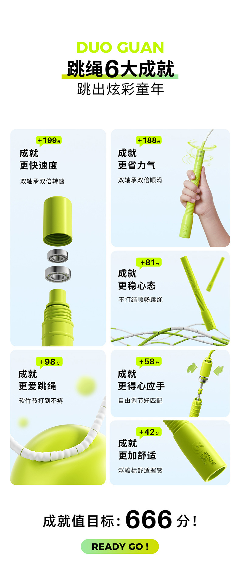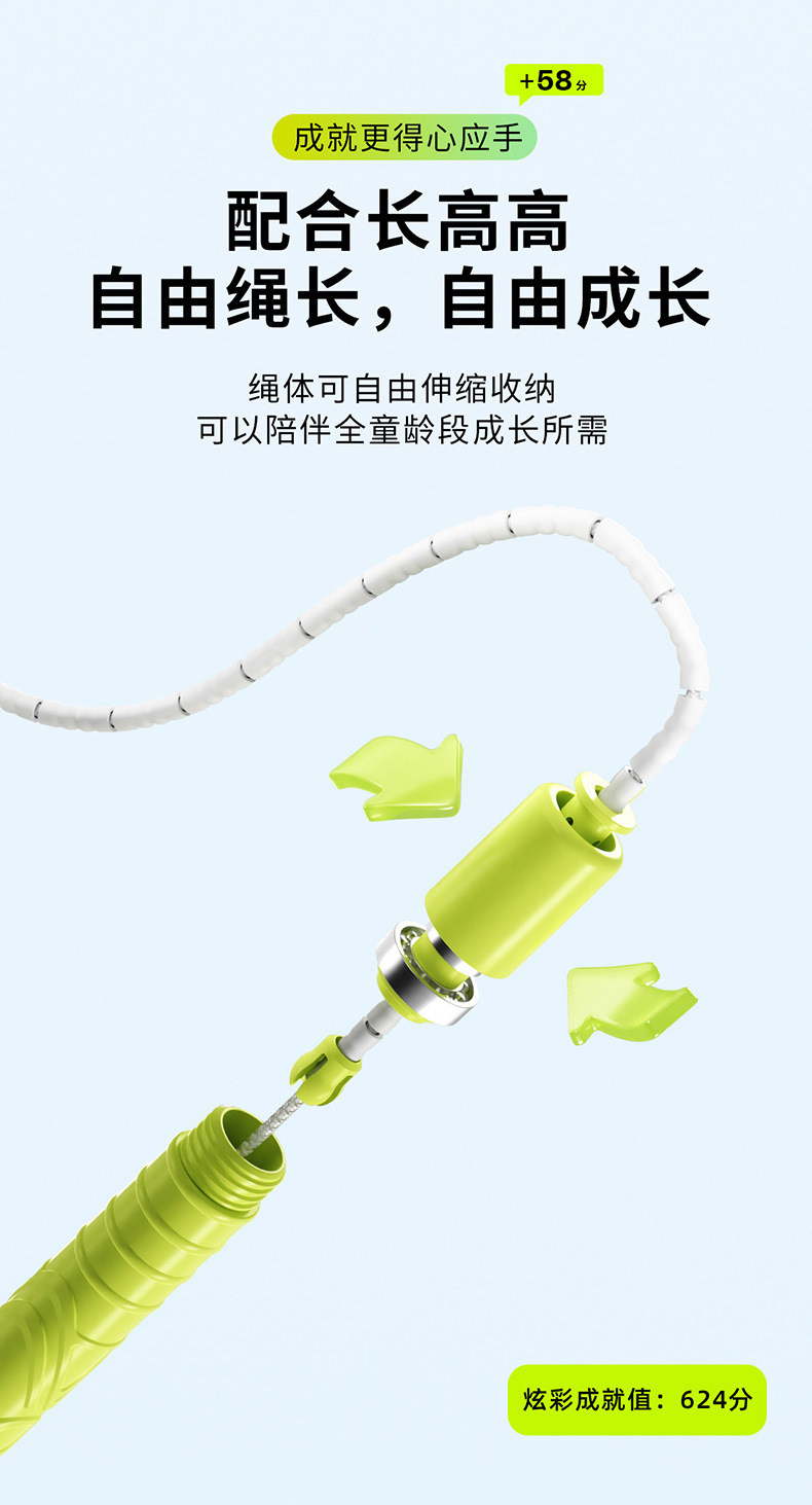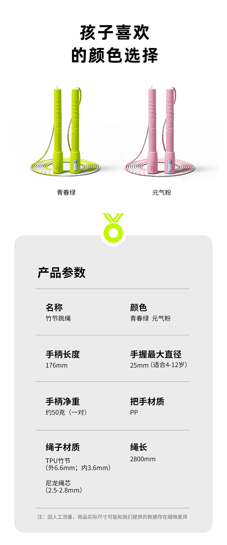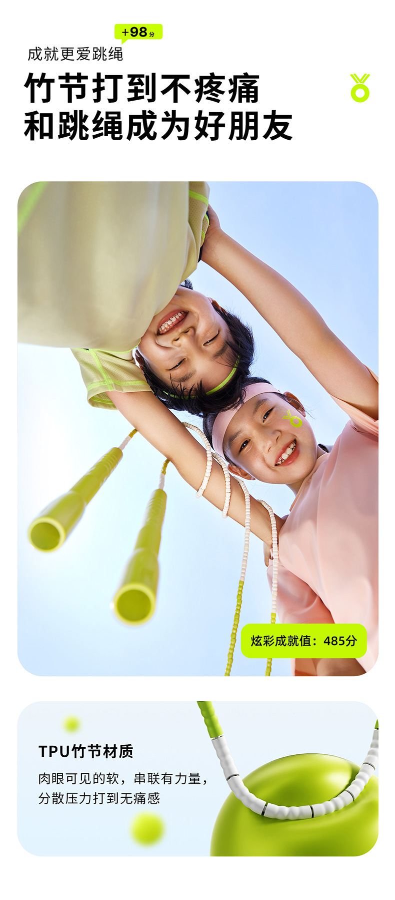 【更适合学生的跳绳】夺冠体育儿童竹节跳绳 幼儿园大班初学用花式跳绳