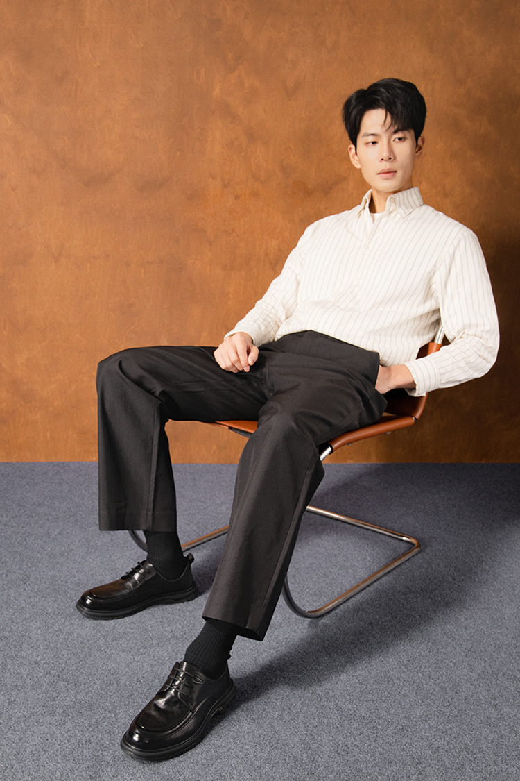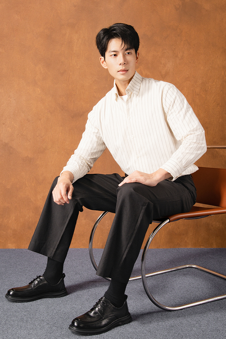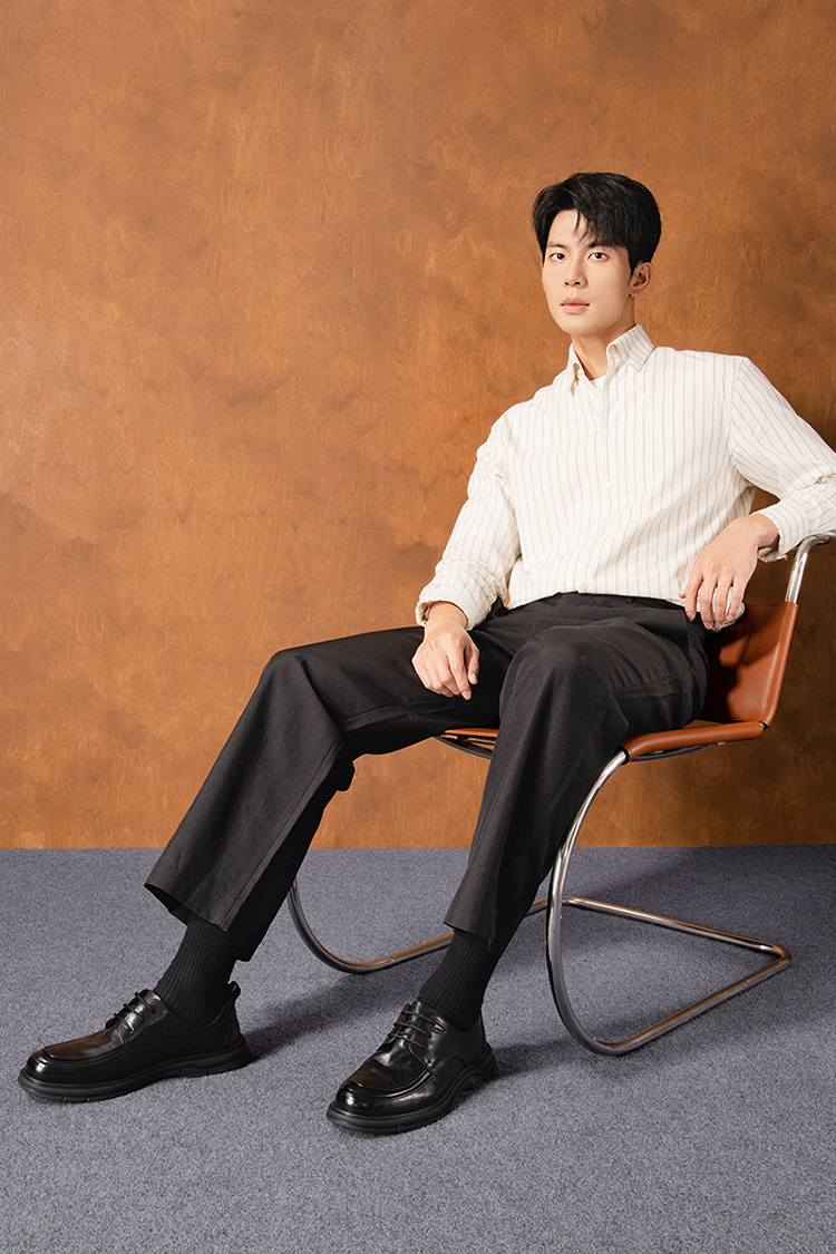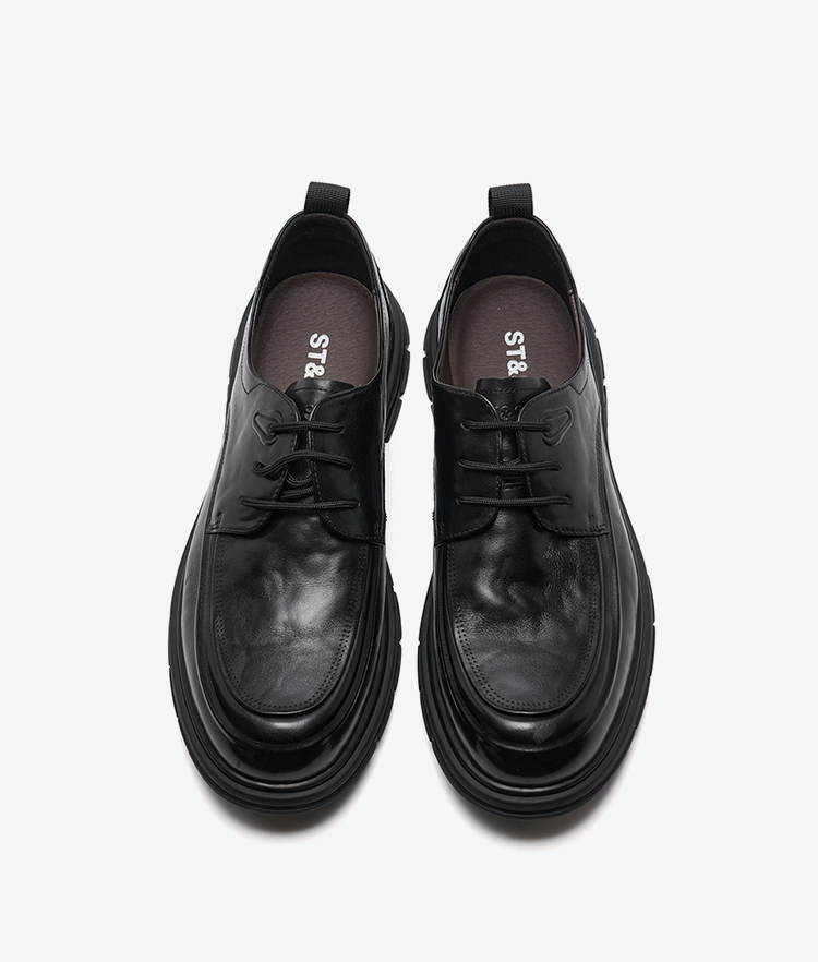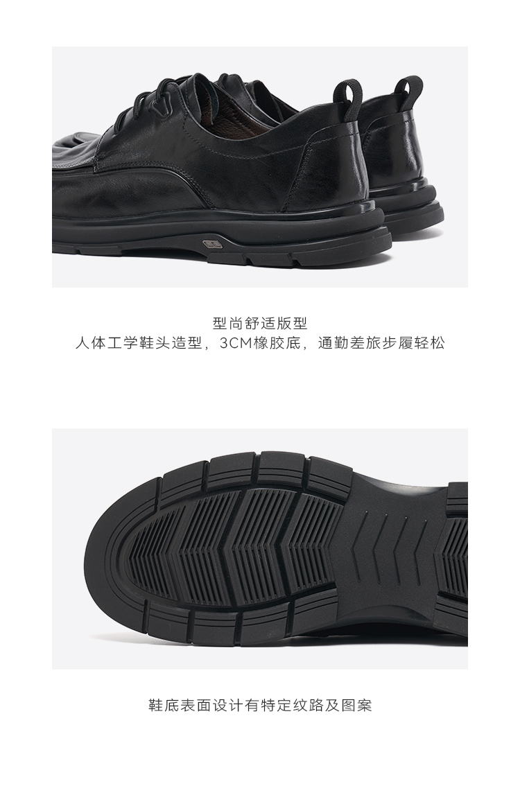 星期六男士全黑舒适系带皮鞋SSD3122032
