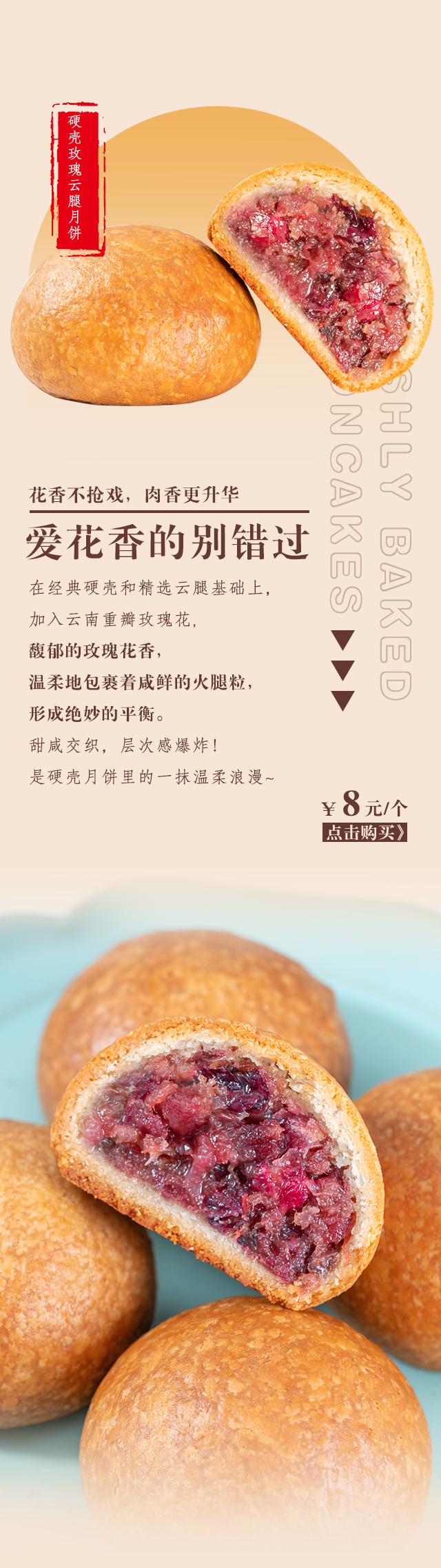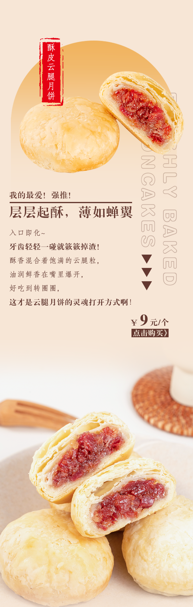 现烤硬壳云腿月饼 玫瑰云腿月饼 五仁云腿 蛋黄云腿 精选宣威老火腿