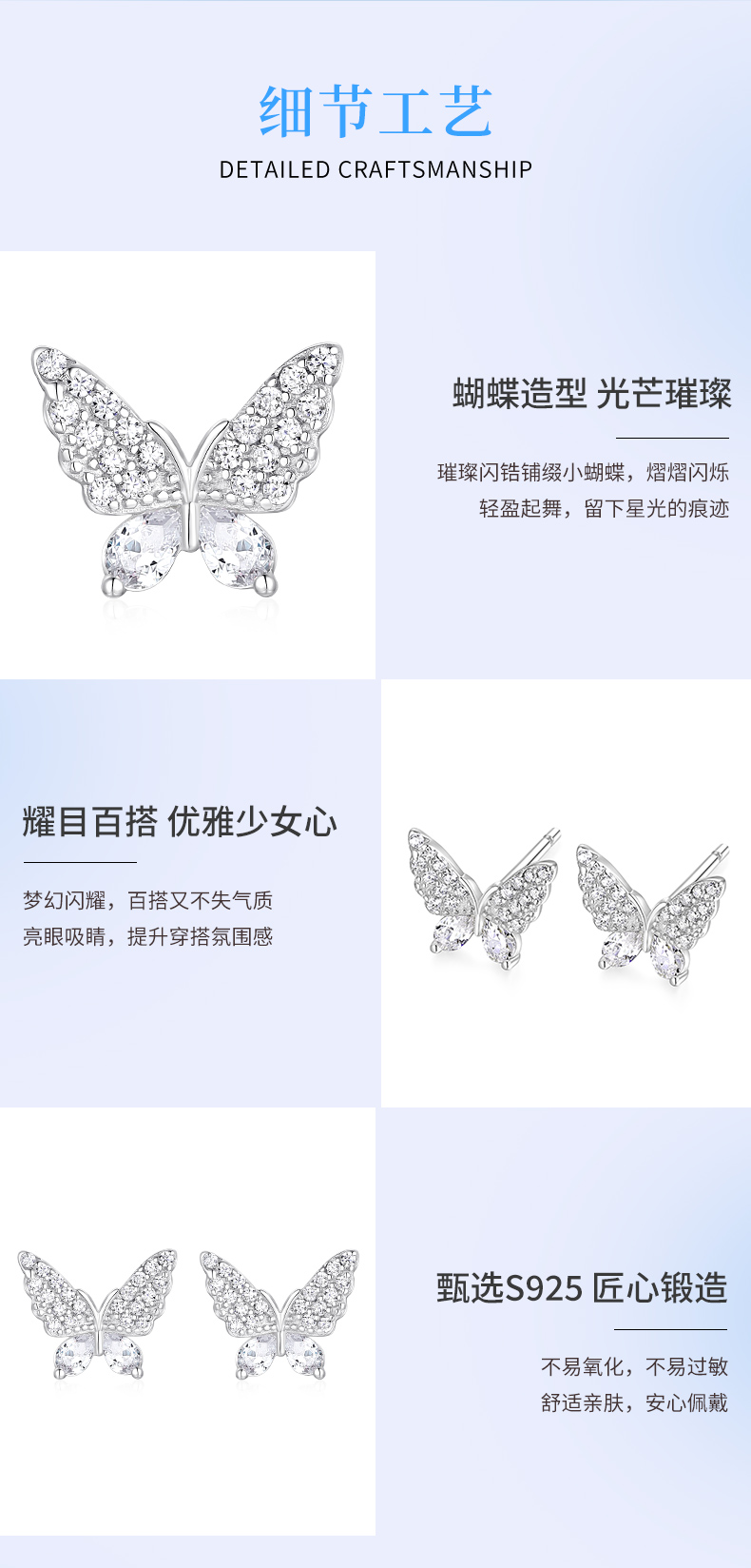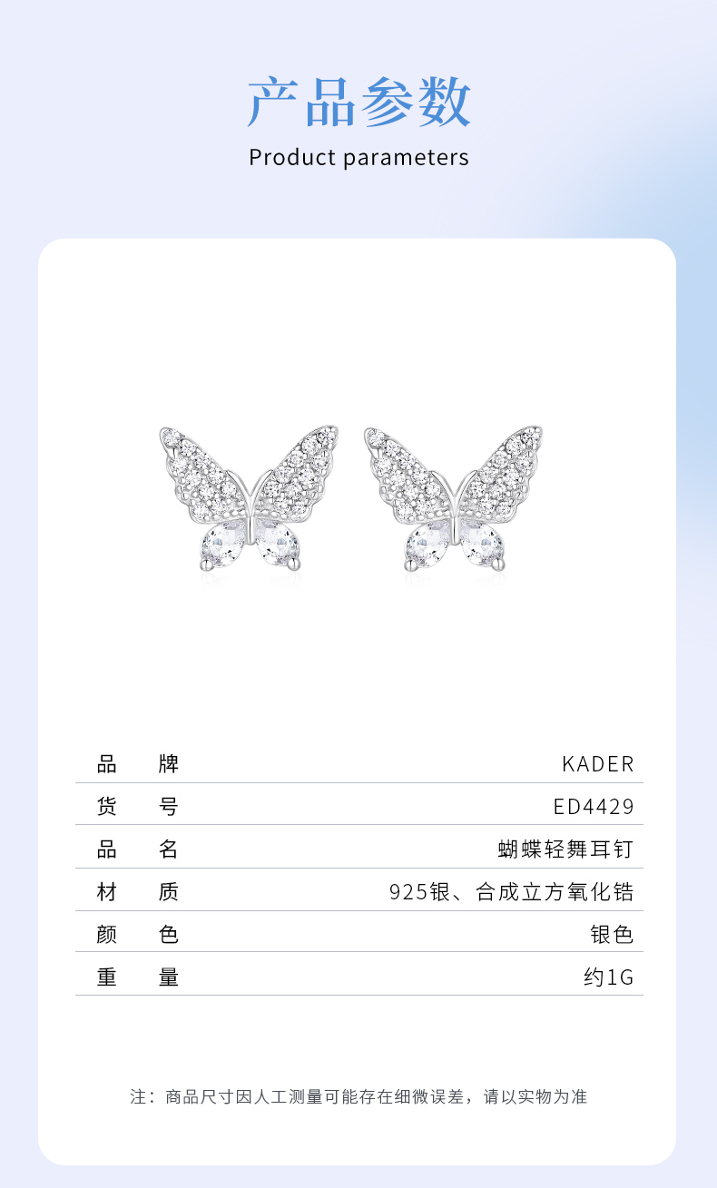 卡蒂罗/KADER 在逃公主系列 蝴蝶轻舞耳钉 闪闪蝶舞甜美梦幻招财蝴蝶小众轻奢设计 闪耀百搭养耳洞#好运 女友纪念日礼盒