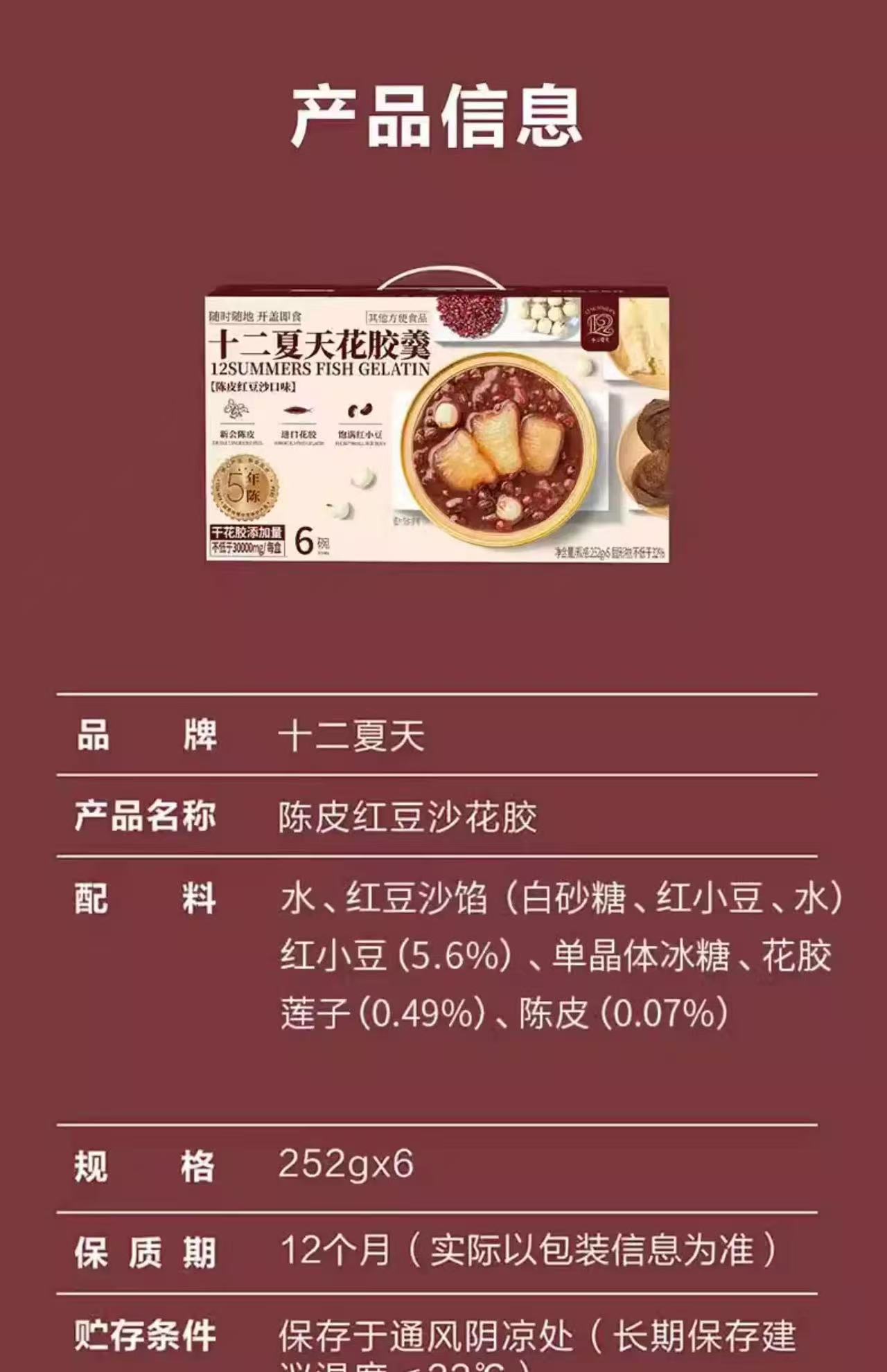 【代餐速食】十二夏天陈皮红豆沙花胶252g*6