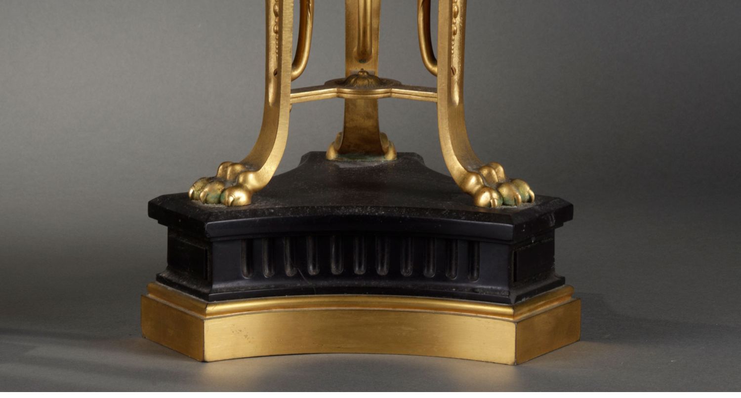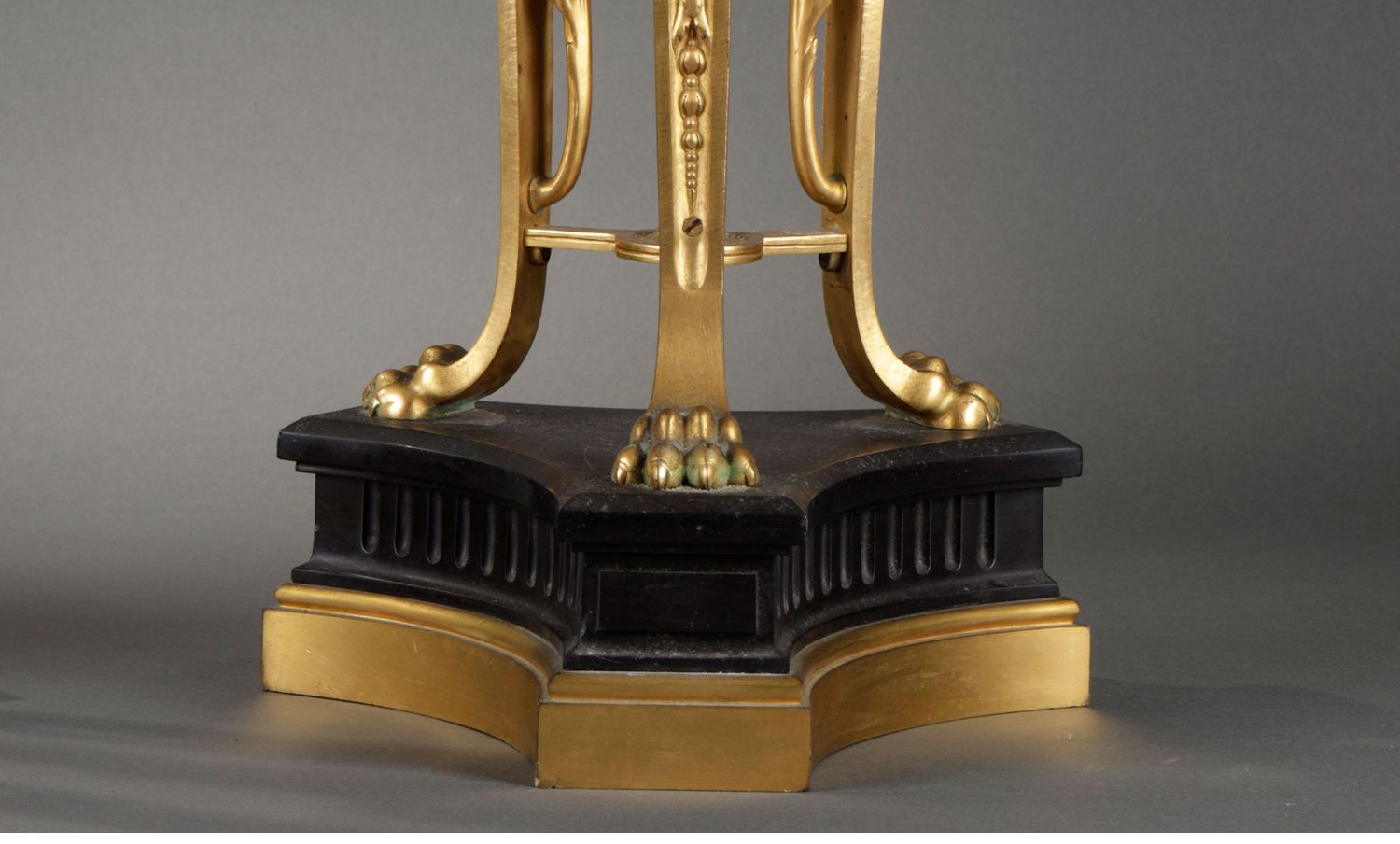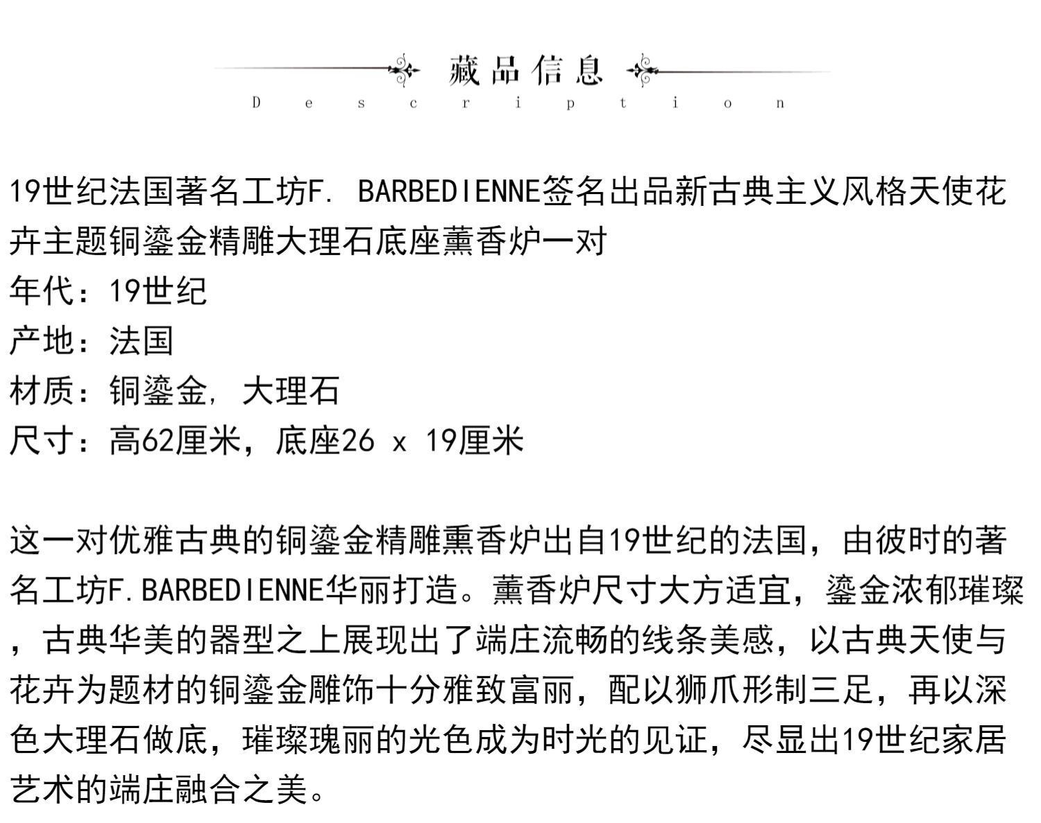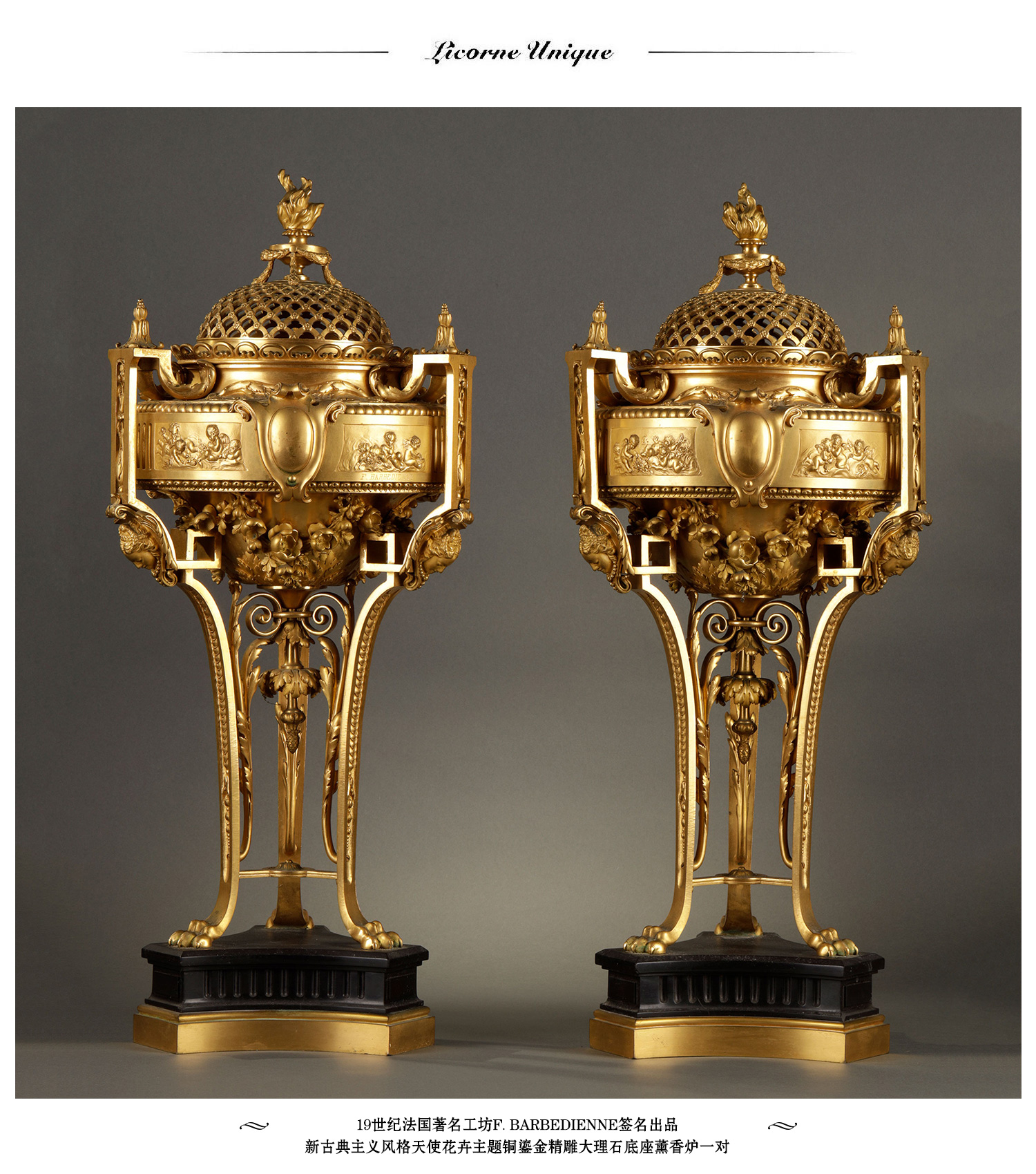 独角鹿西洋古董法国新古典主义风格铜鎏金大理石底座薰香炉一对