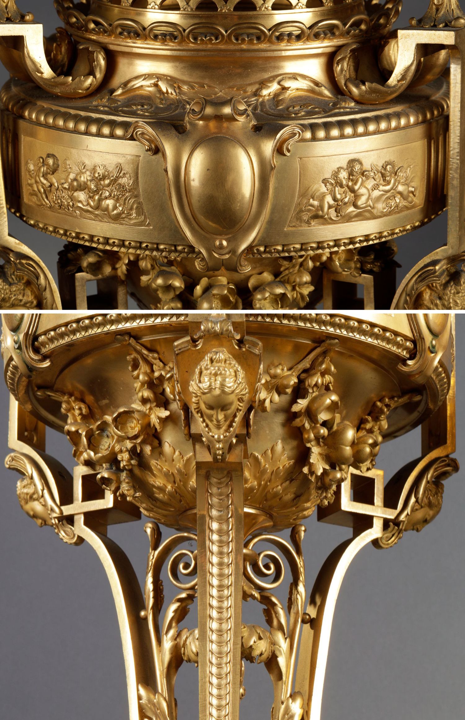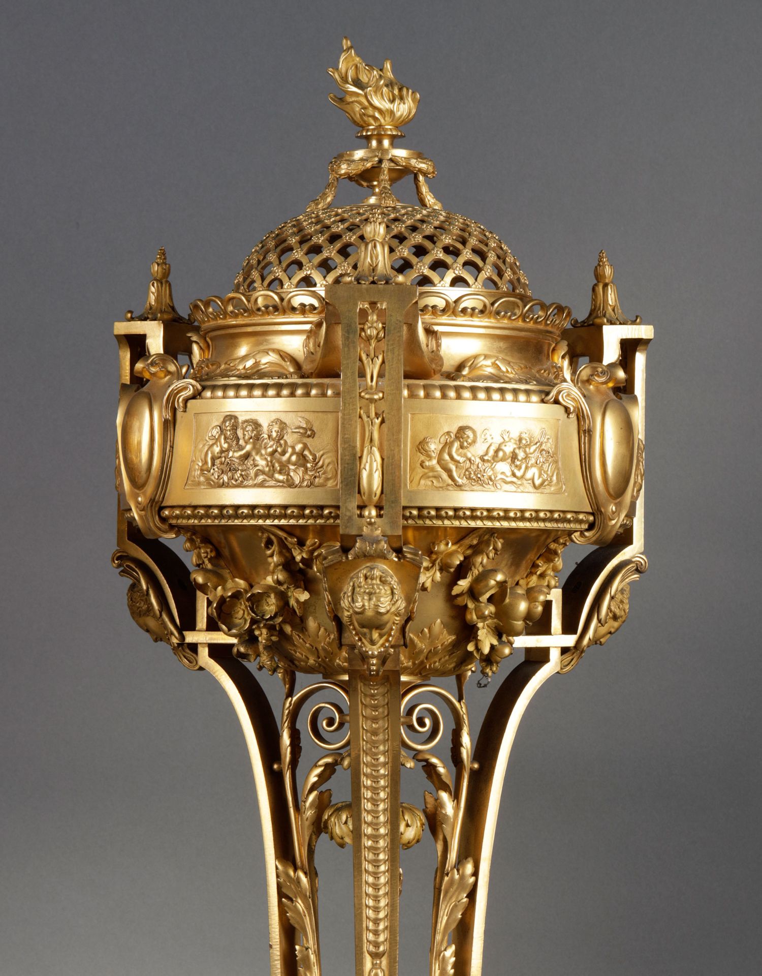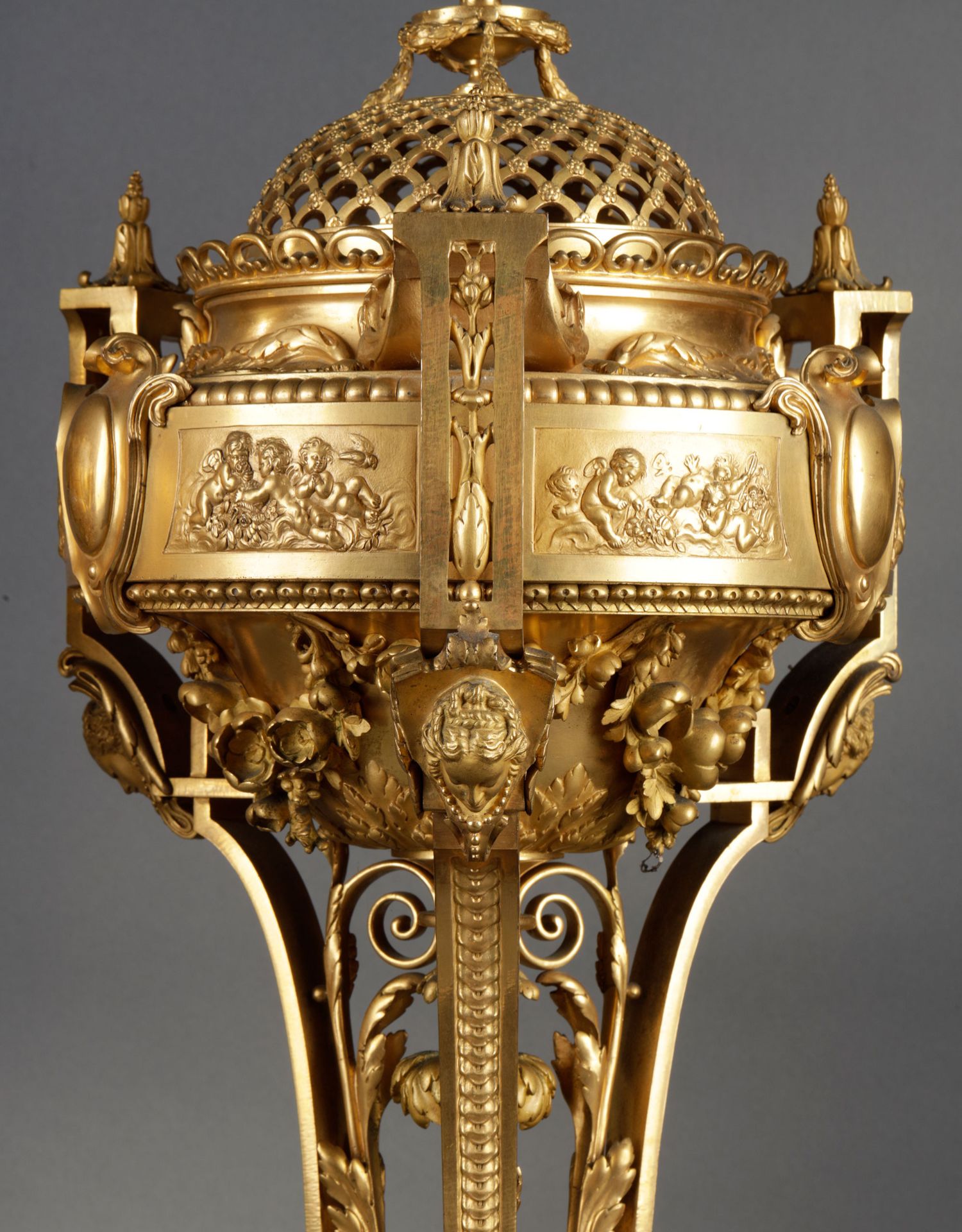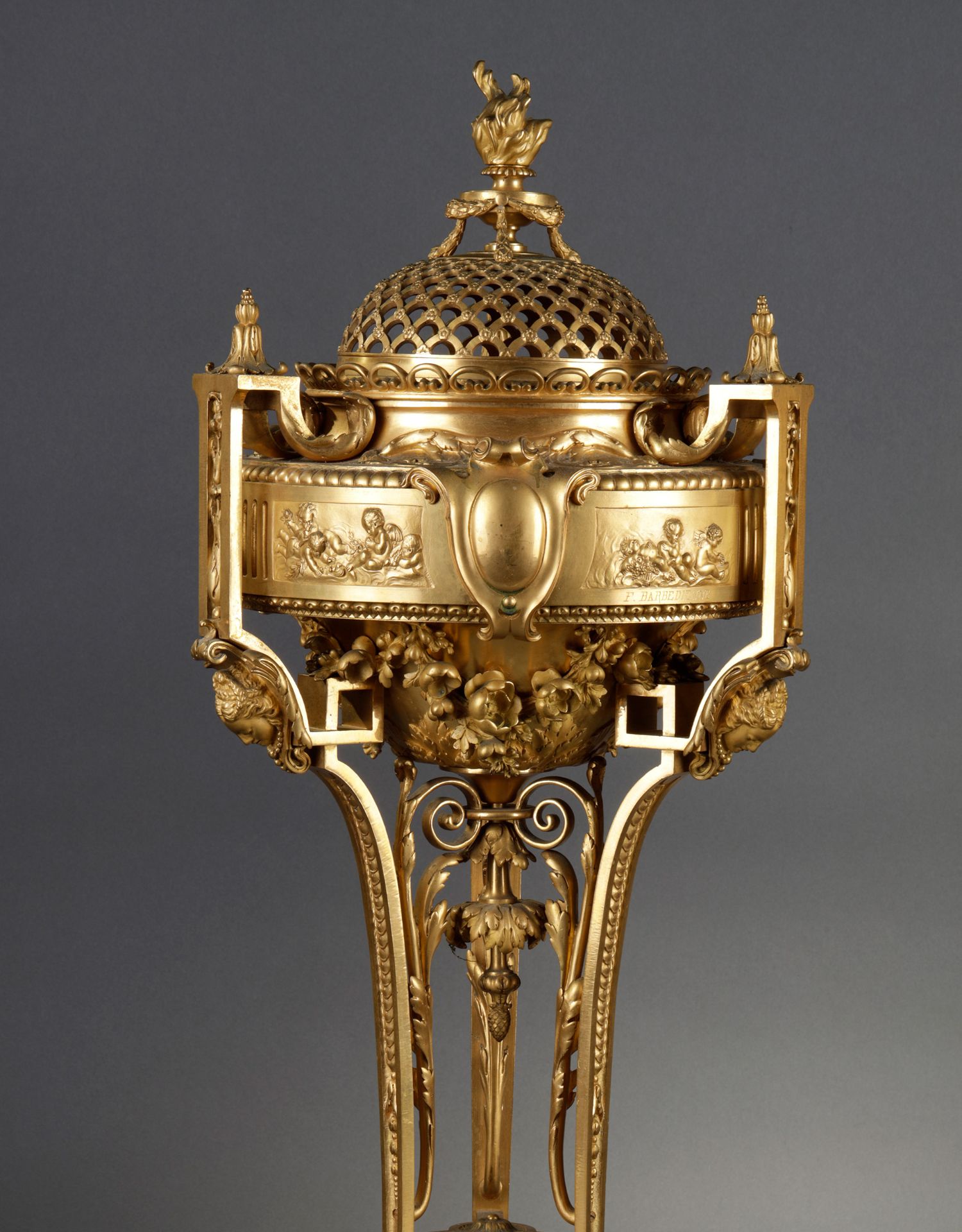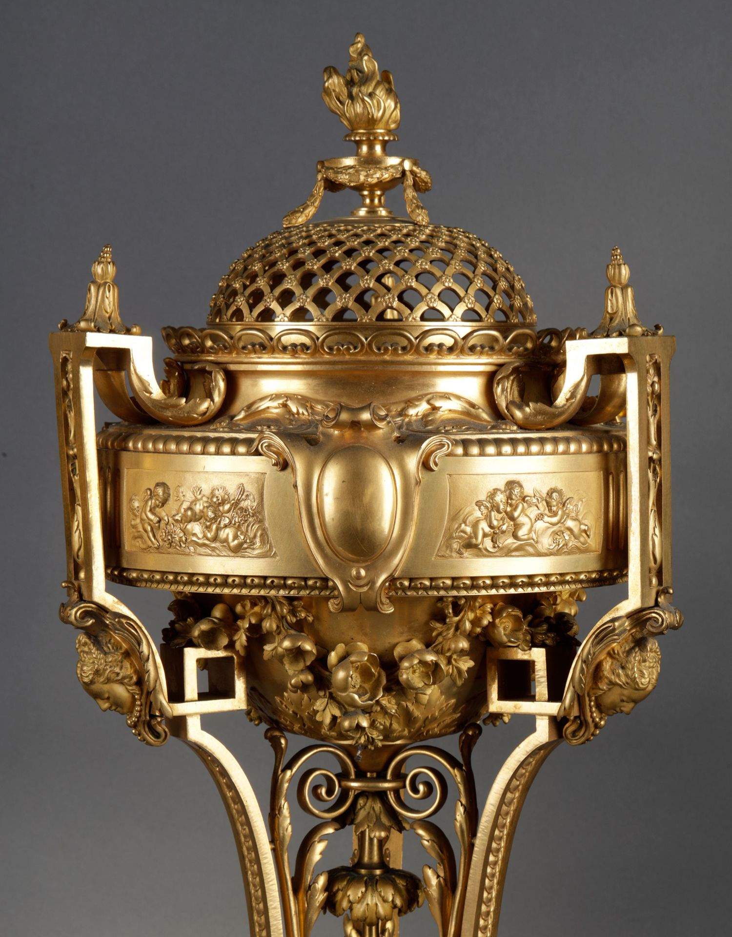 独角鹿西洋古董法国新古典主义风格铜鎏金大理石底座薰香炉一对