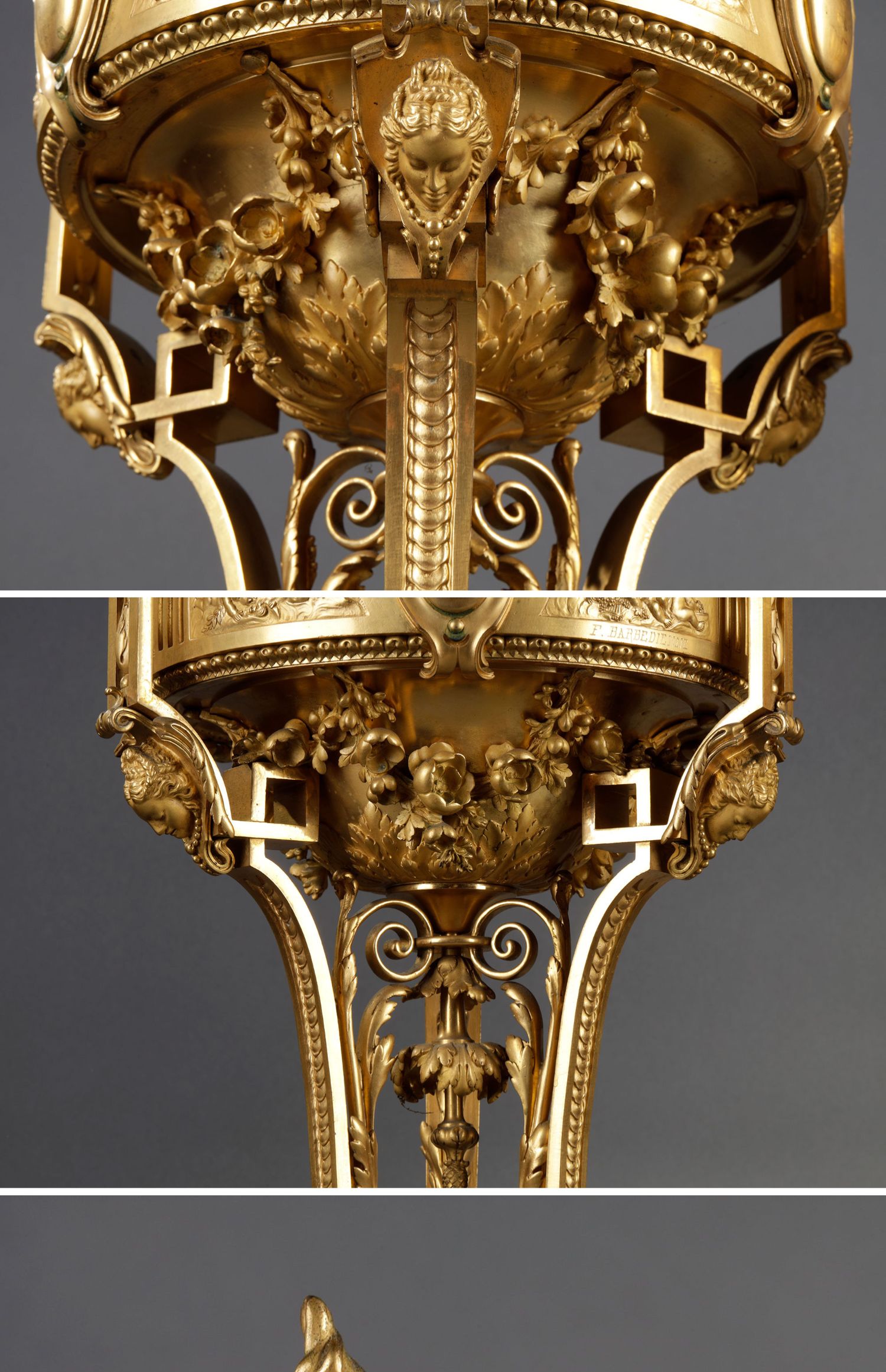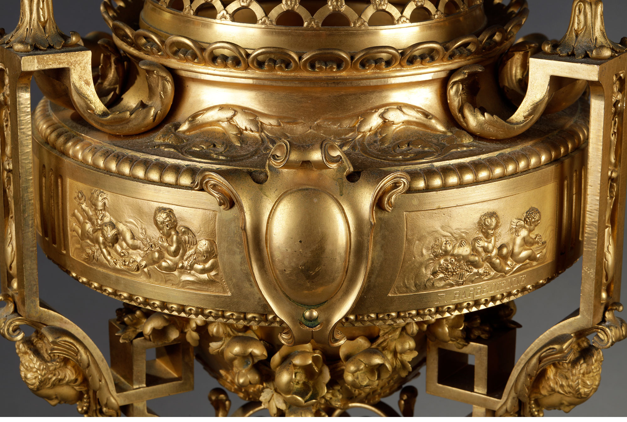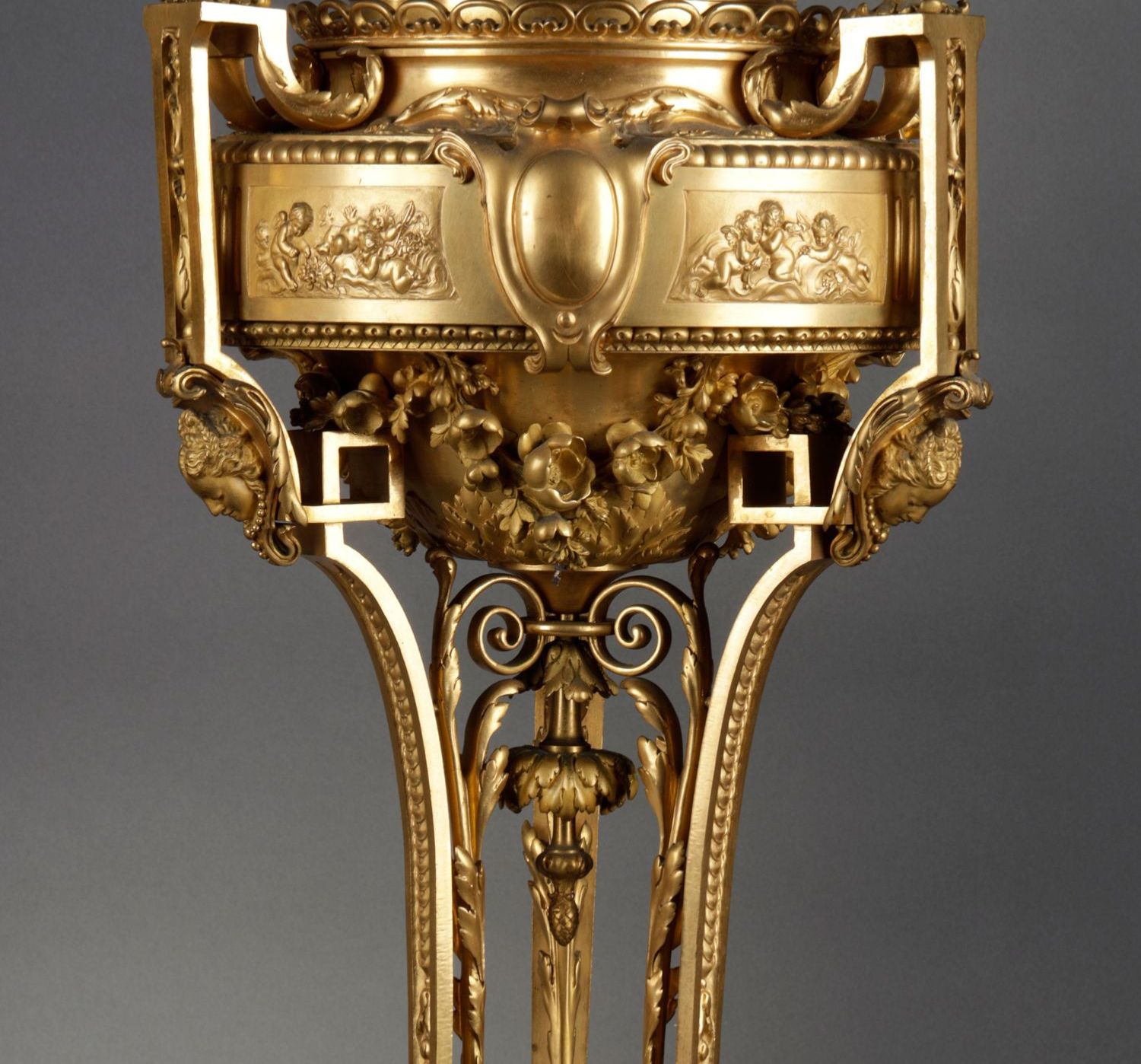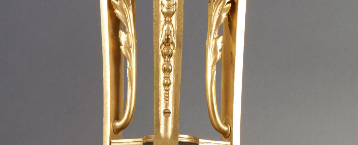 独角鹿西洋古董法国新古典主义风格铜鎏金大理石底座薰香炉一对