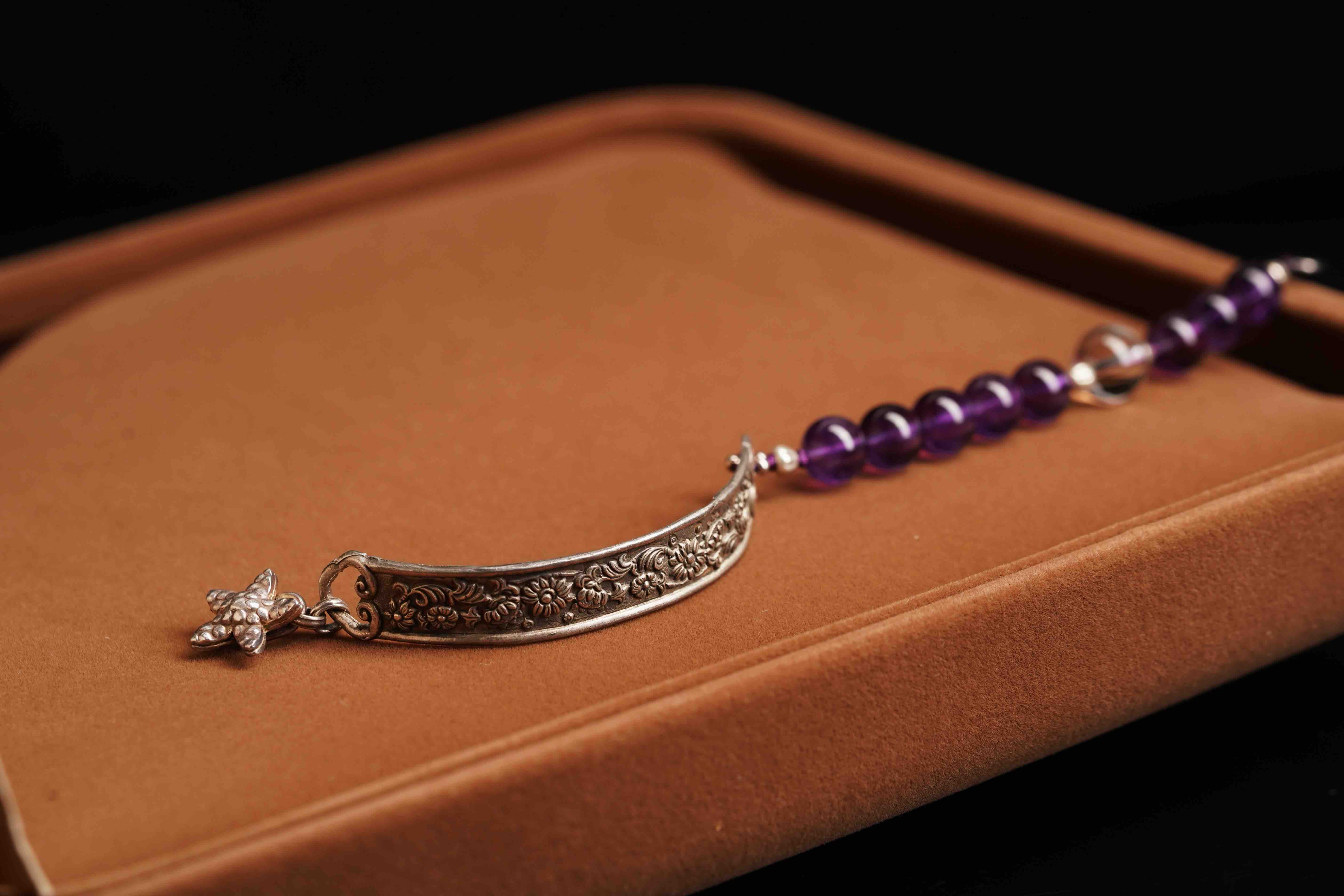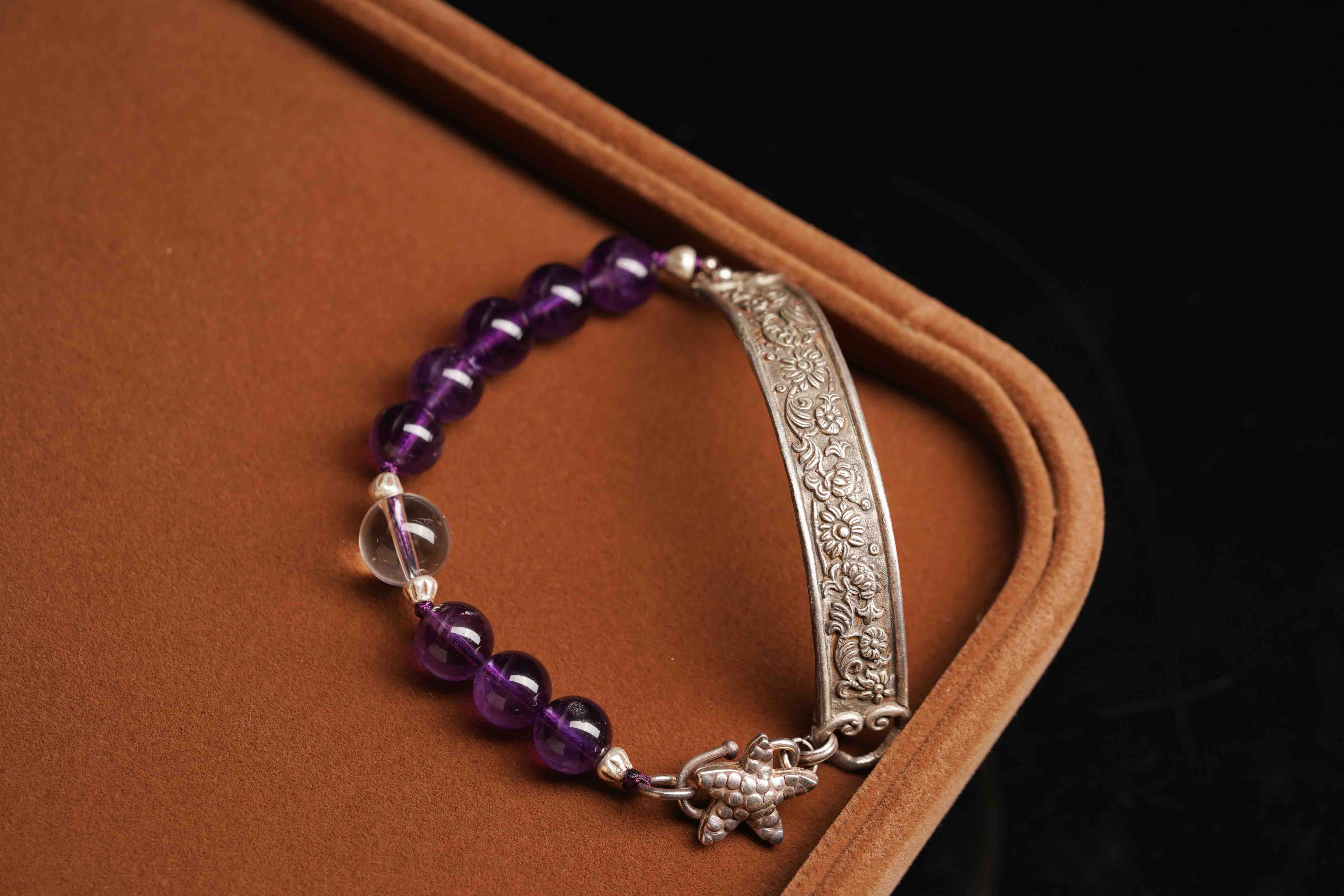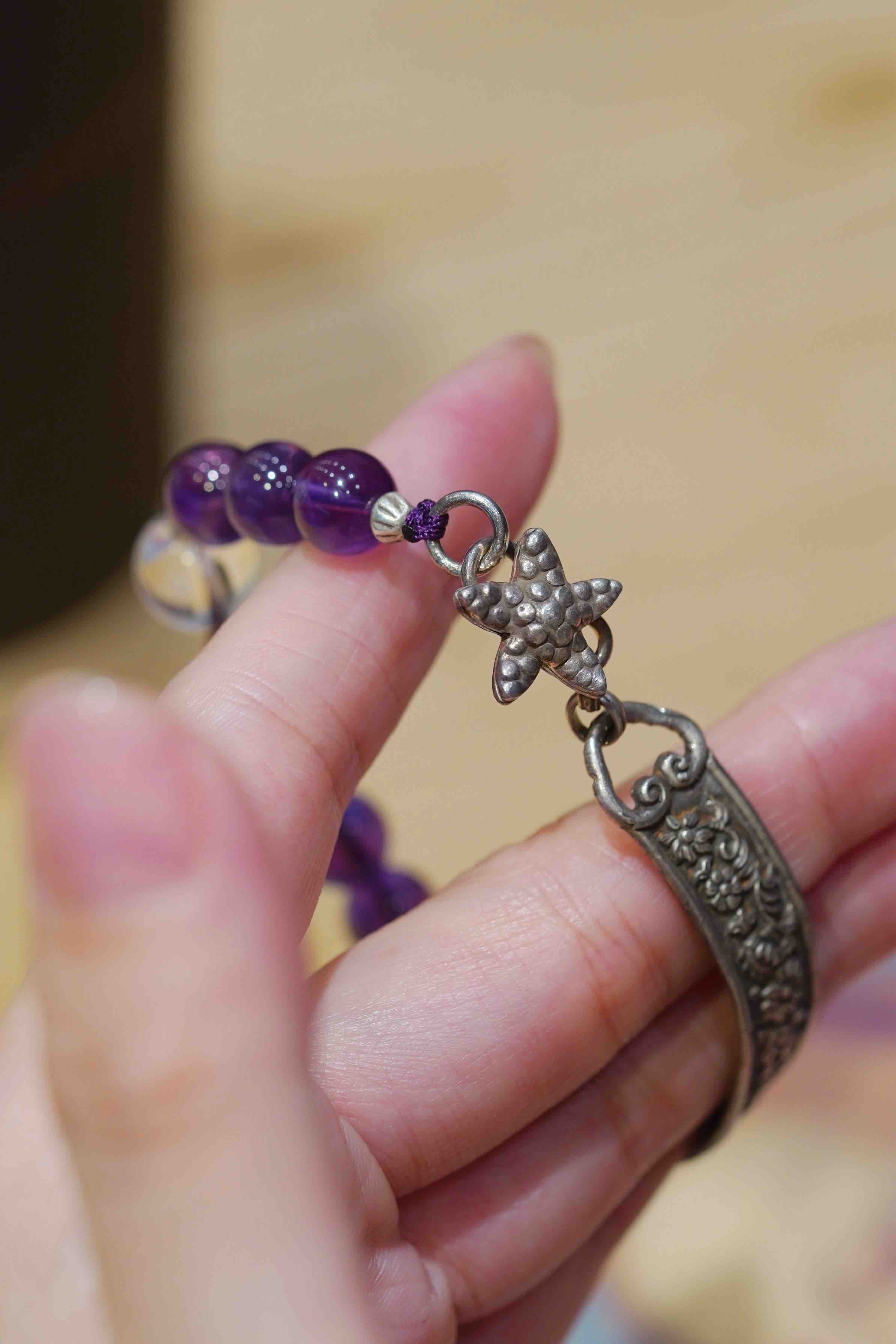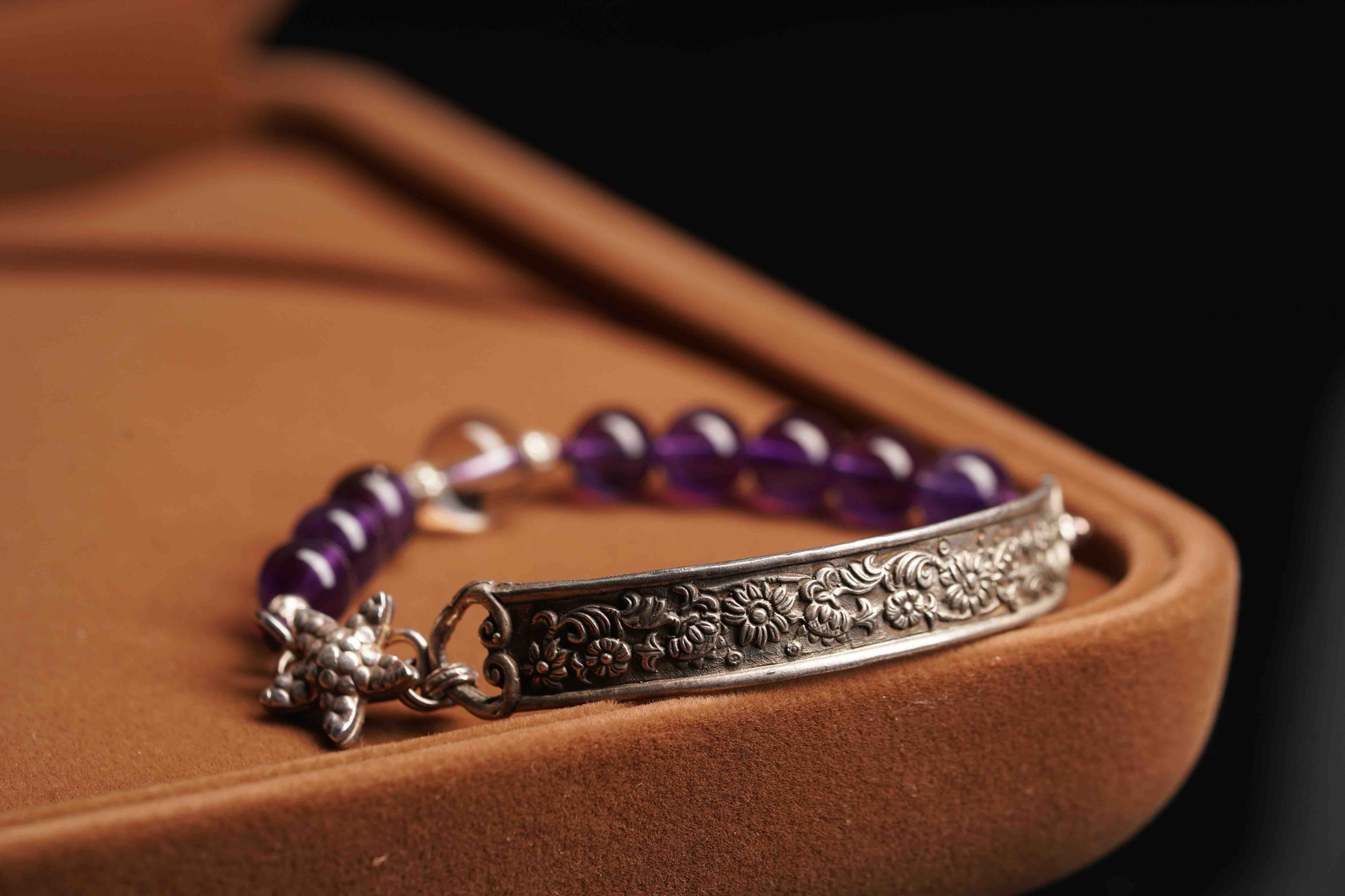 紫水晶搭配银半镯,复古又有有感觉
