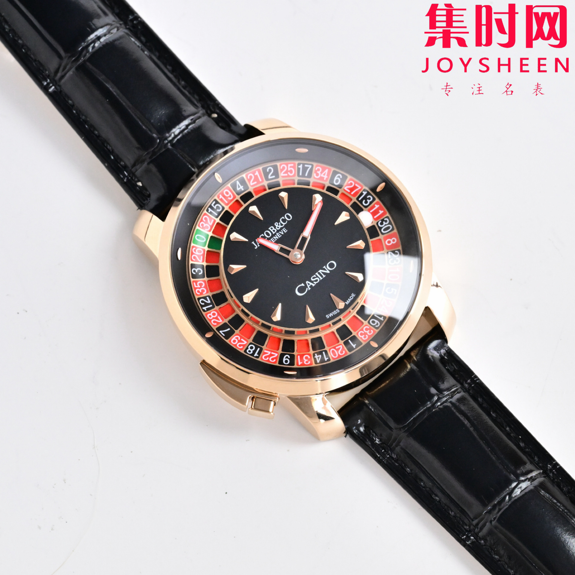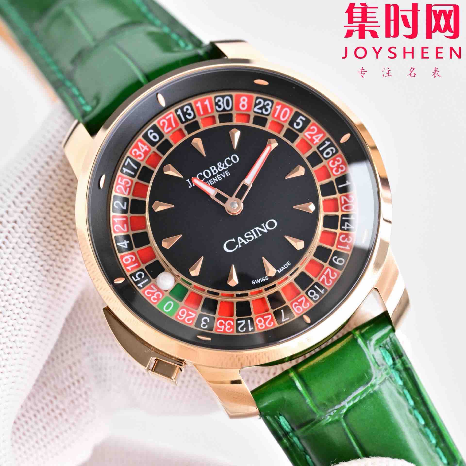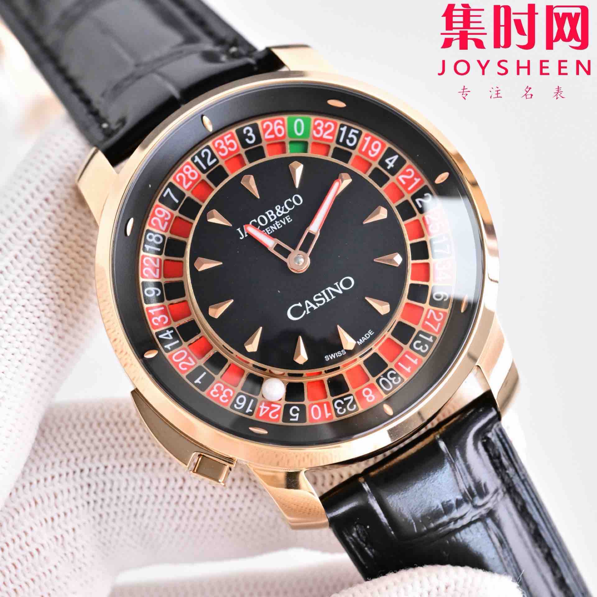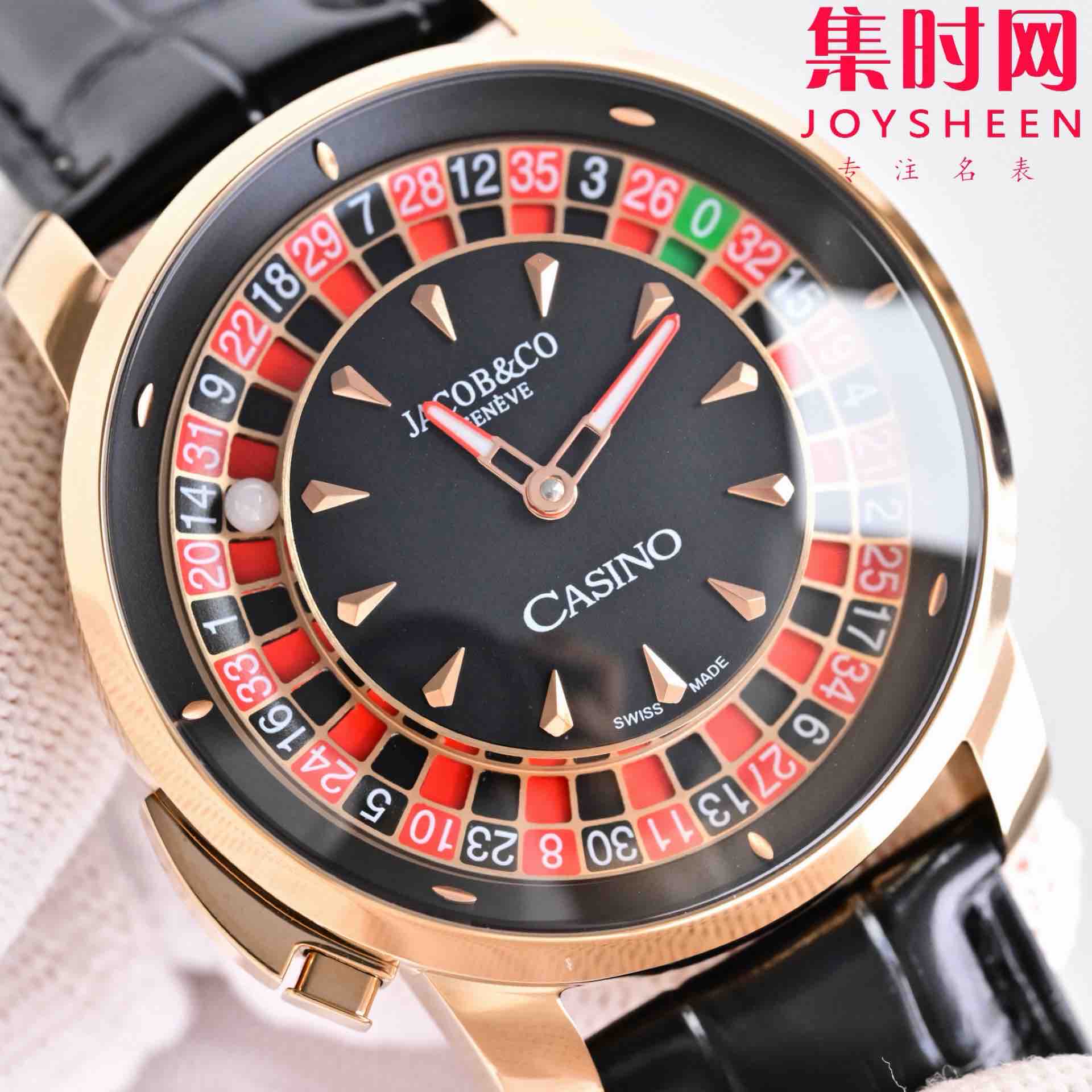 玩转时间博弈——Jacob & Co 捷克豹转盘 时来运转 男士腕表,搭载进口石英机芯精准走时,表径44mm 表盘内嵌可动赌盘装置,一按即启奢趣互动,红黑撞色表盘复刻经典轮盘美学,滚珠随手腕律动暗藏玄机,让腕间成为移动的娱乐场,点燃社交话题。316L精钢质感碰撞街头潮流,商务休闲皆成焦点~