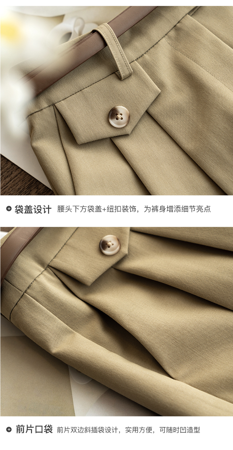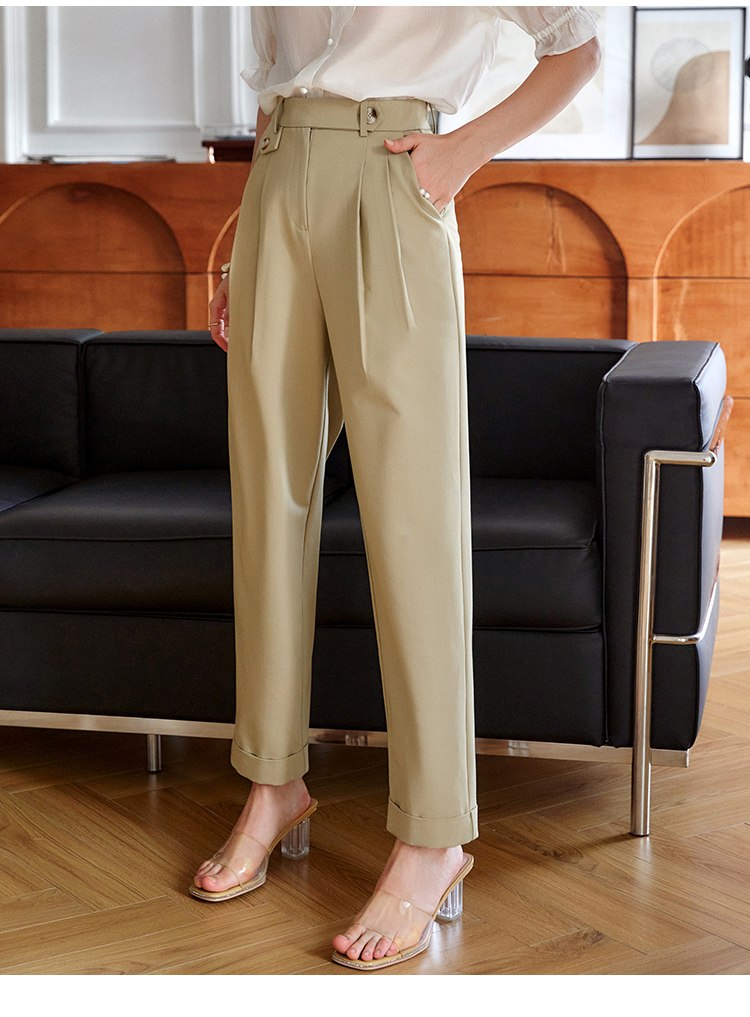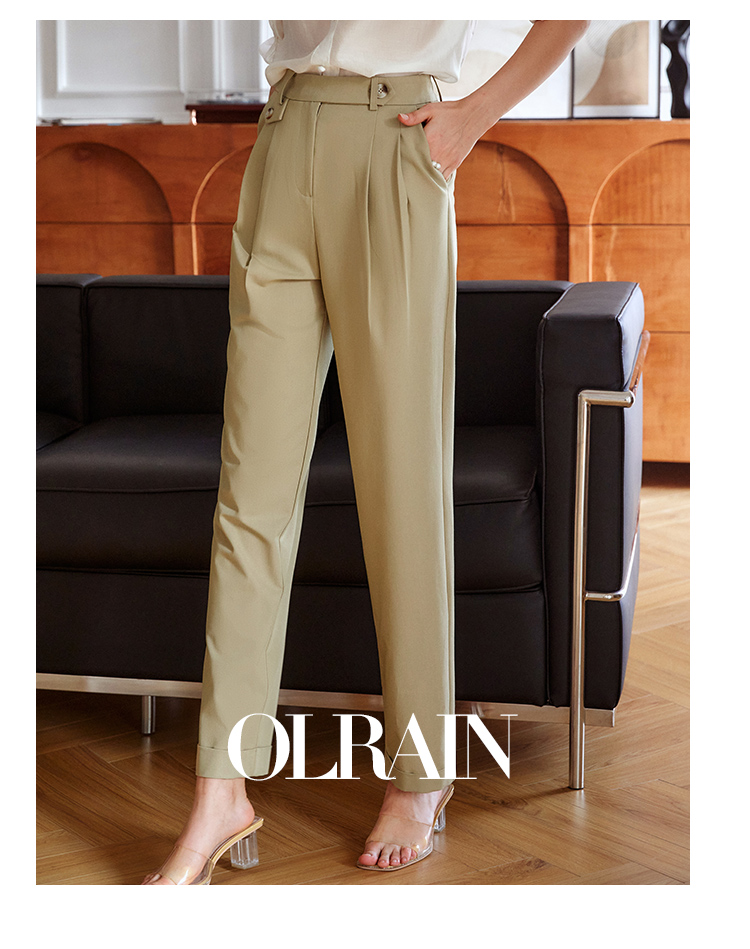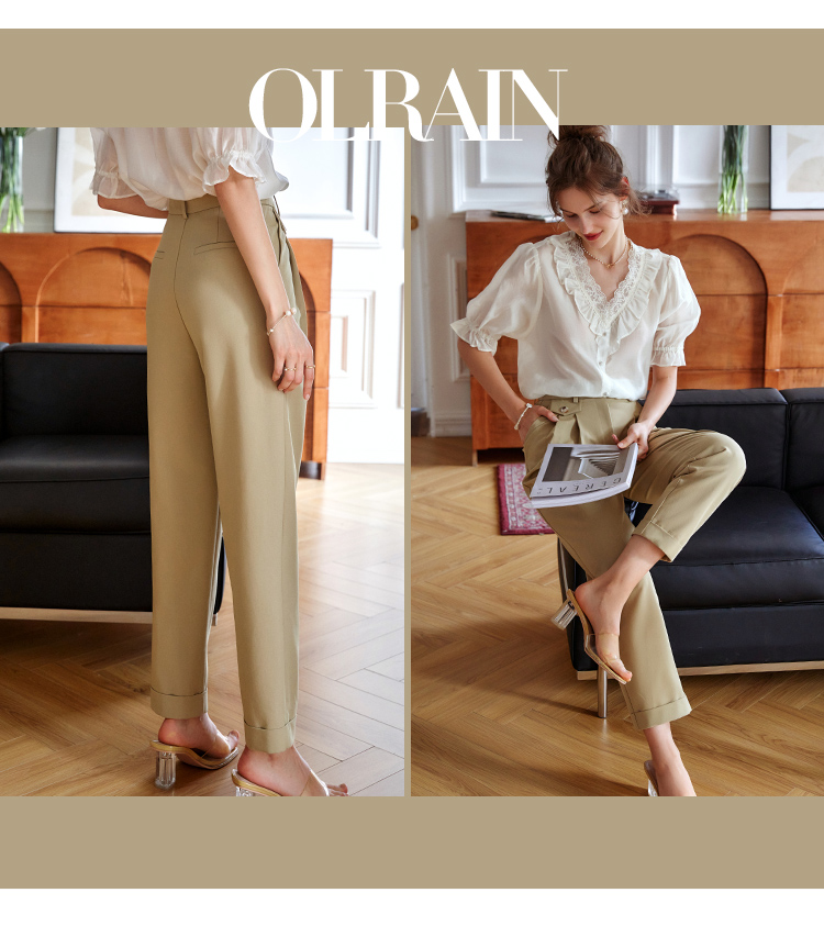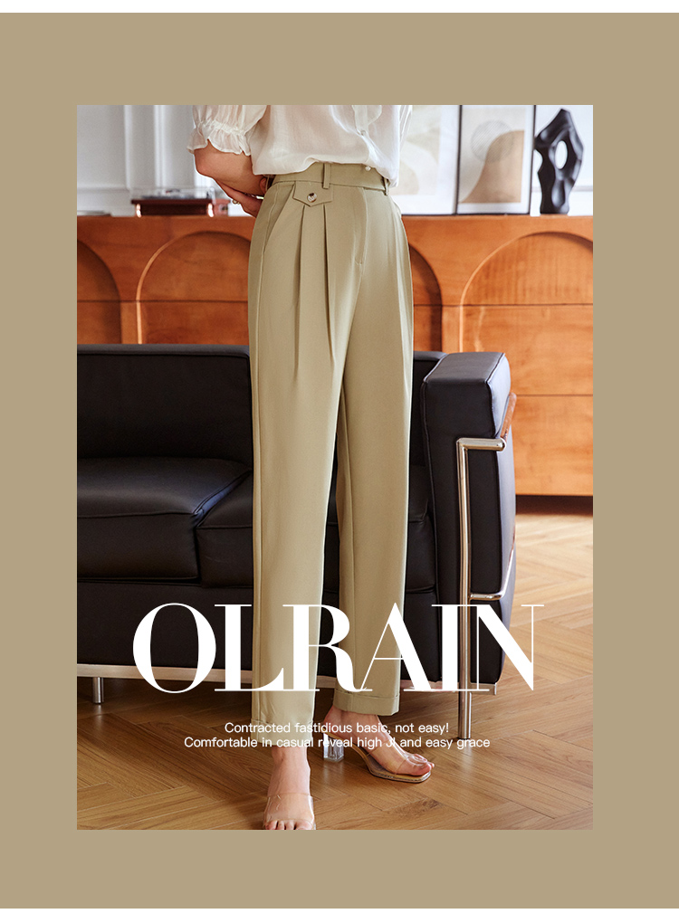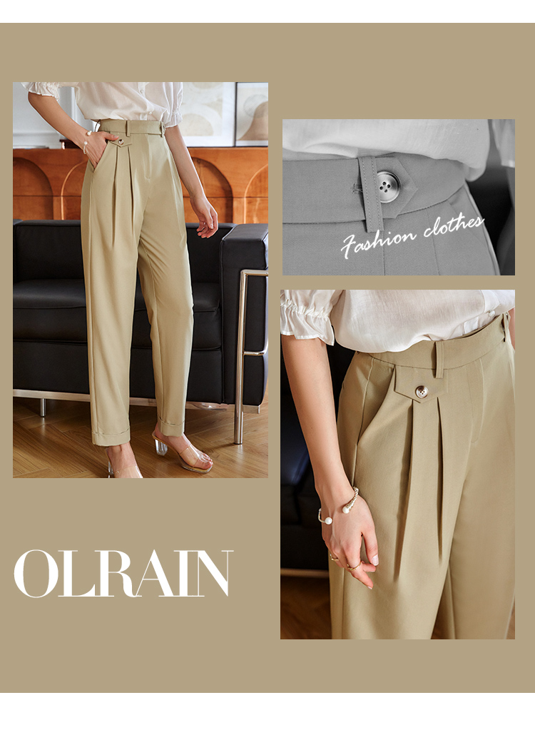 欧芮儿卡其色休闲裤女夏薄款2021新款高腰显瘦时髦经典洋气哈伦裤