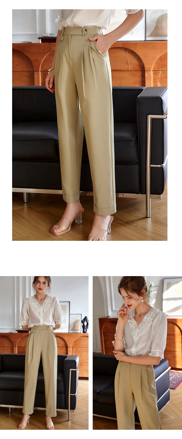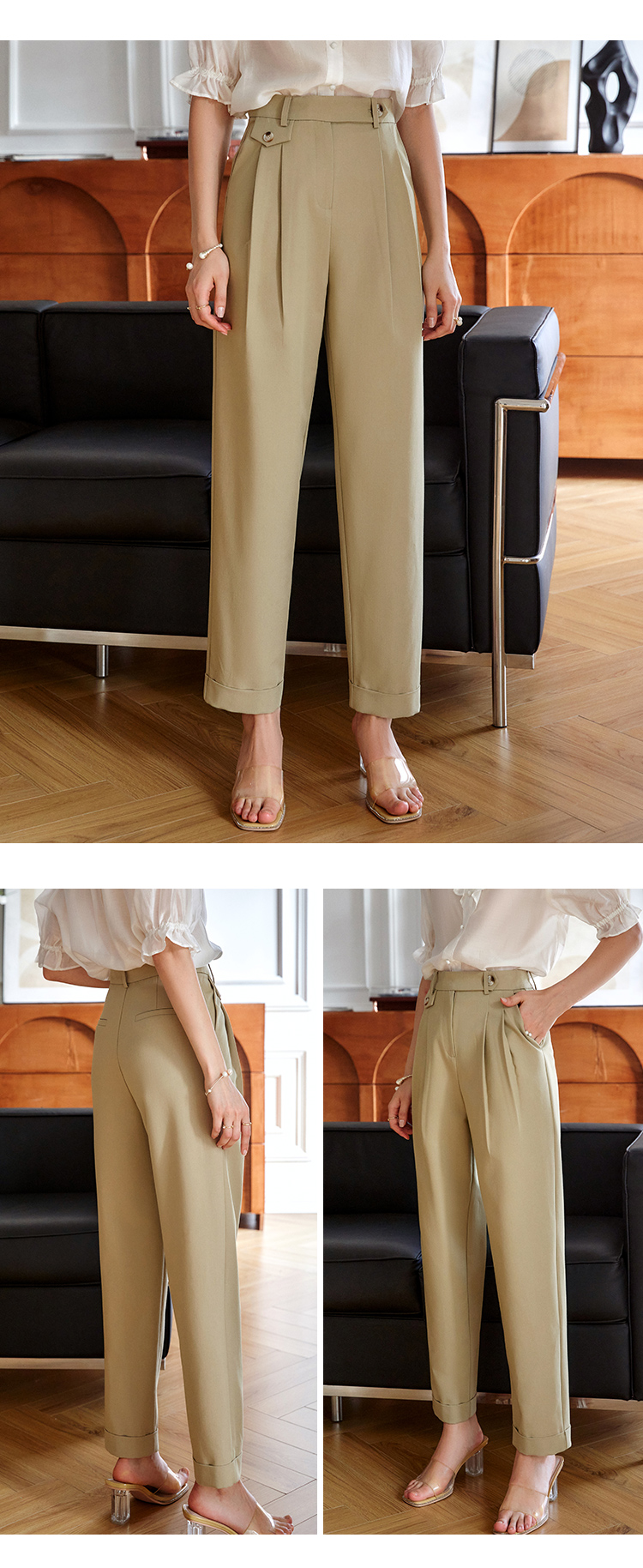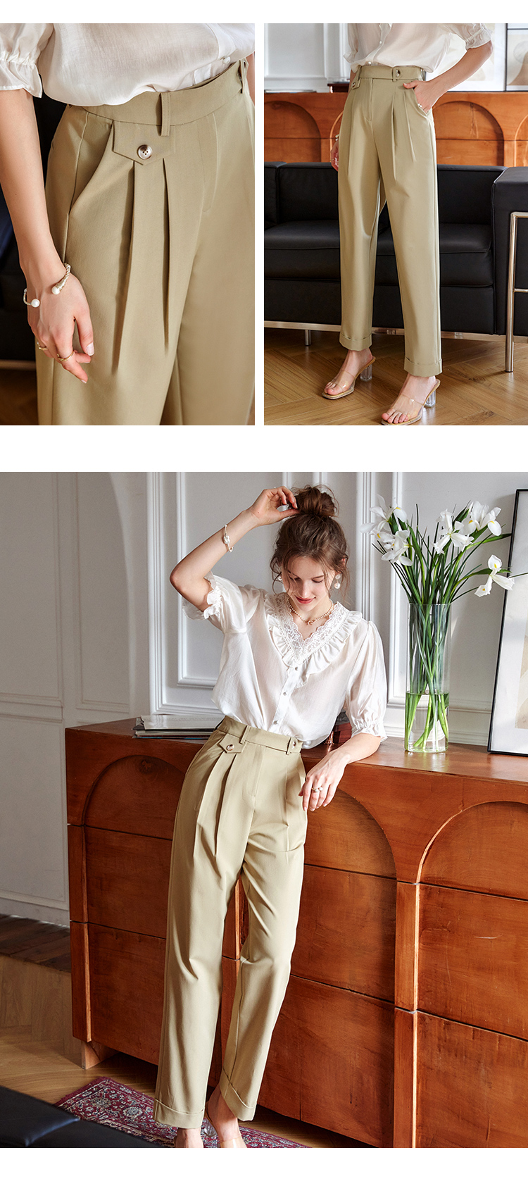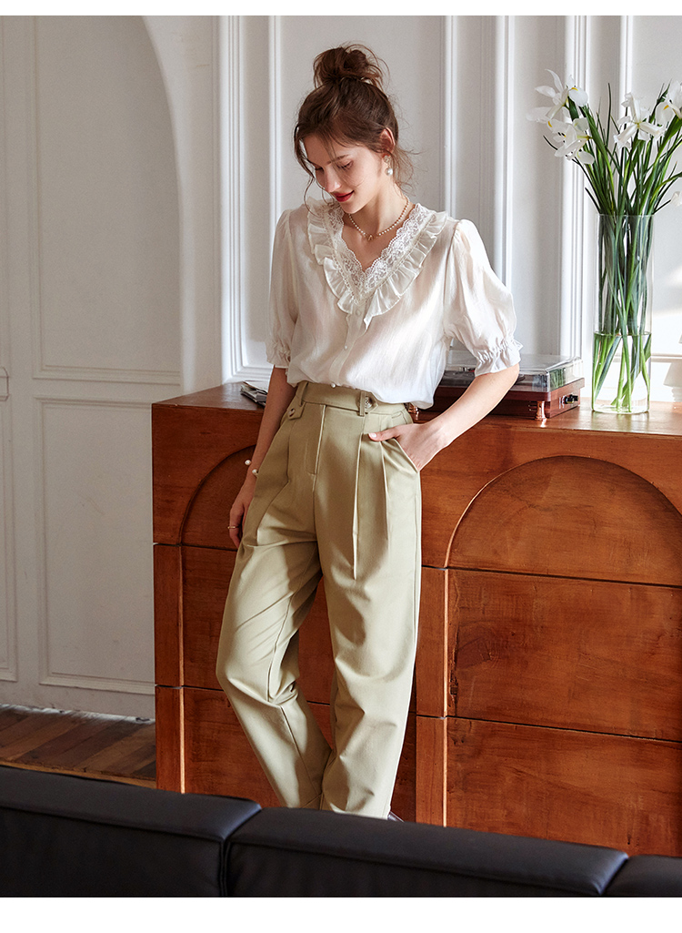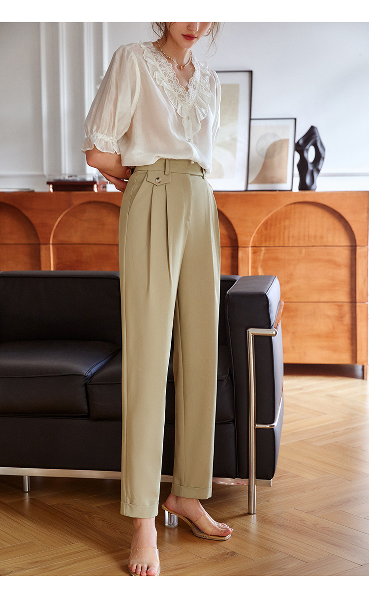 大长腿的秘密 高级感老钱风【梦惠妮 高腰花苞休闲裤】特殊版型 包容身材 遮肉显瘦 视觉显高 水洗棉透气不粘汗 九分裤阔腿裤 #M663
