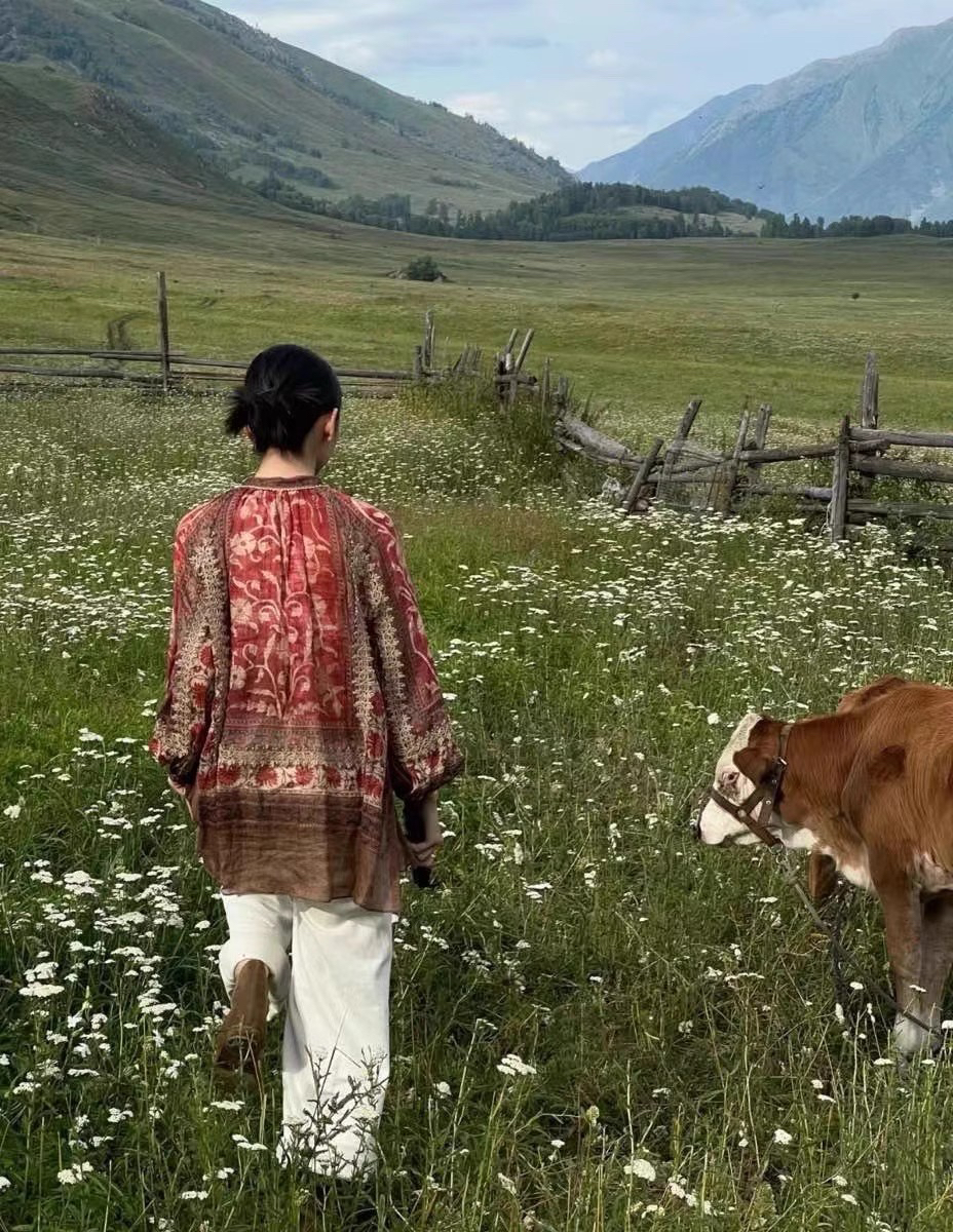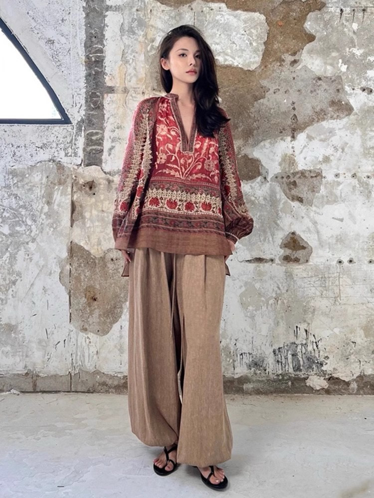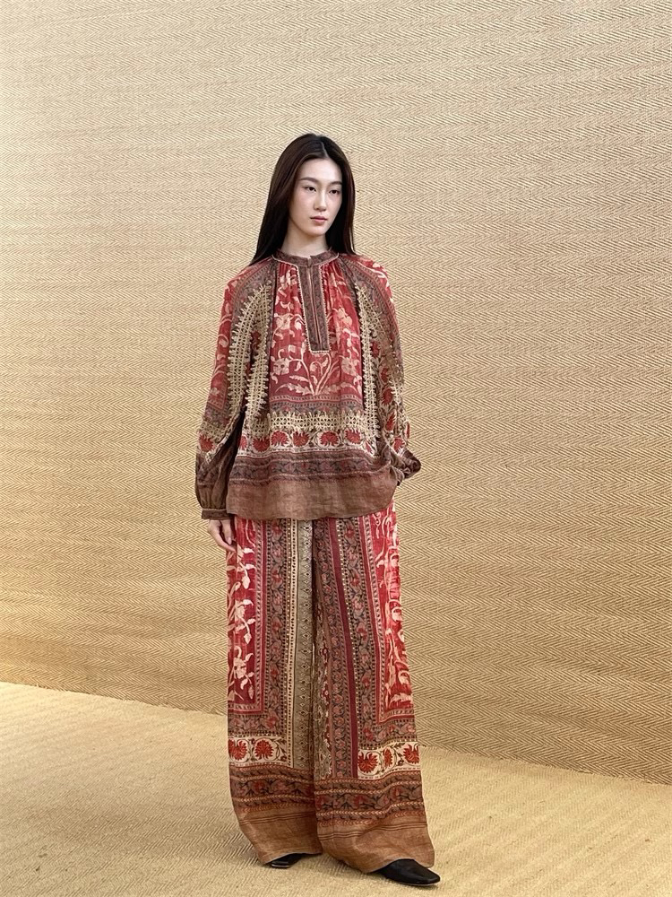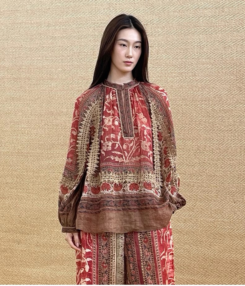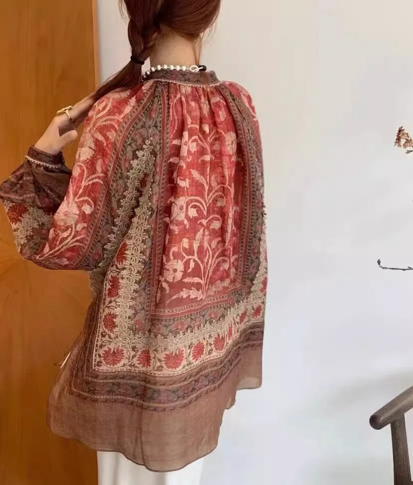 新款东方美学印花亚麻衬衣,设计师款民族风苎麻印花衬衫,具有浓郁人文色彩,将精良的设计和考究的面料和工艺融于现代的廓形当中~